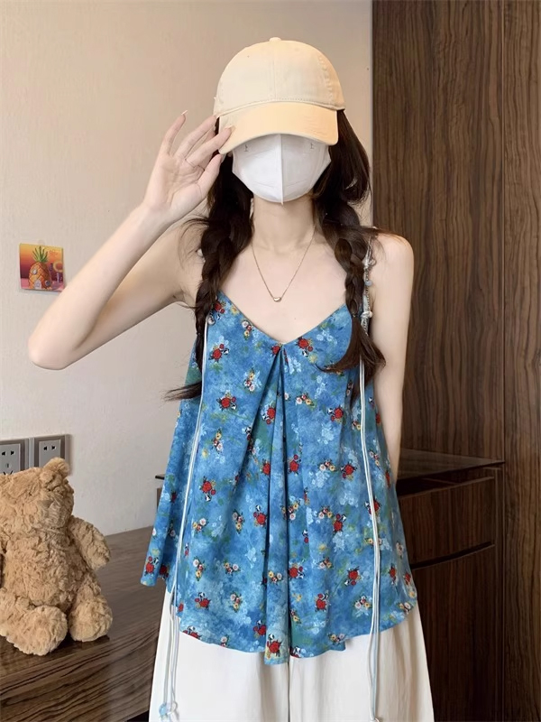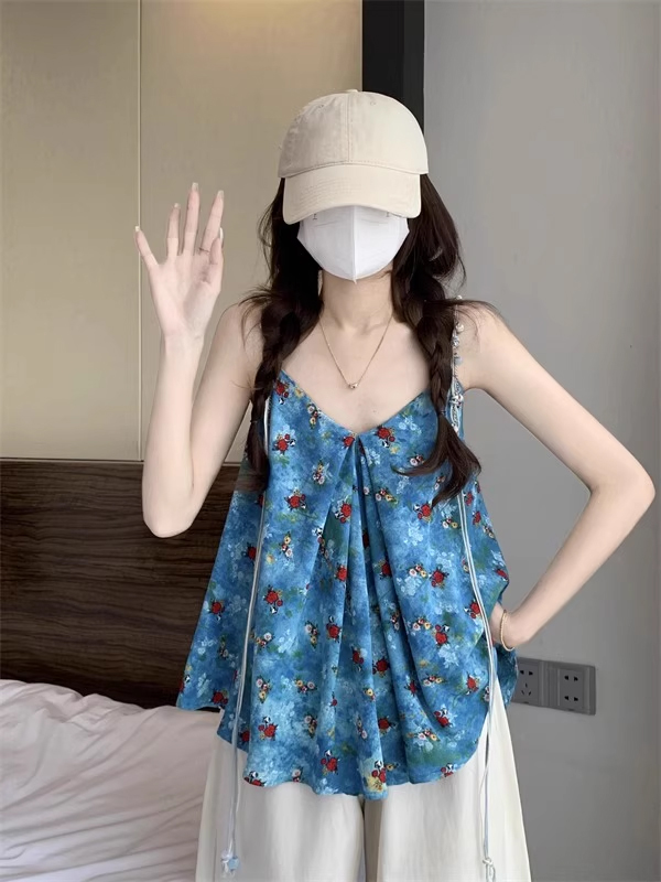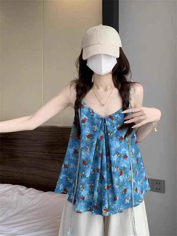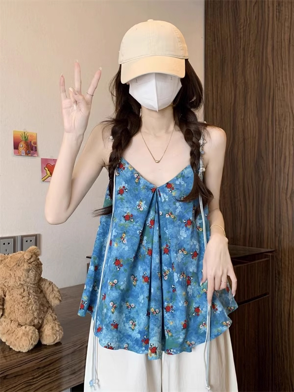 裁缝学苑AH67碎花吊带背心纸样女装V领显瘦露肩上衣服装打板图