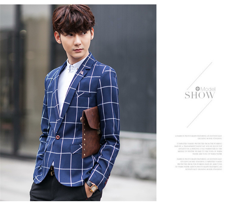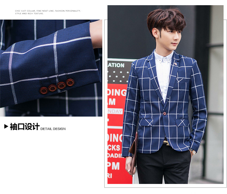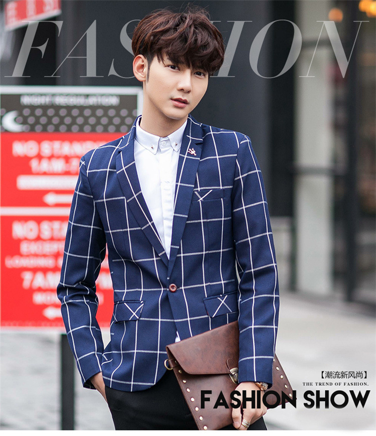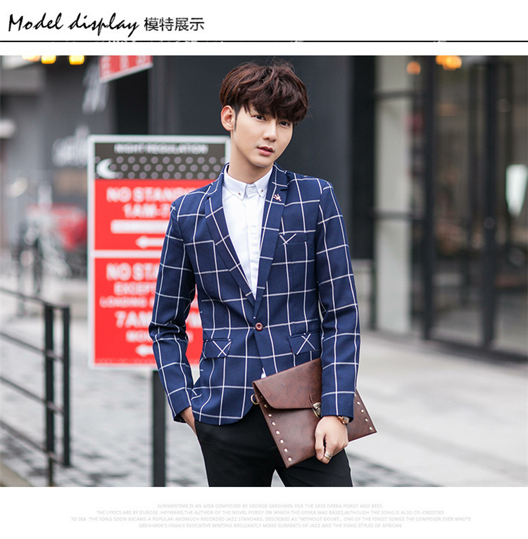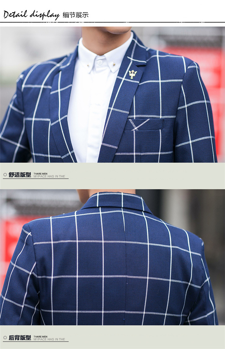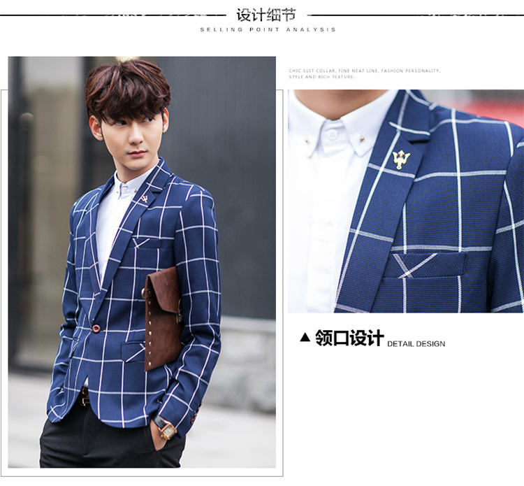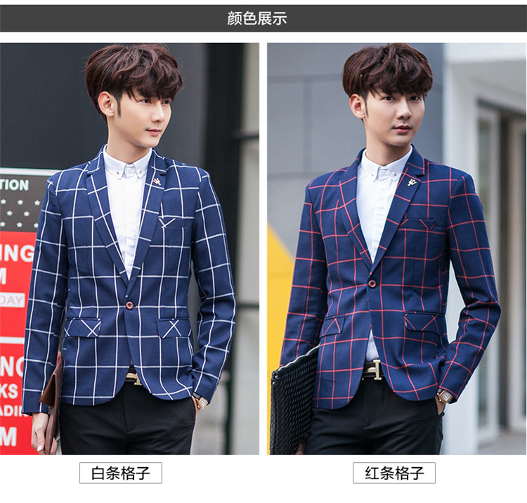 【服饰鞋包】男士西装外套秋季韩版男装青年修身西服大格子小西装男式休闲