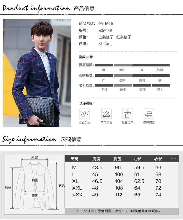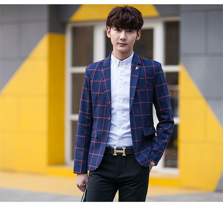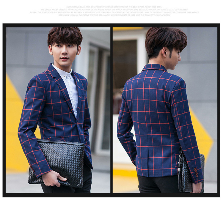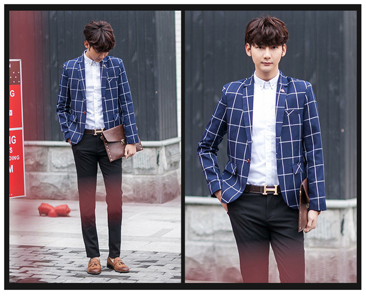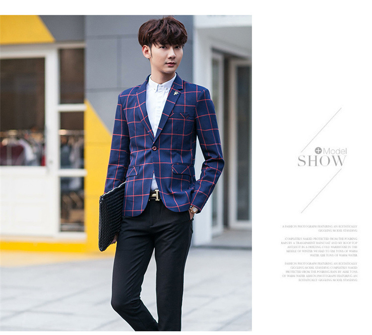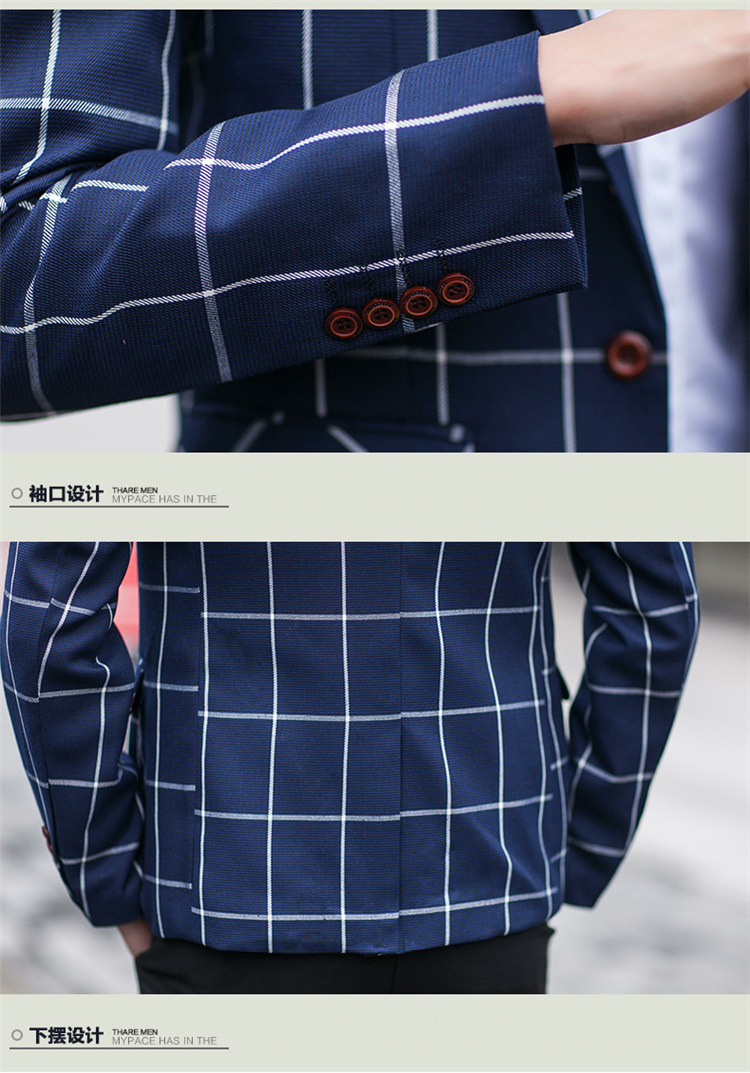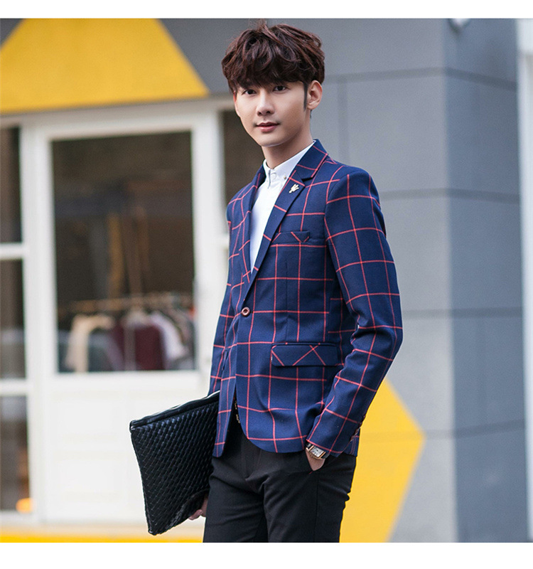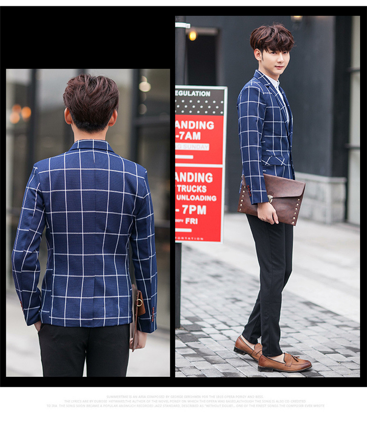 【服饰鞋包】男士西装外套秋季韩版男装青年修身西服大格子小西装男式休闲