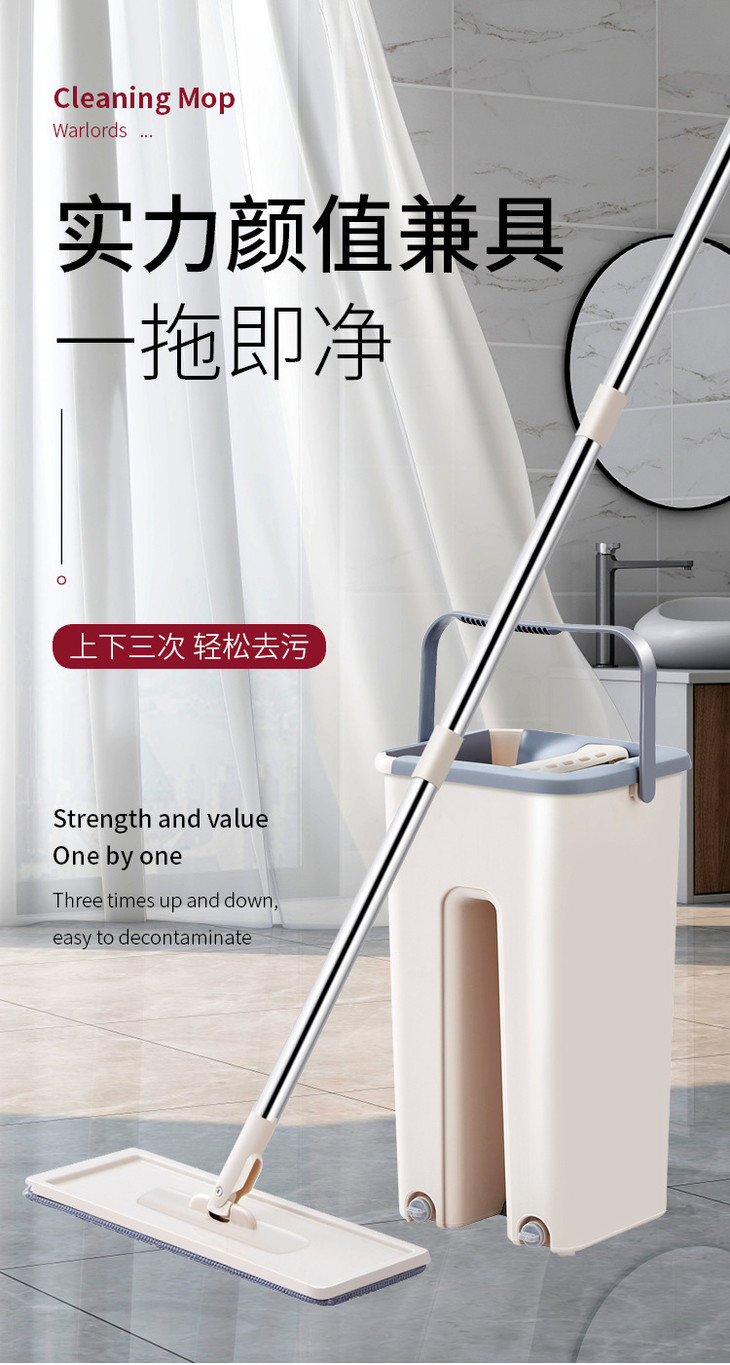 【居家日用】*懒人免手洗平板拖把 刮刮乐拖把 升级不锈钢杆 拖把