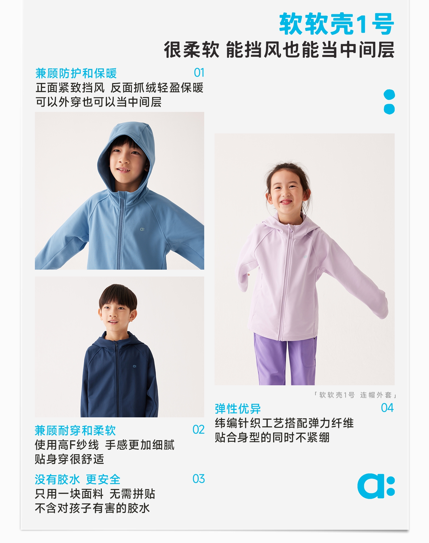 【秋Vol.2】幼岚童装「软软壳1号」连帽外套挡风保暖有型24秋新款儿童男女童ZY