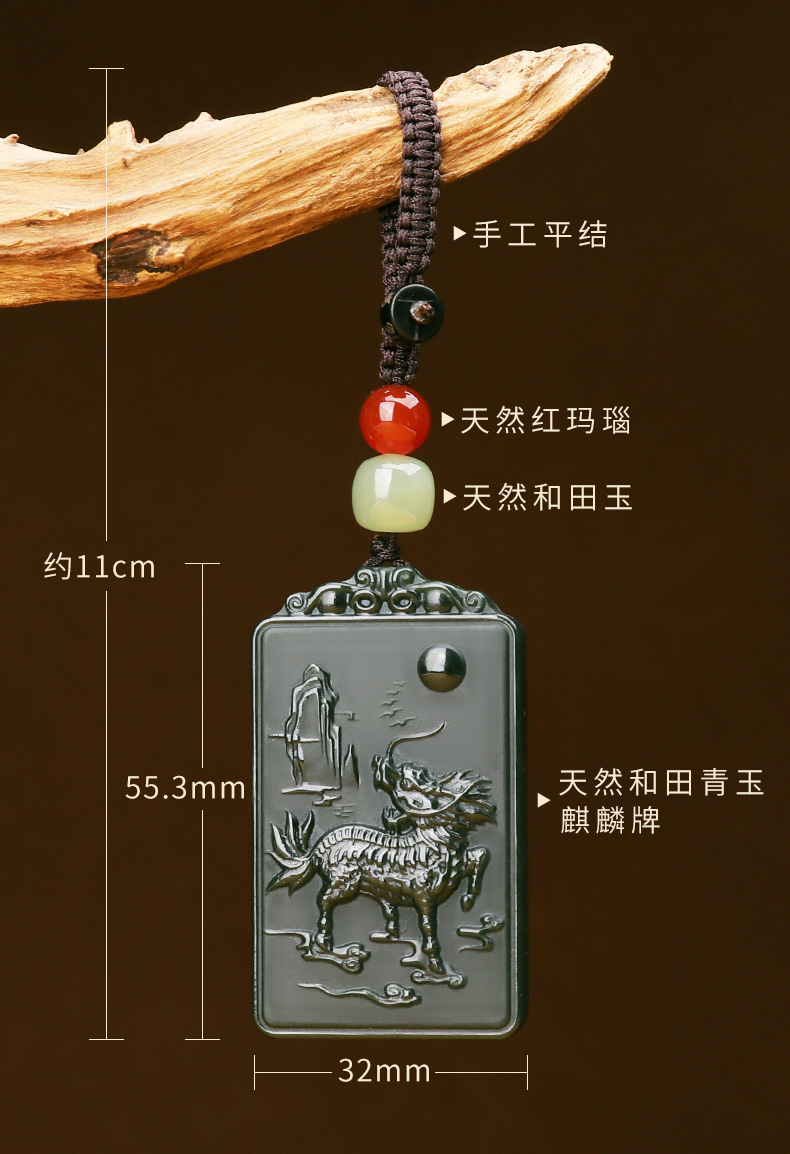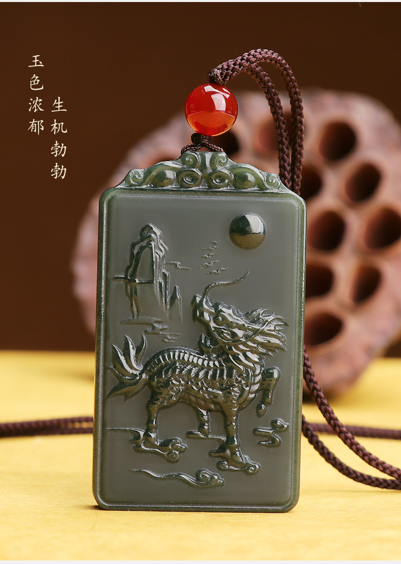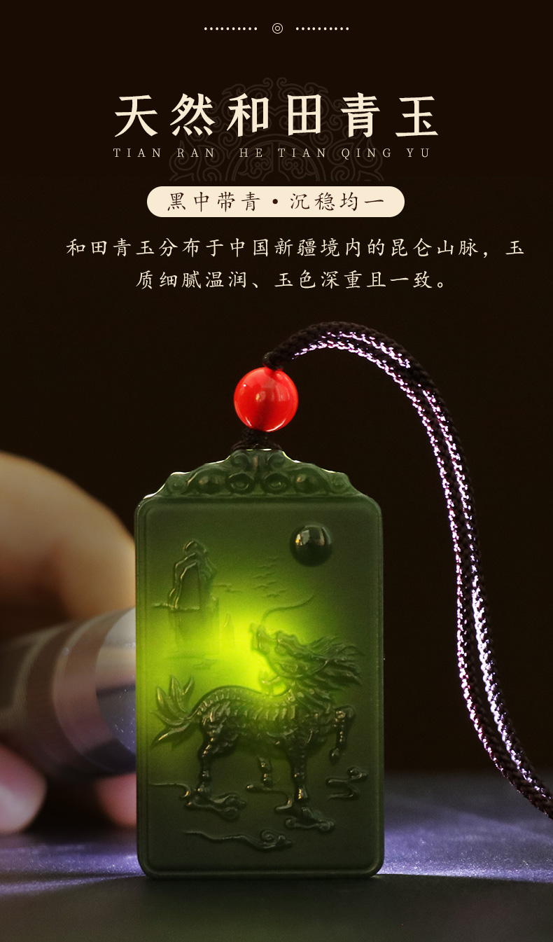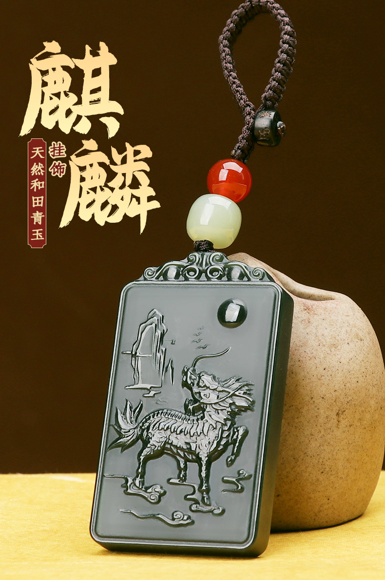 【和田青玉麒麟挂件】带证书