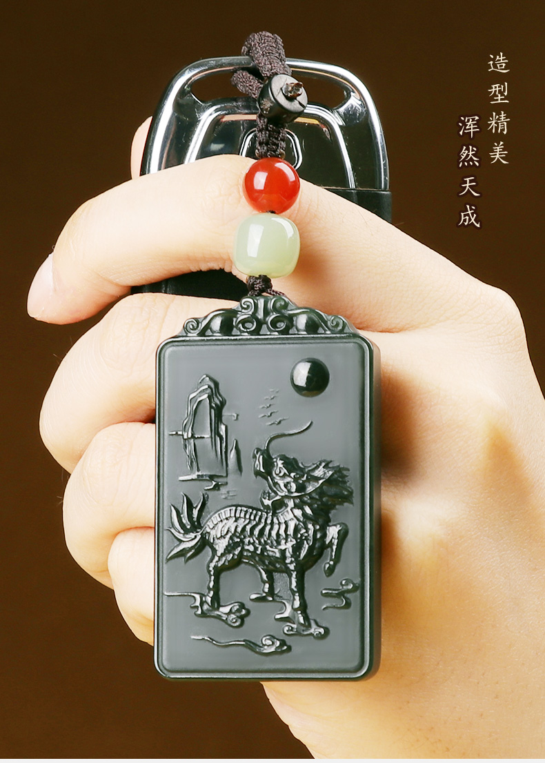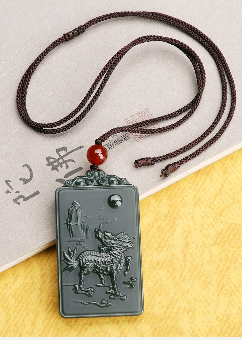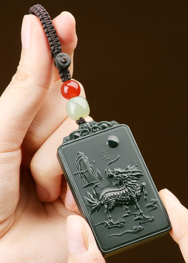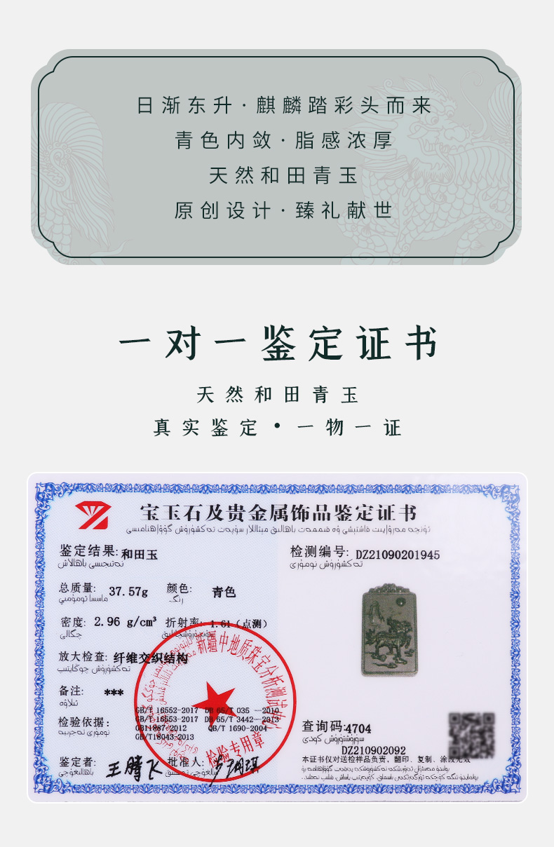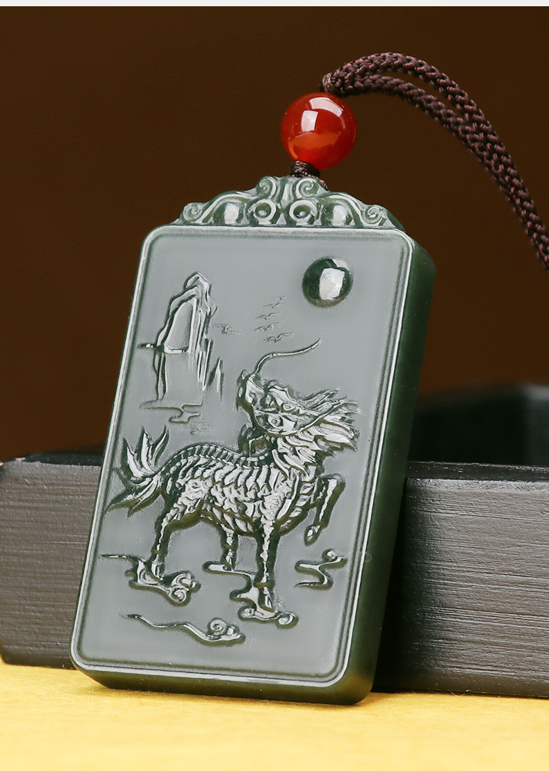 【和田青玉麒麟挂件】带证书