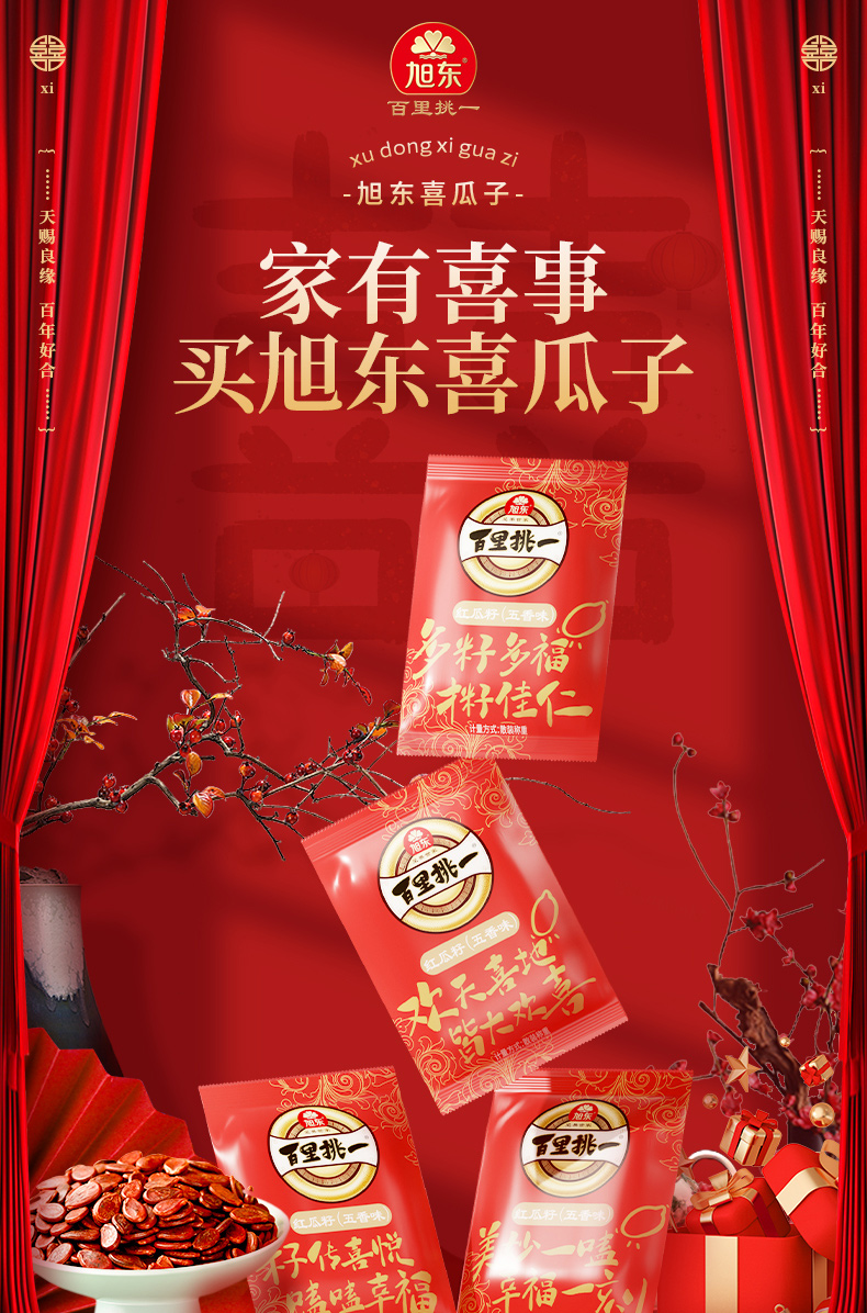 旭东520红瓜子百里挑一五香味红瓜子婚庆结婚小包装小袋休闲零食坚果炒货