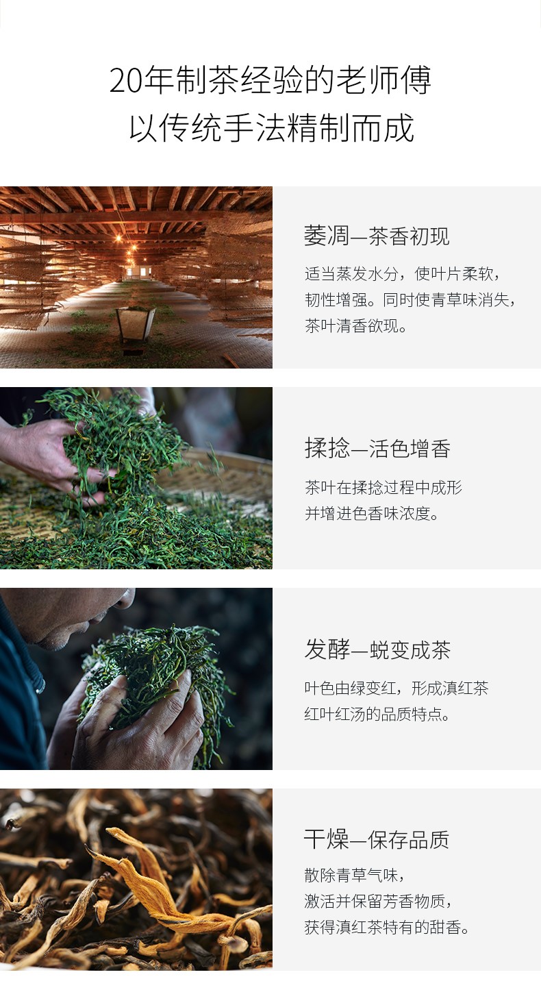 山田土 滇红工夫红茶云南滇红大叶种茶叶 桐木盒包装滇红裱白礼盒