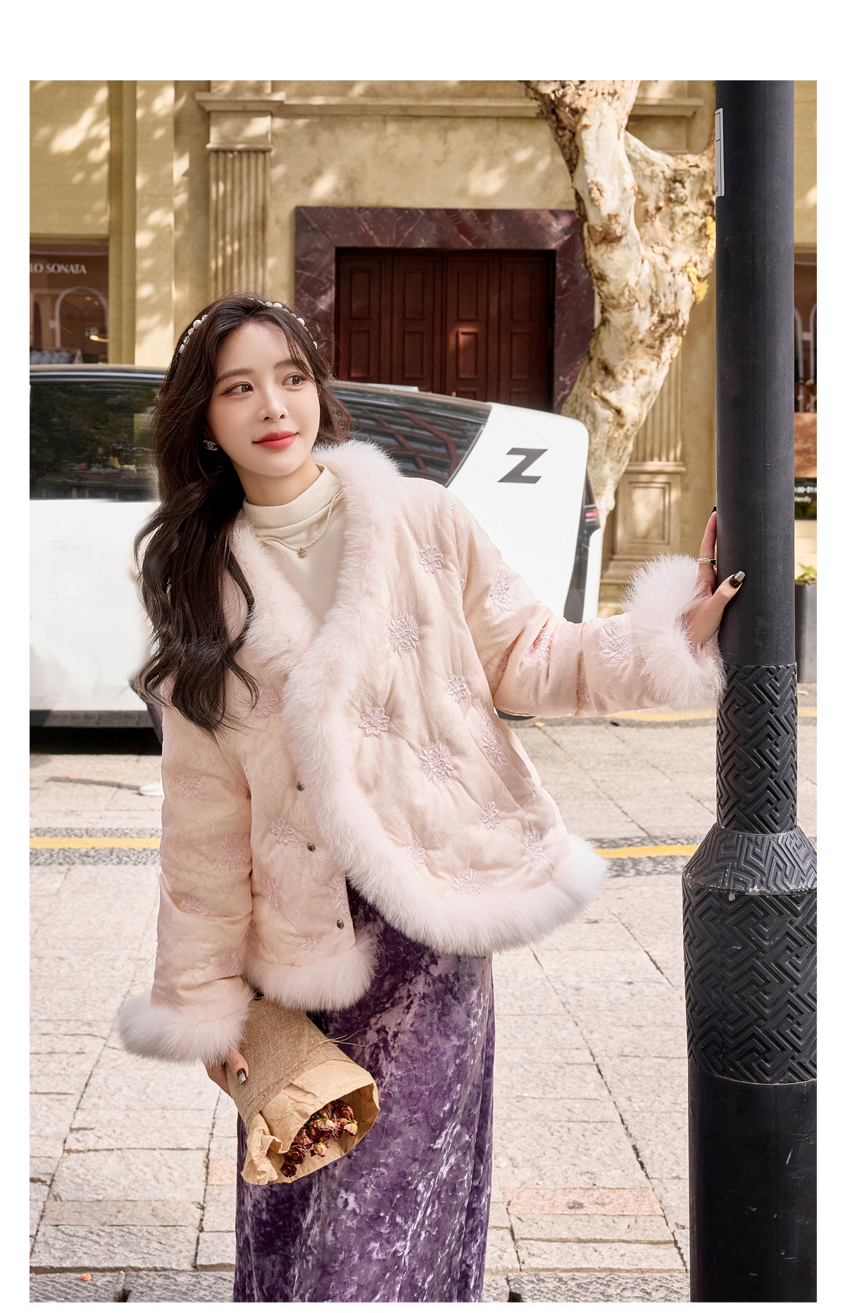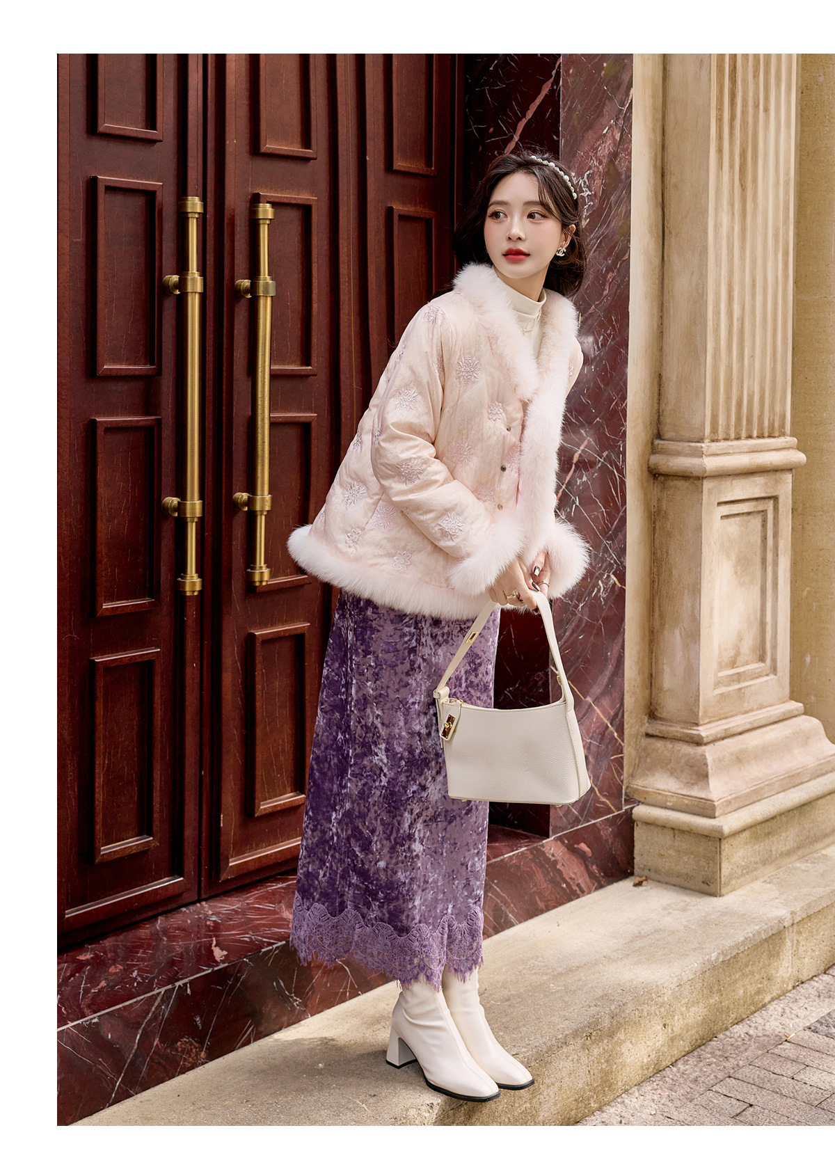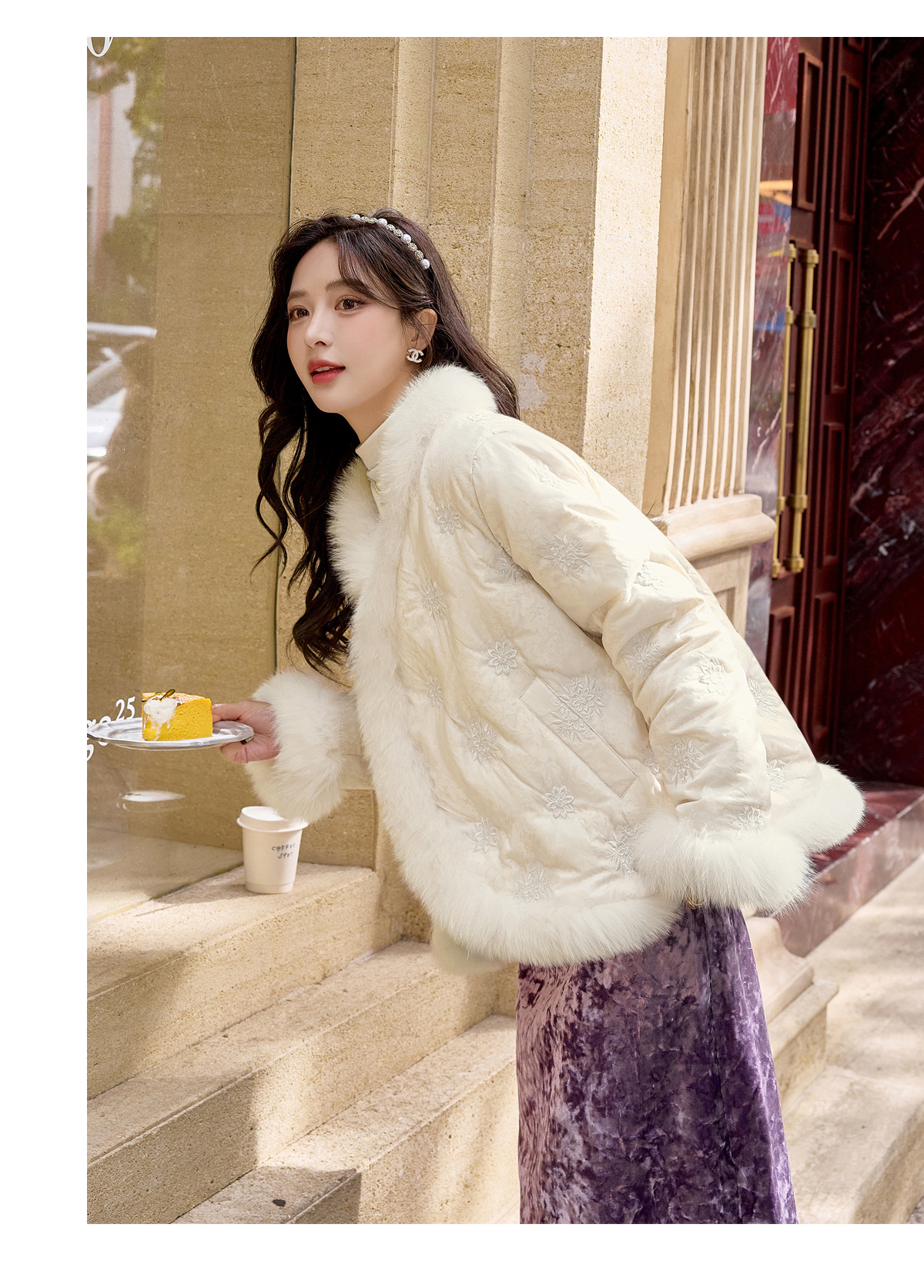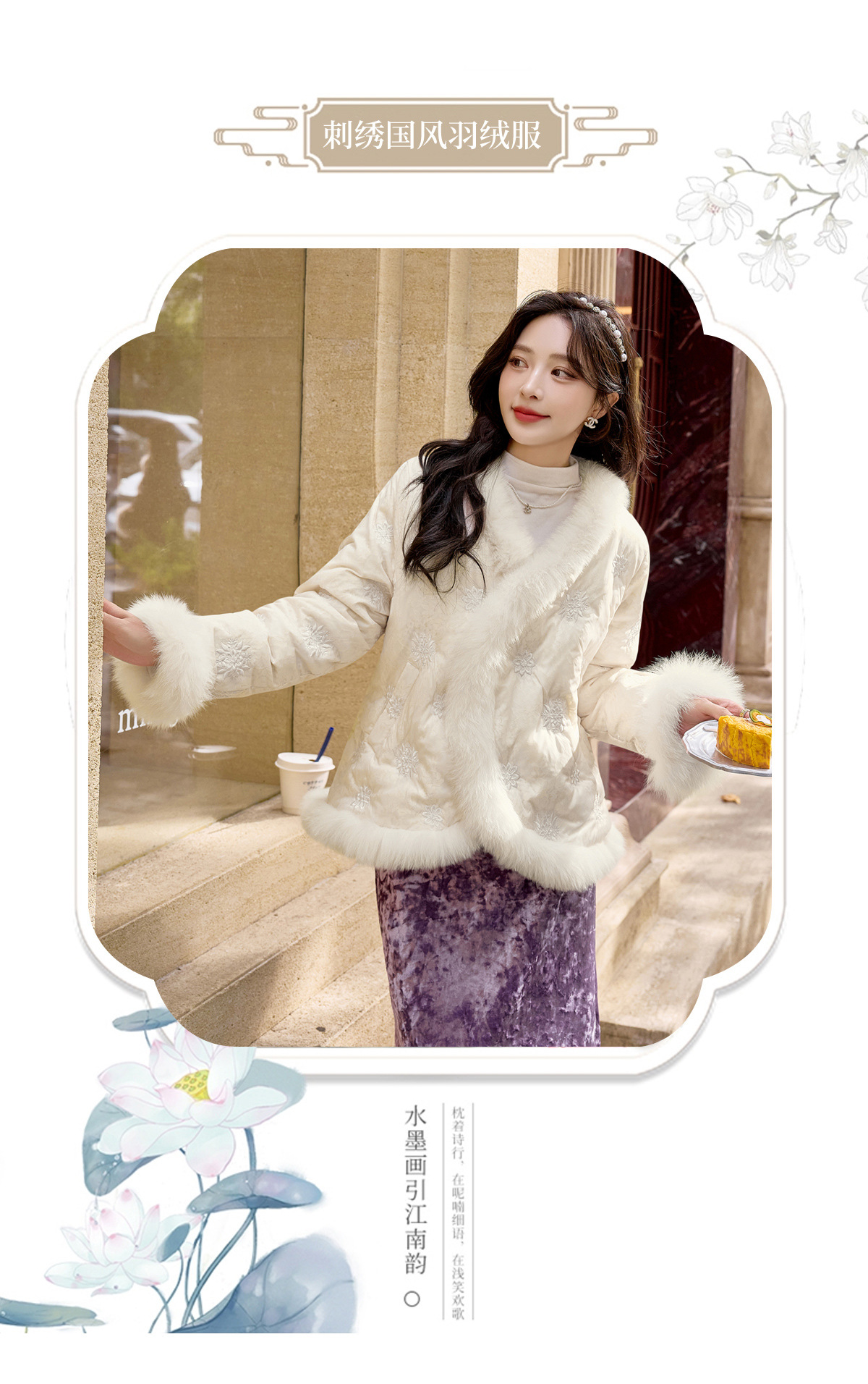 HR HJY255526狐狸毛拼接气质优雅时尚大气新中式国风羽绒服 商品图1