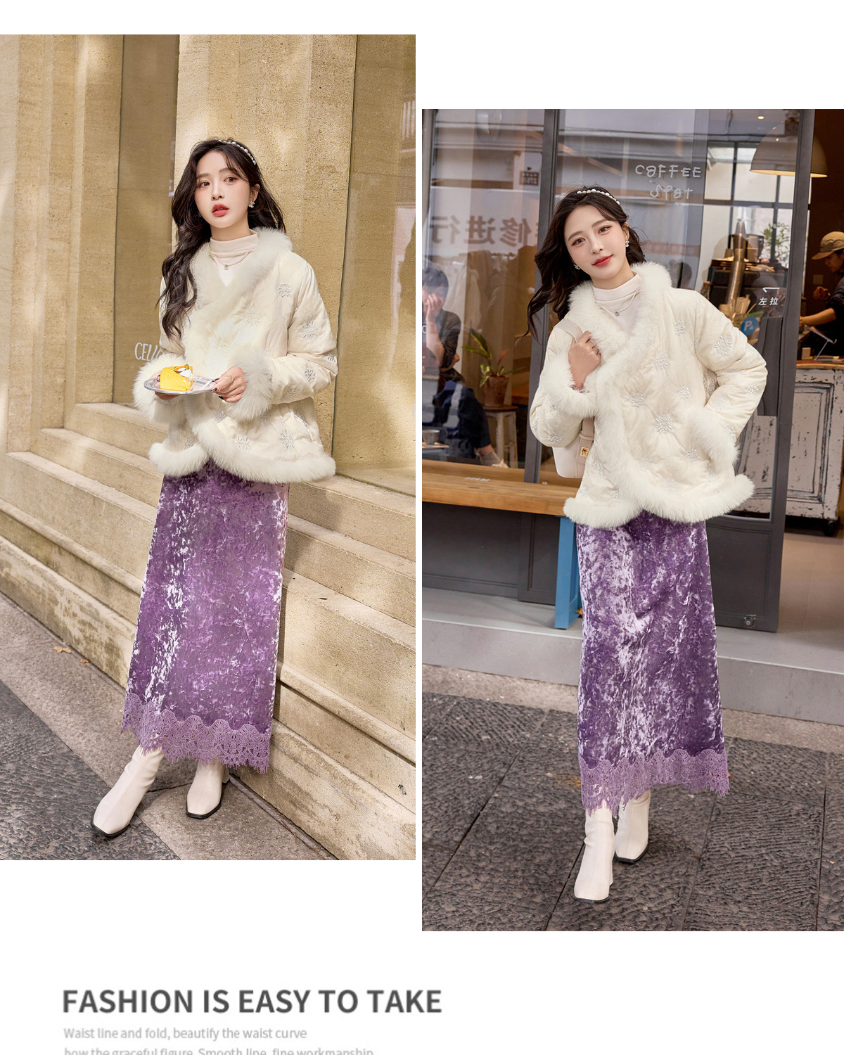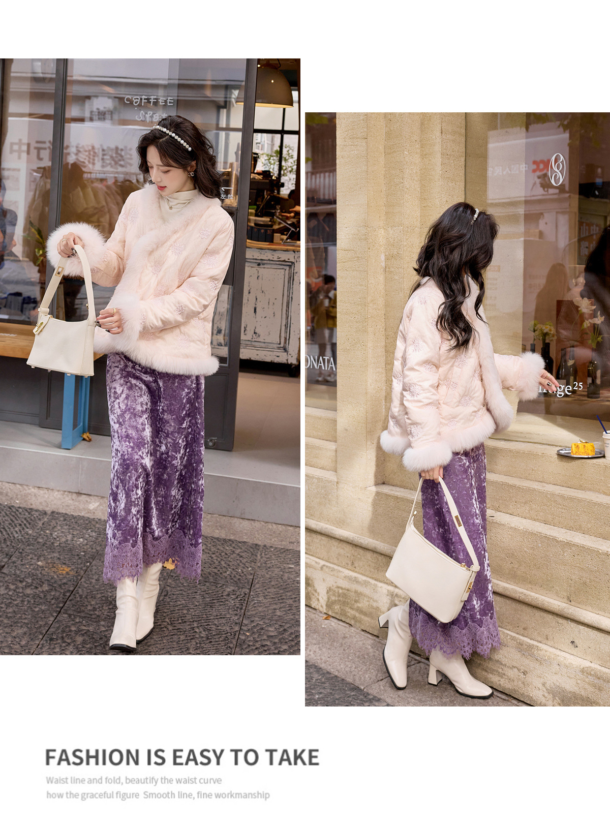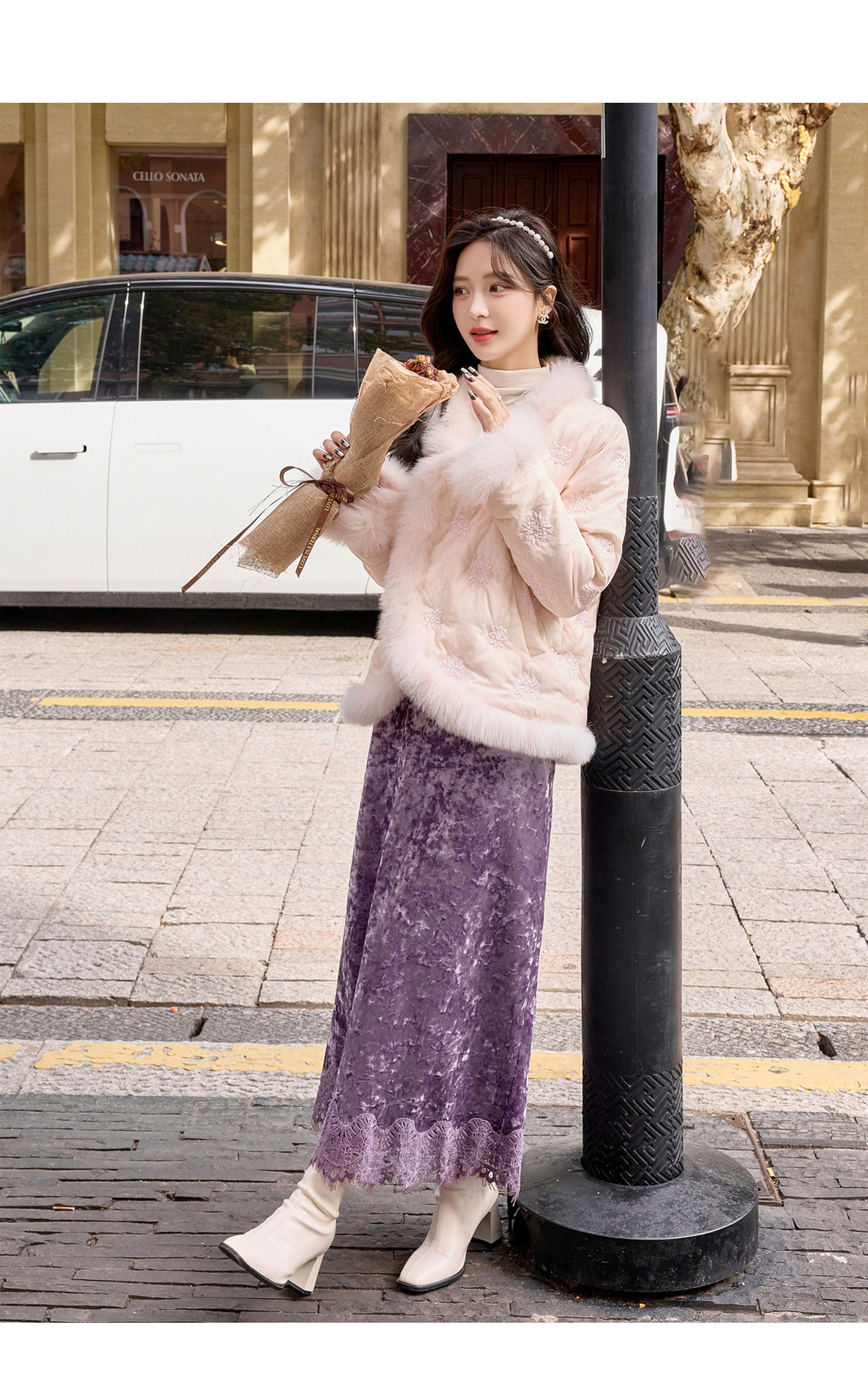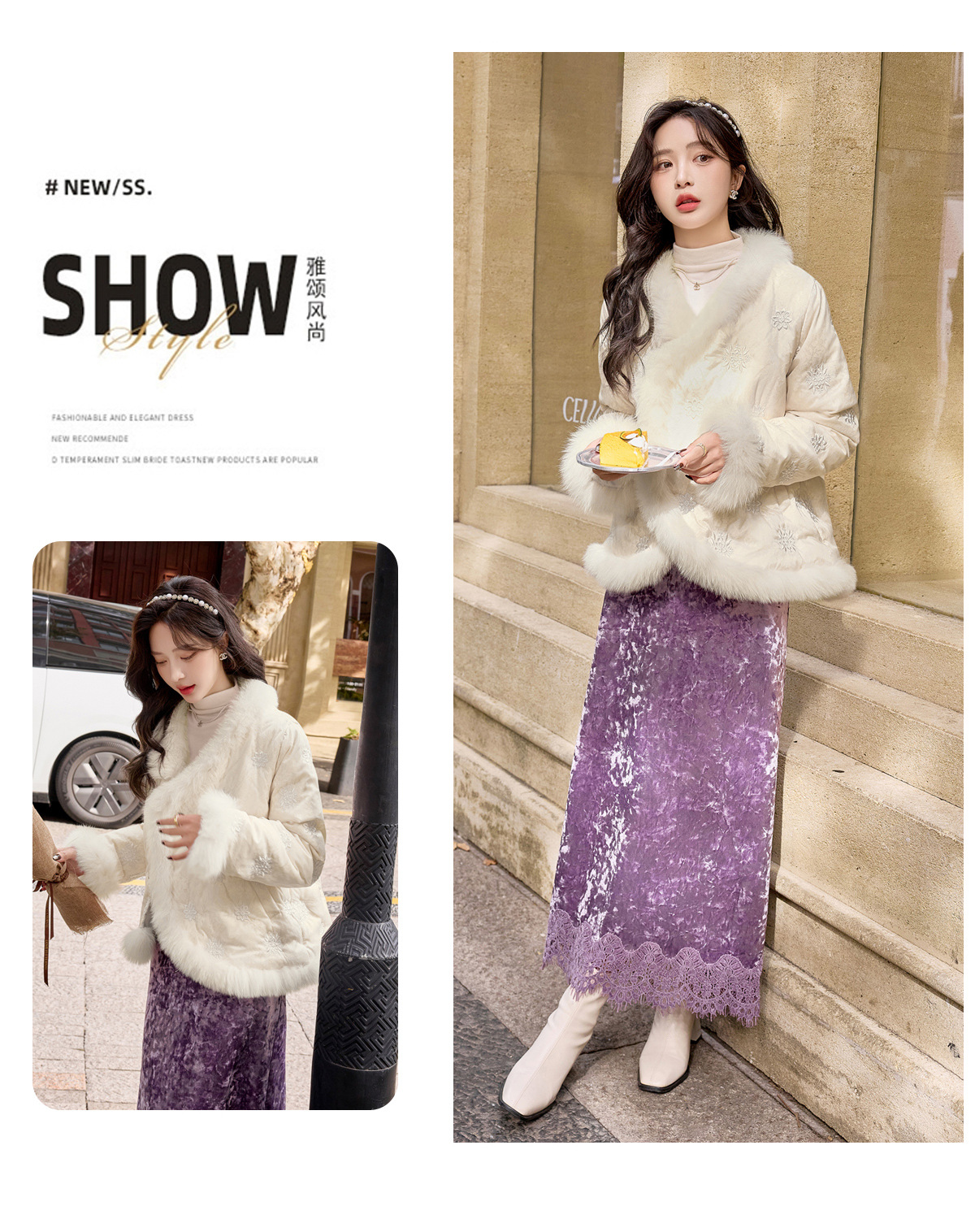 HR HJY255526狐狸毛拼接气质优雅时尚大气新中式国风羽绒服 商品图1