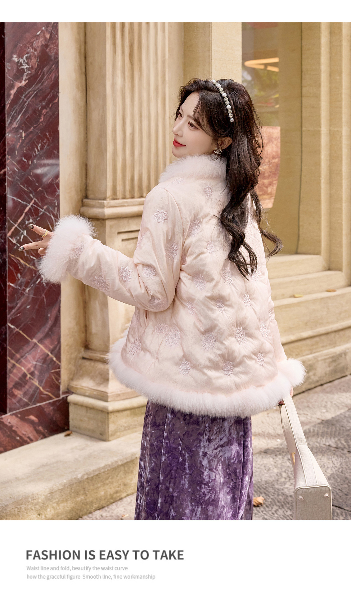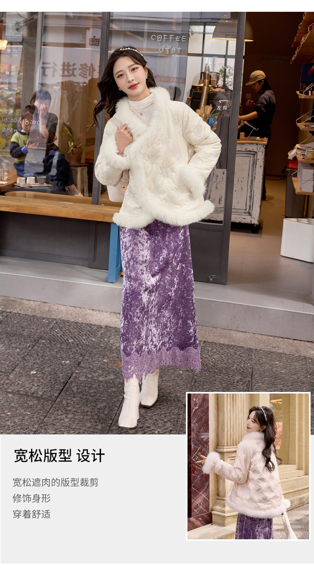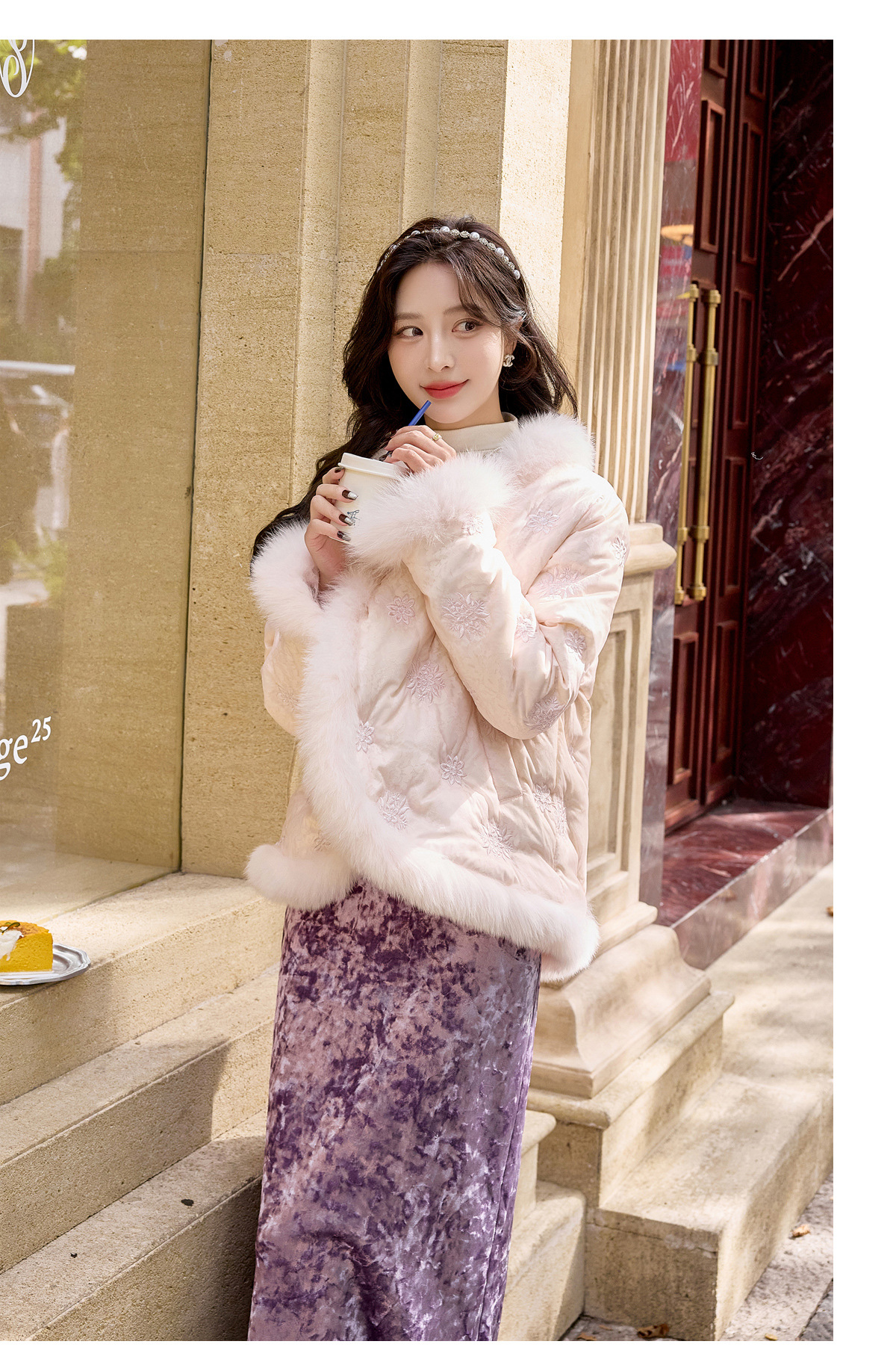 HR HJY255526狐狸毛拼接气质优雅时尚大气新中式国风羽绒服 商品图3