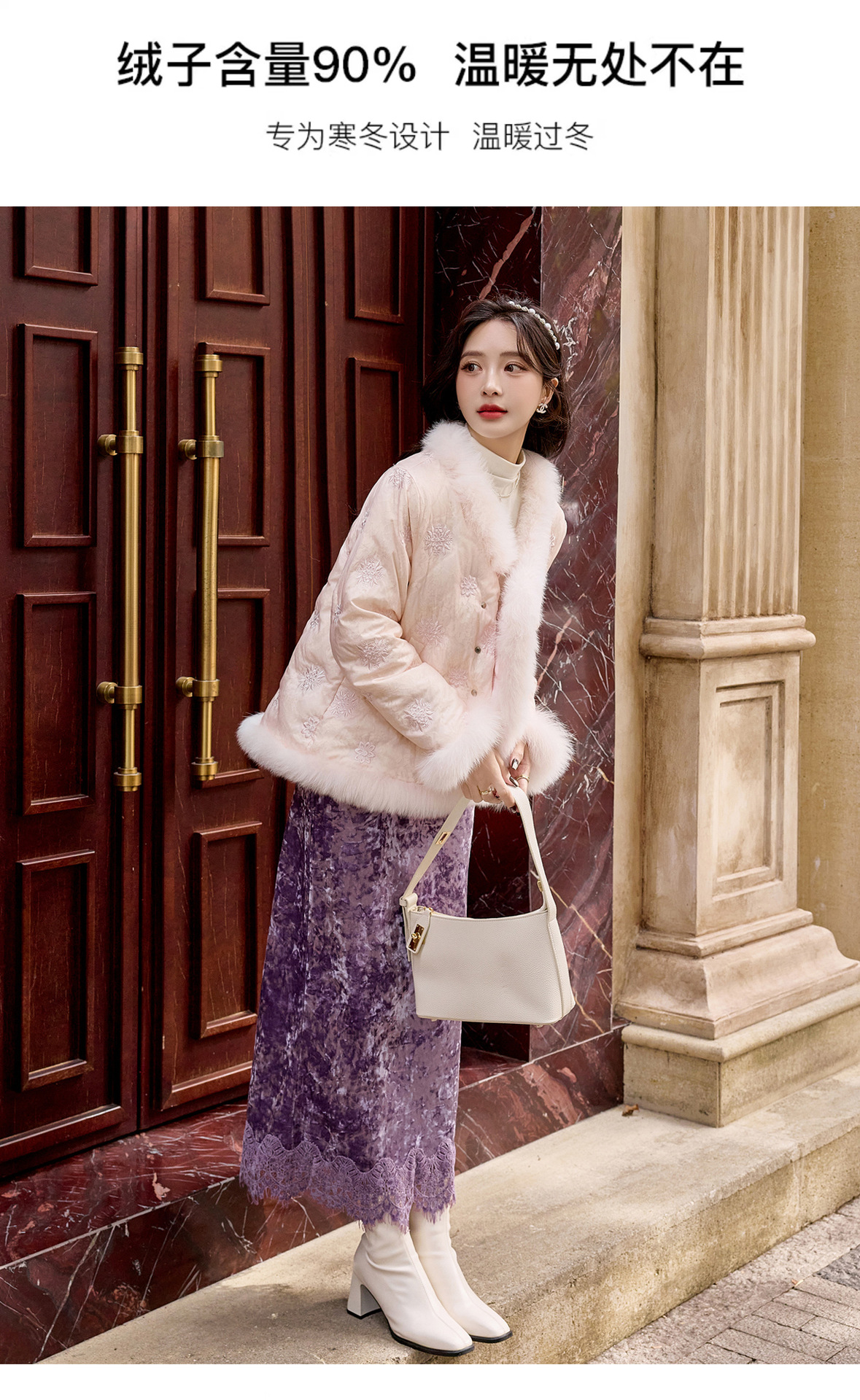 HR HJY255526狐狸毛拼接气质优雅时尚大气新中式国风羽绒服 商品图0