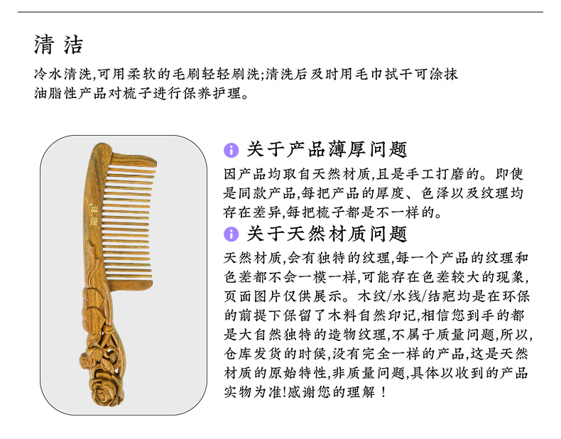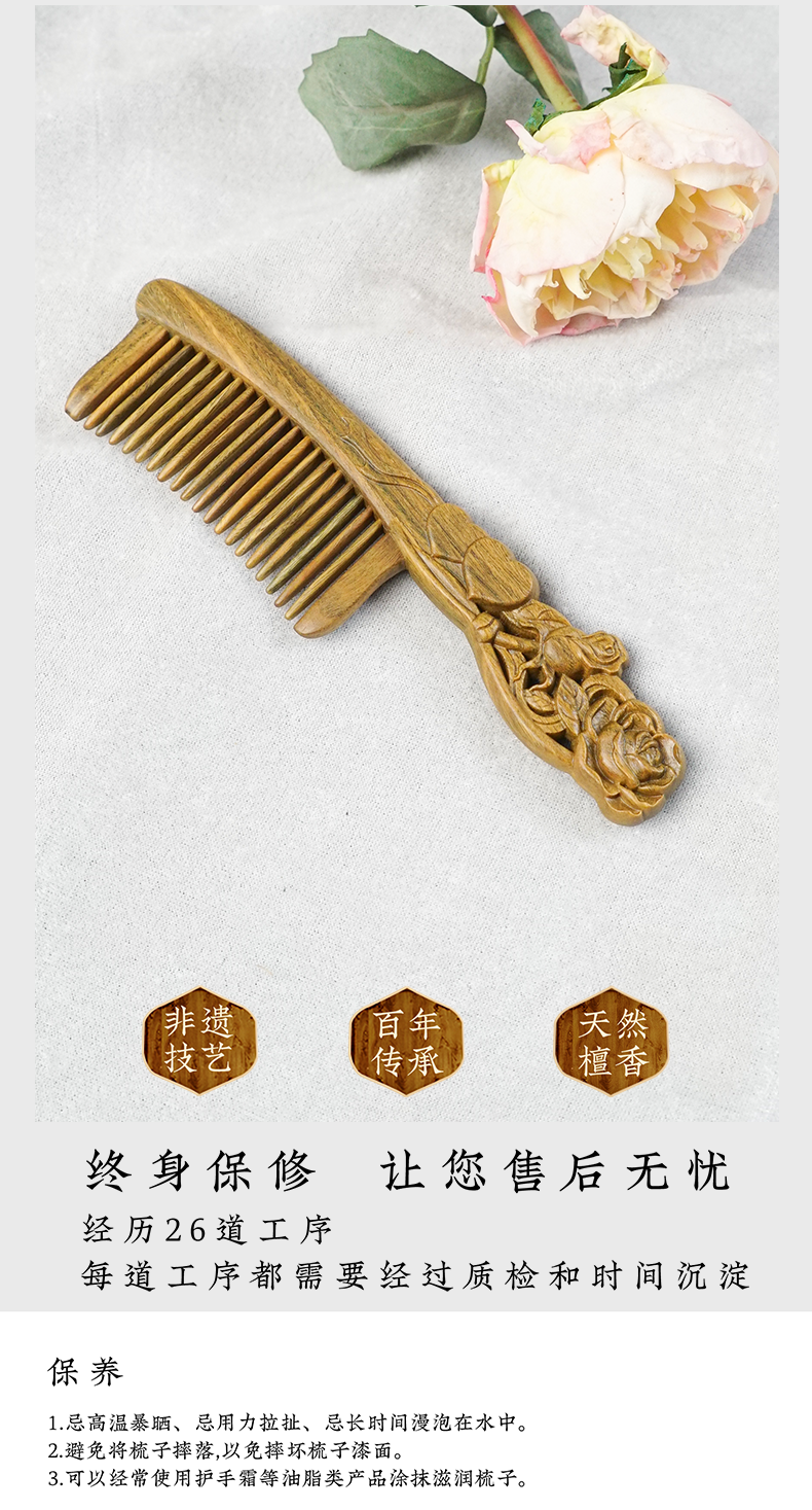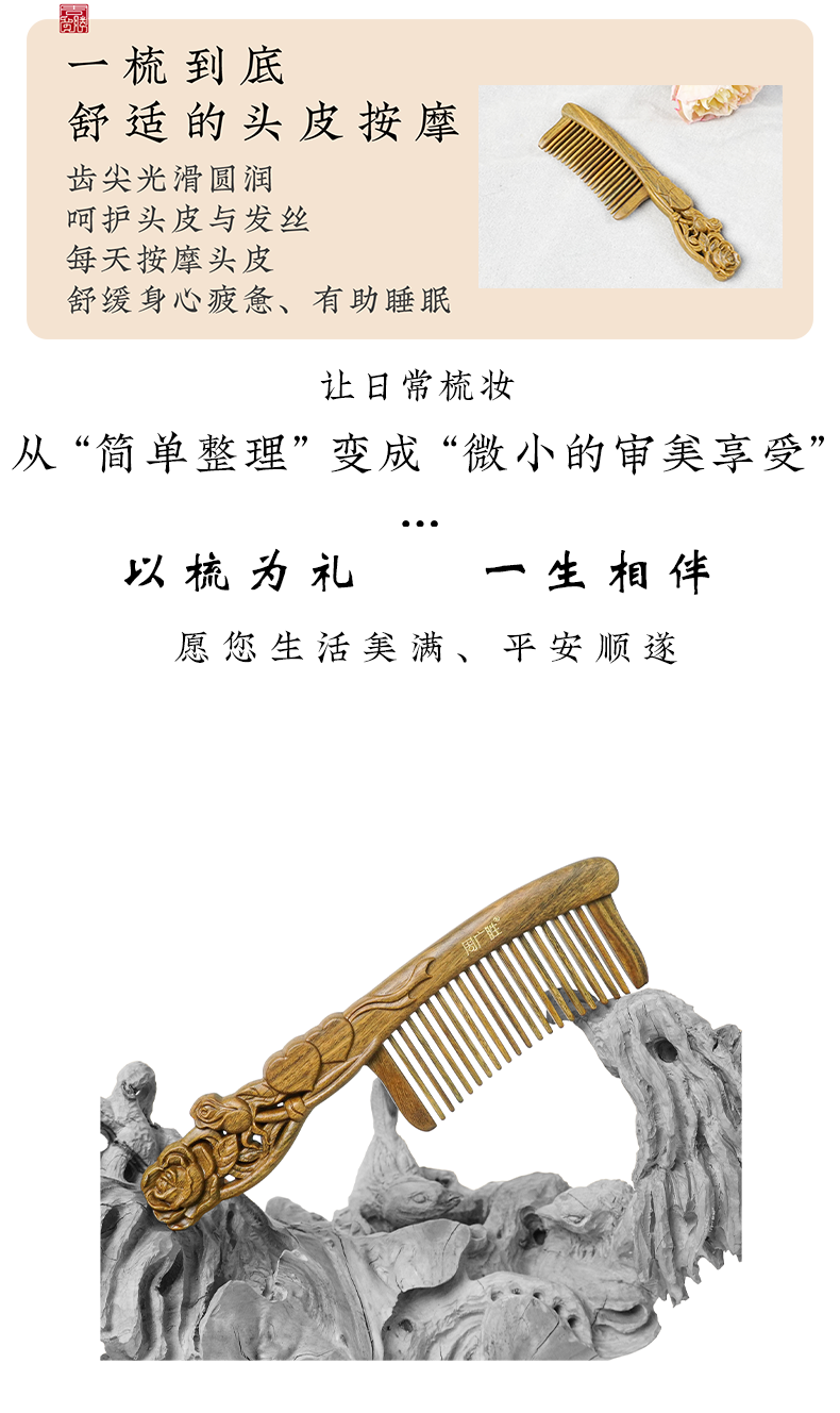 周广胜天然木材雕花合木梳雅纹男士女士家用护发顺发按摩梳礼盒