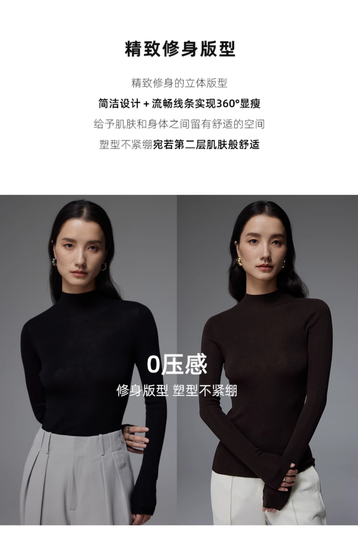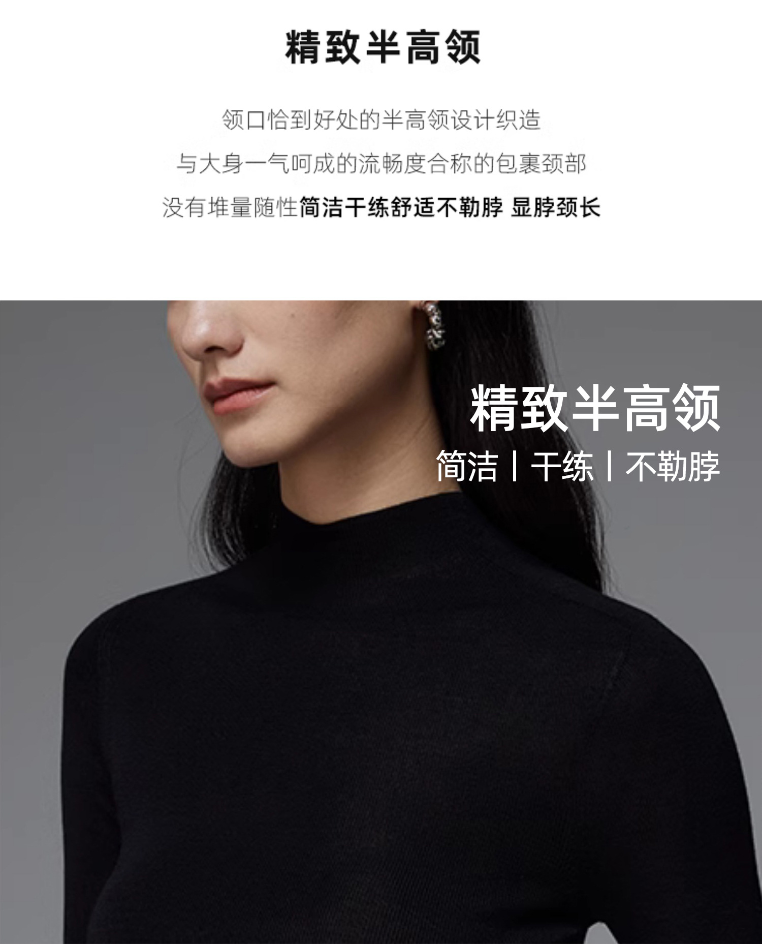 WW 24-15可机洗美丽诺细羊毛半高领薄款羊毛衫 商品图3