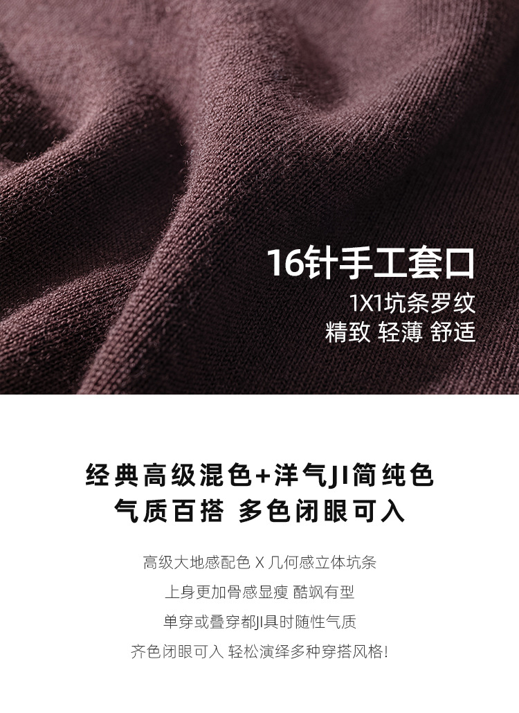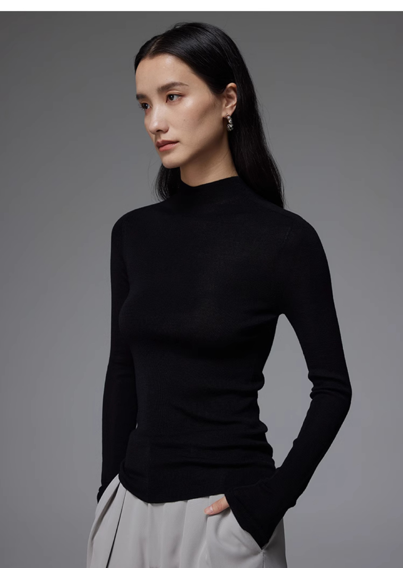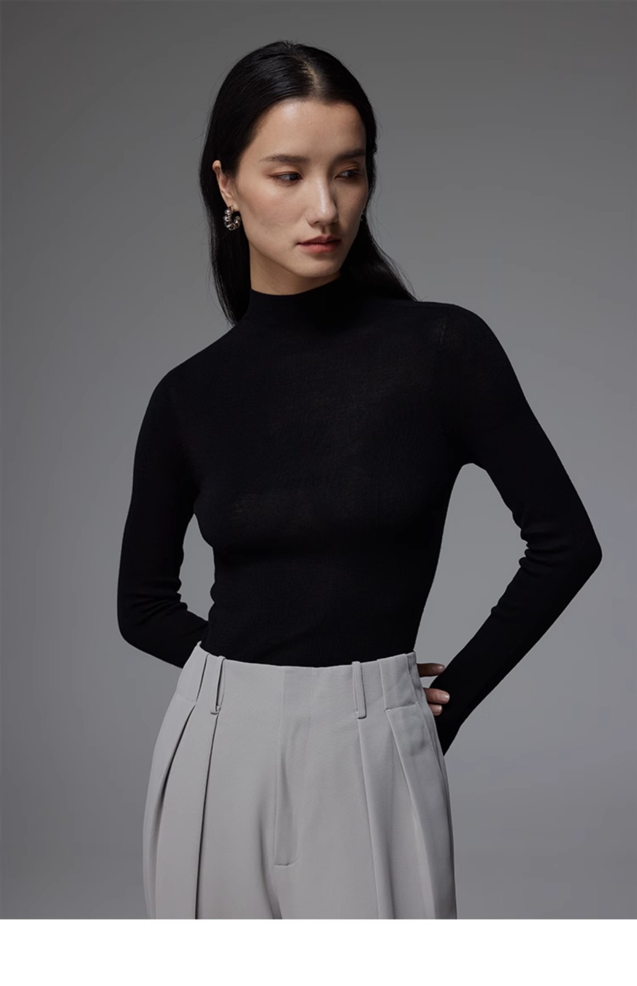 WW 24-15可机洗美丽诺细羊毛半高领薄款羊毛衫