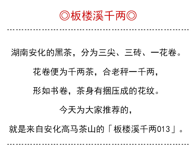 茶香记 板楼溪千两013 高马茶山 荒野纯料 醇厚甜柔 木质香调 安化黑茶