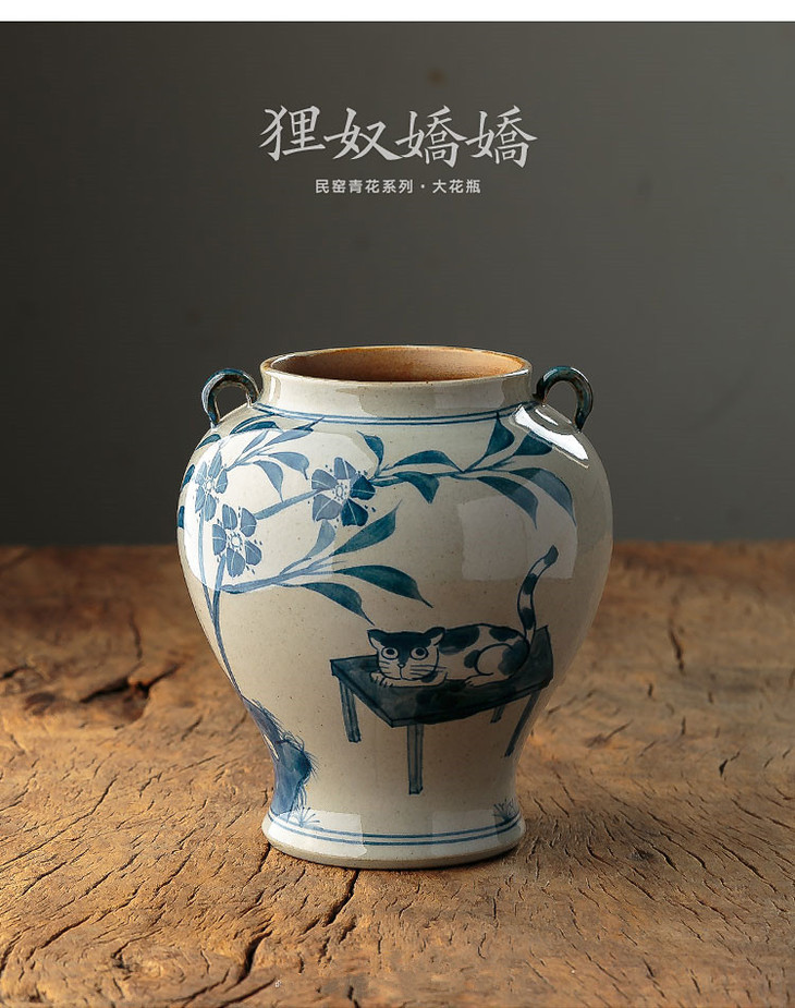 「中式青花瓷手绘小插花瓶」客厅摆件 景德镇纯手工陶瓷创意水培花器 商品图2