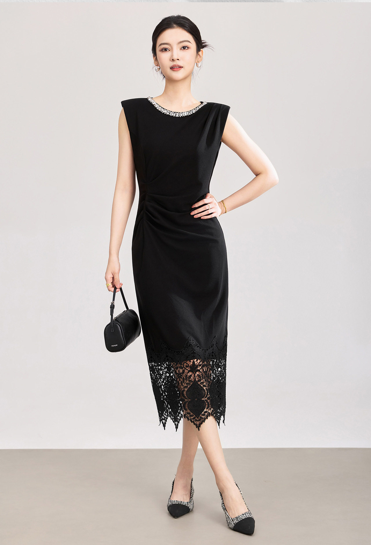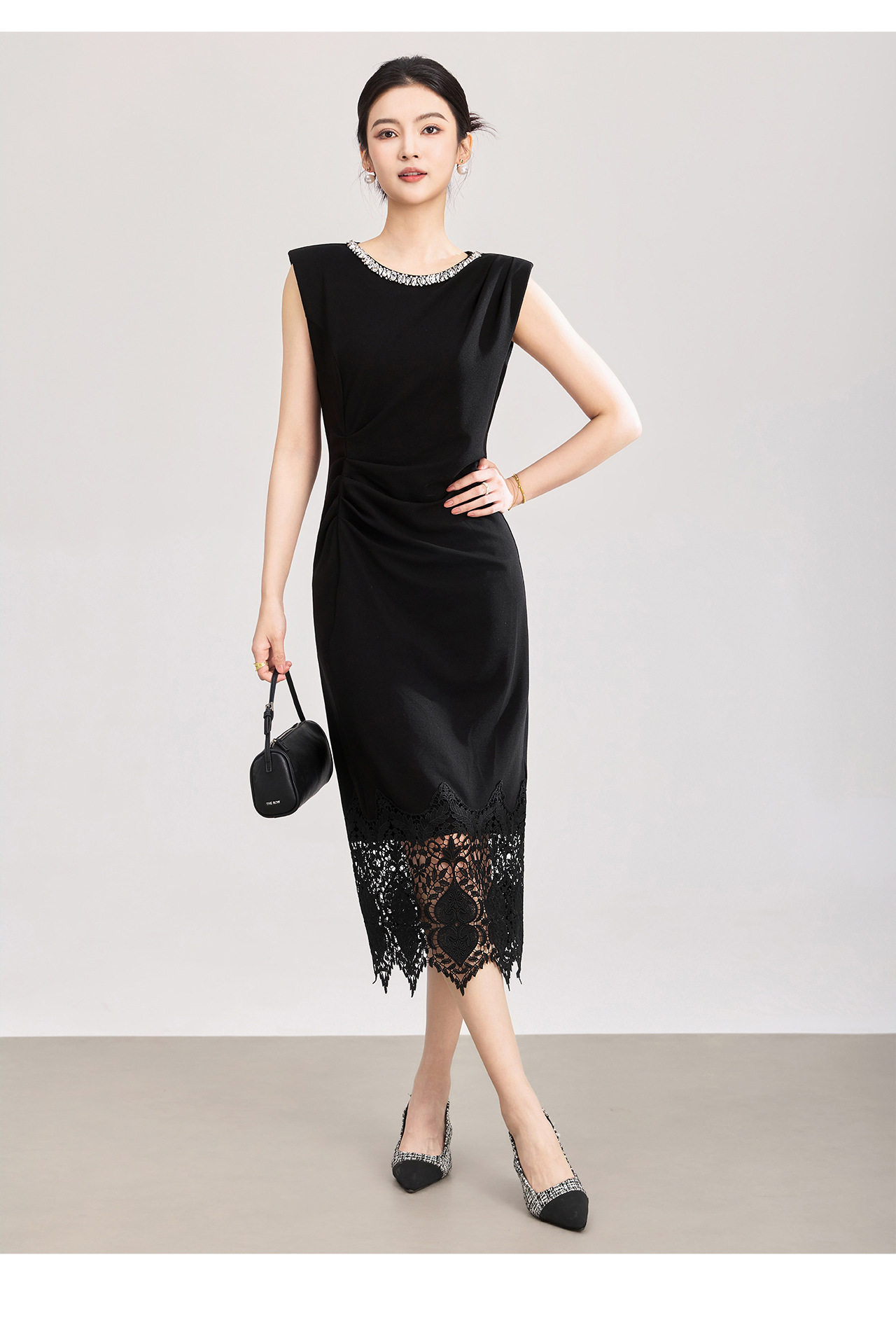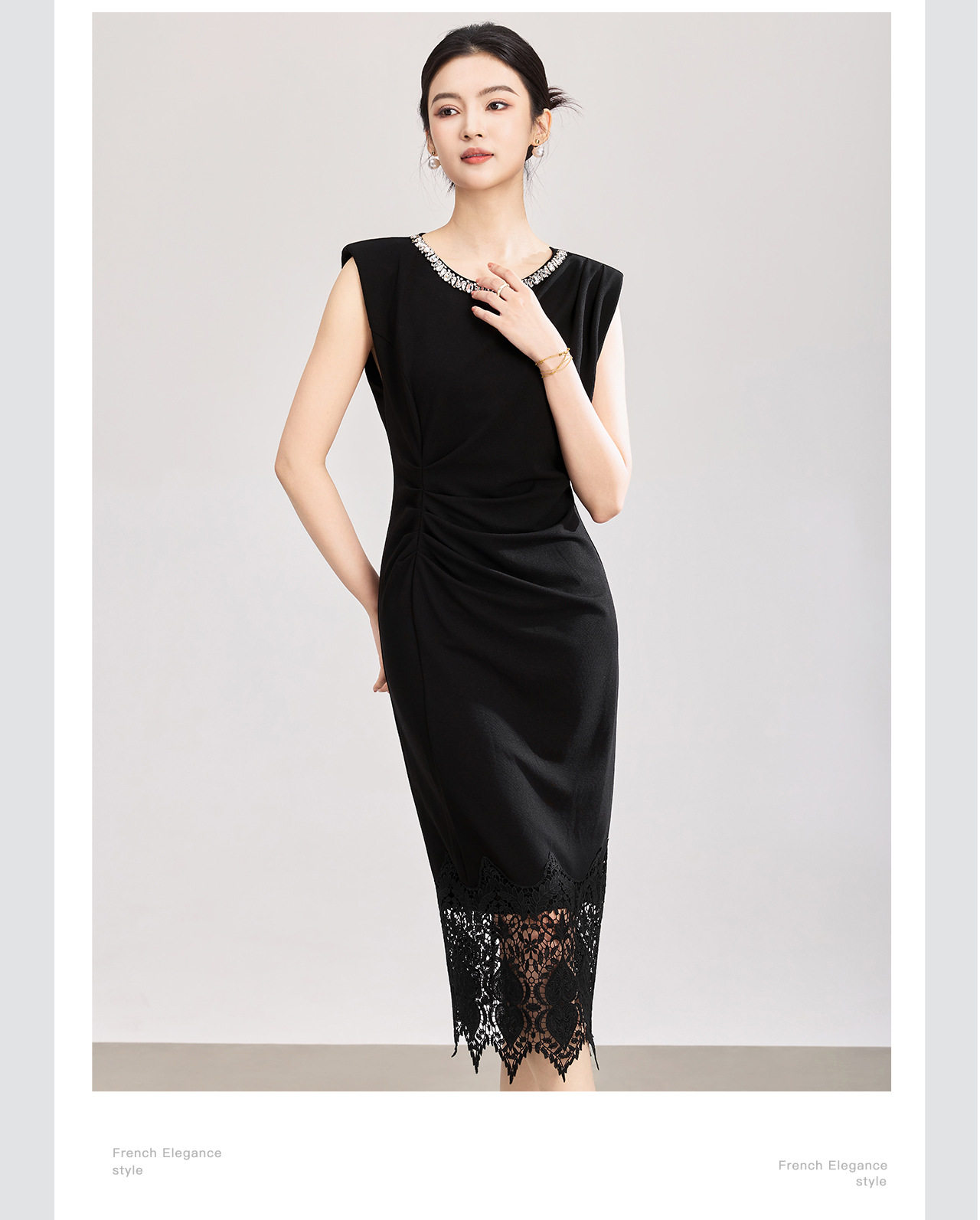 「高货wl」全新升级【铂金会员293/天猫399/差价106】(12340)洛诗琳轻奢名媛风镶钻连衣裙2026夏季水溶蕾丝修身包臀裙