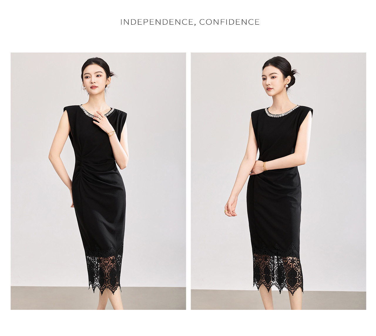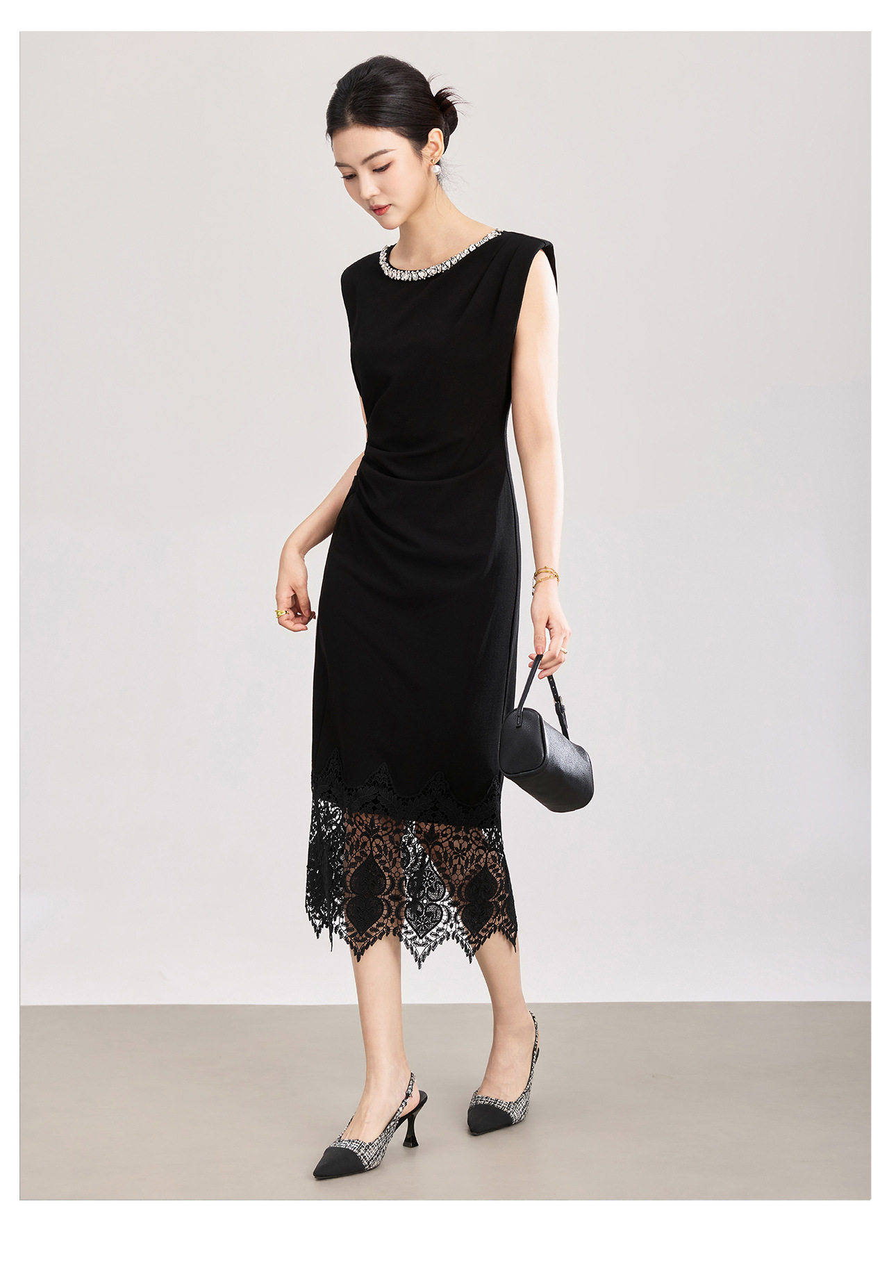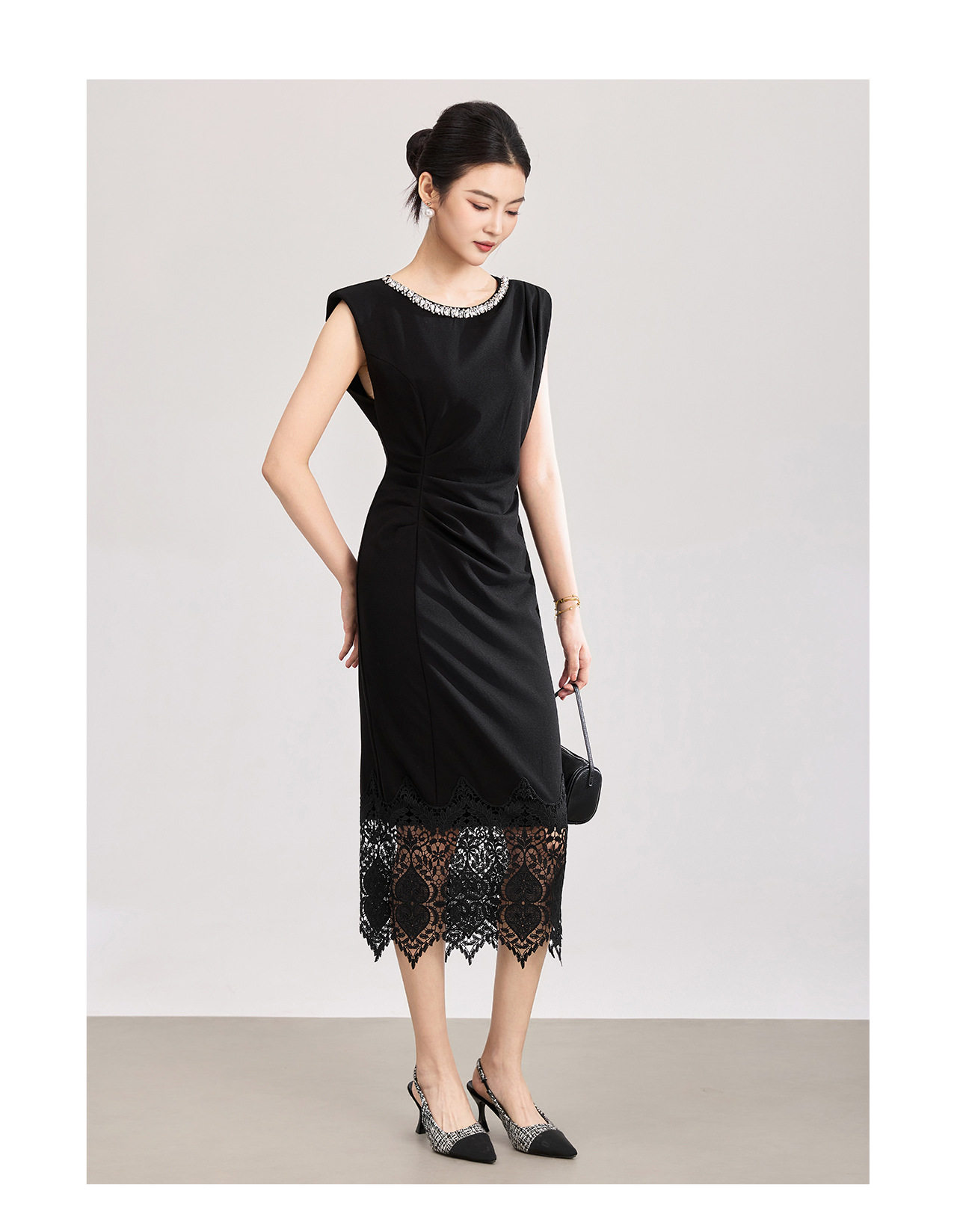 「高货wl」全新升级【铂金会员293/天猫399/差价106】(12340)洛诗琳轻奢名媛风镶钻连衣裙2026夏季水溶蕾丝修身包臀裙