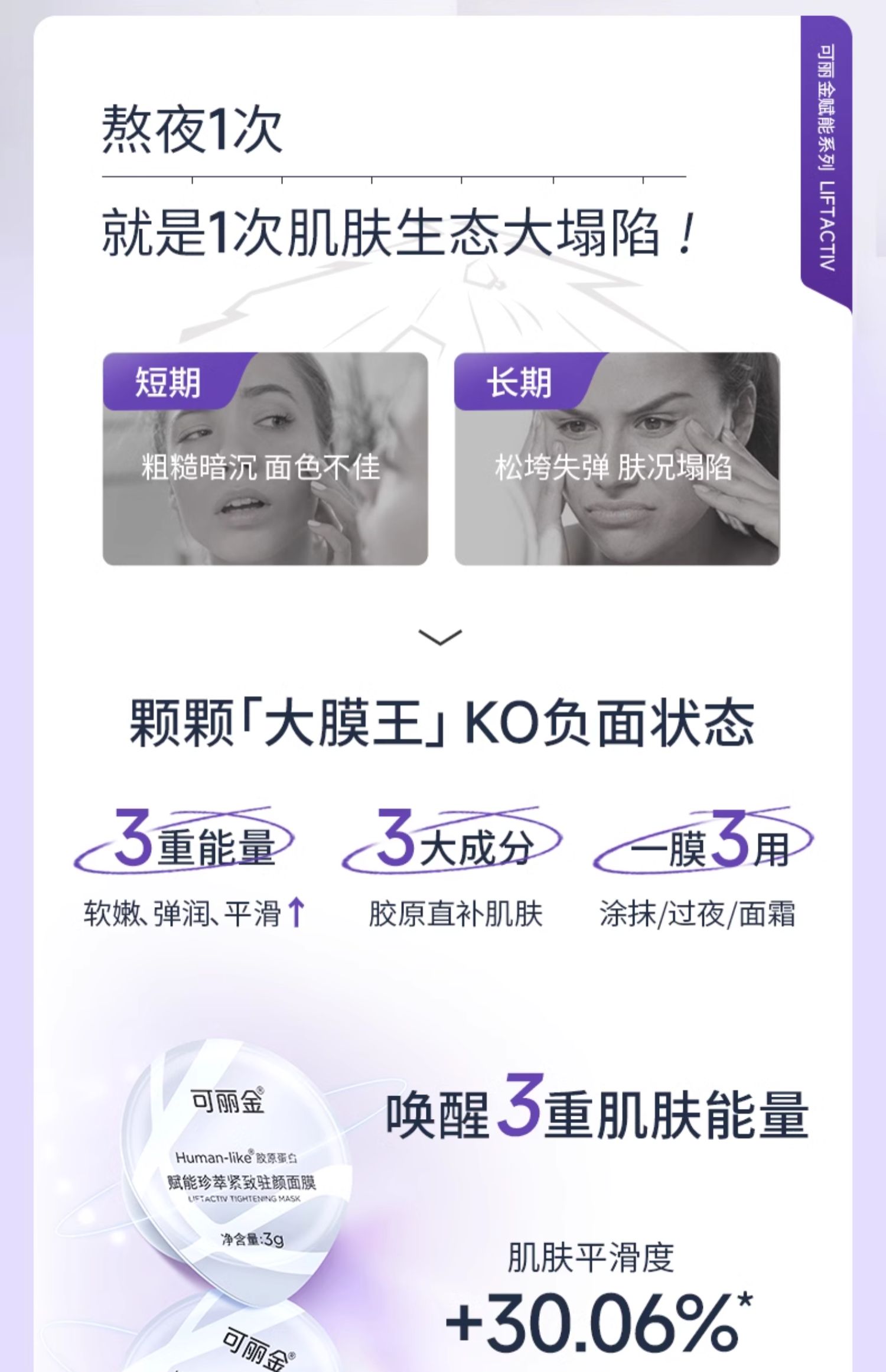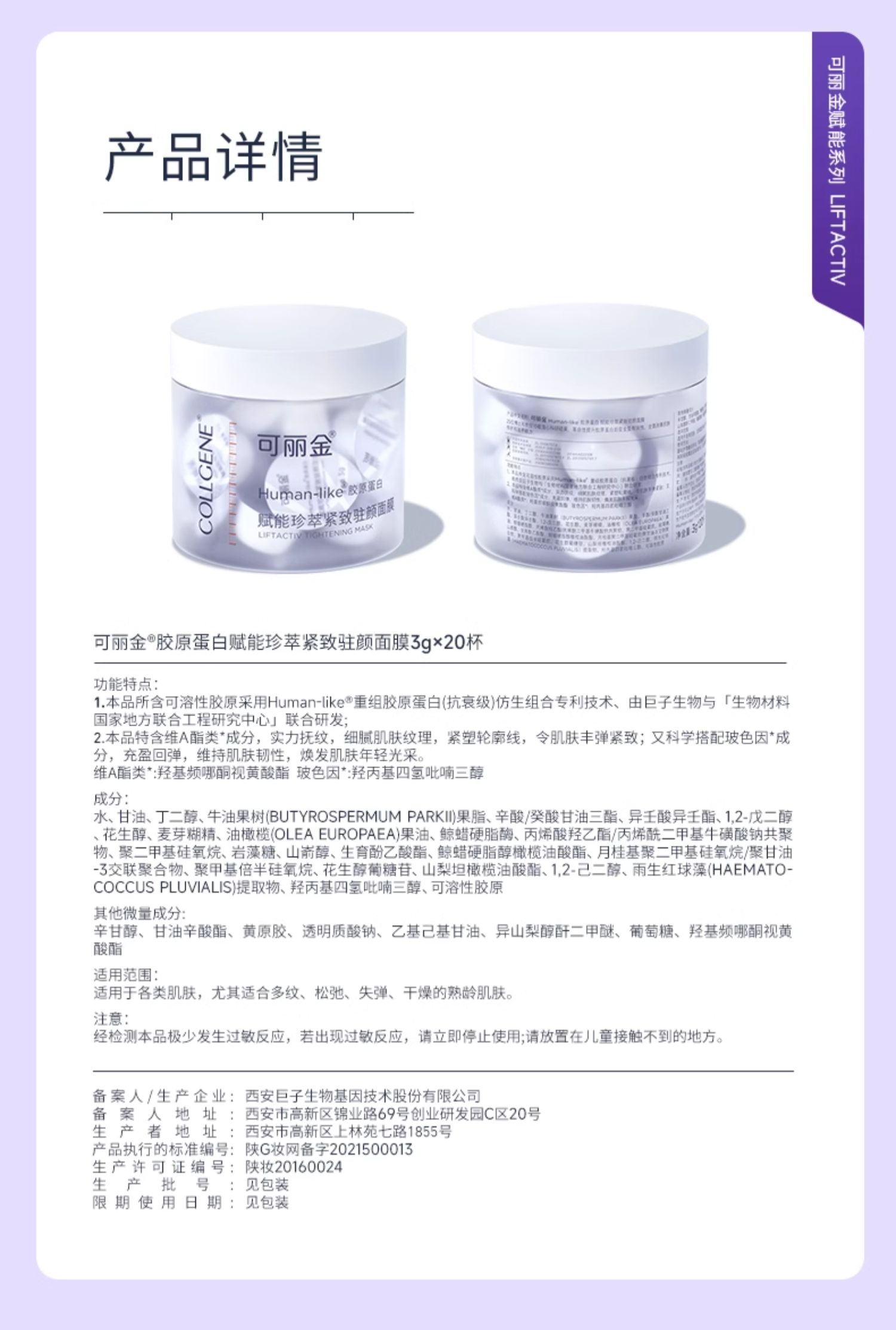 可丽金赋能珍萃紧致驻颜面膜 清爽版/经典版 3g*20杯/盒 可丽金胶原大魔王