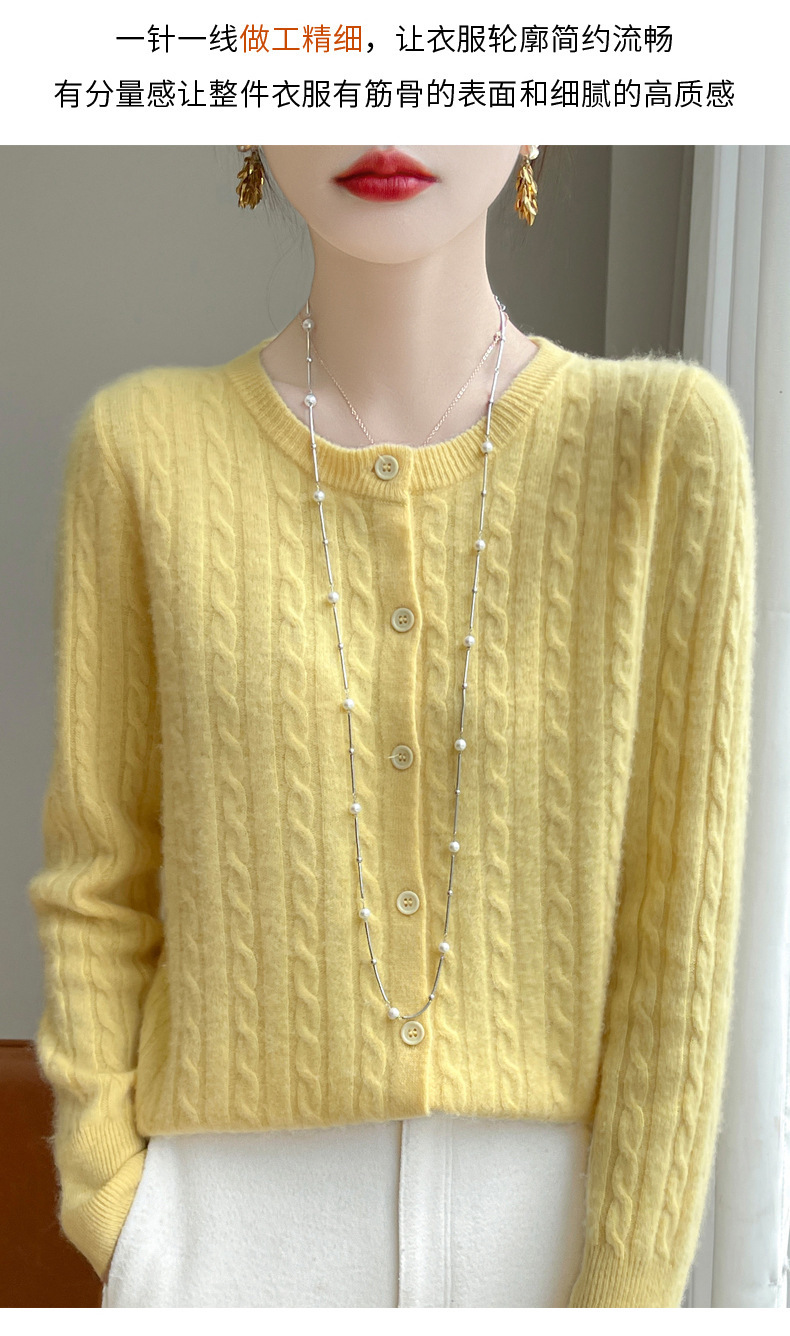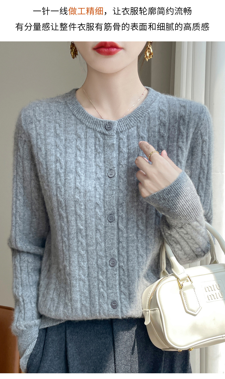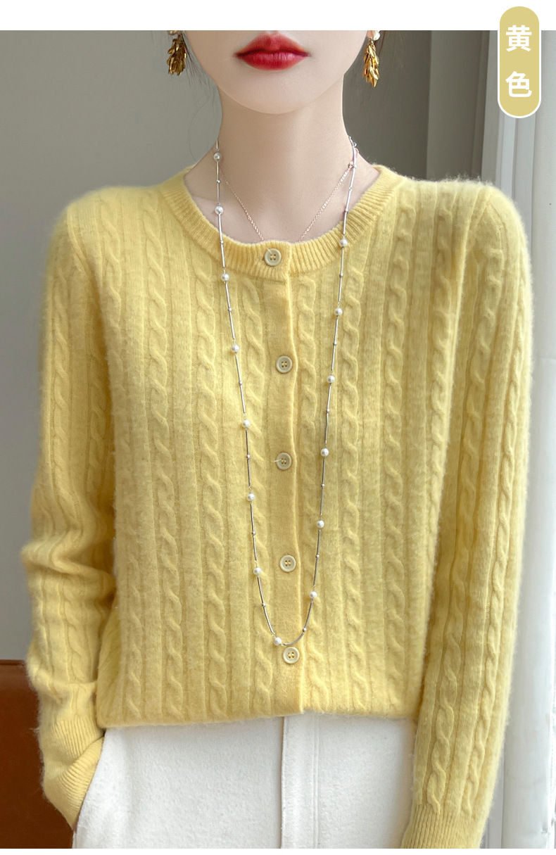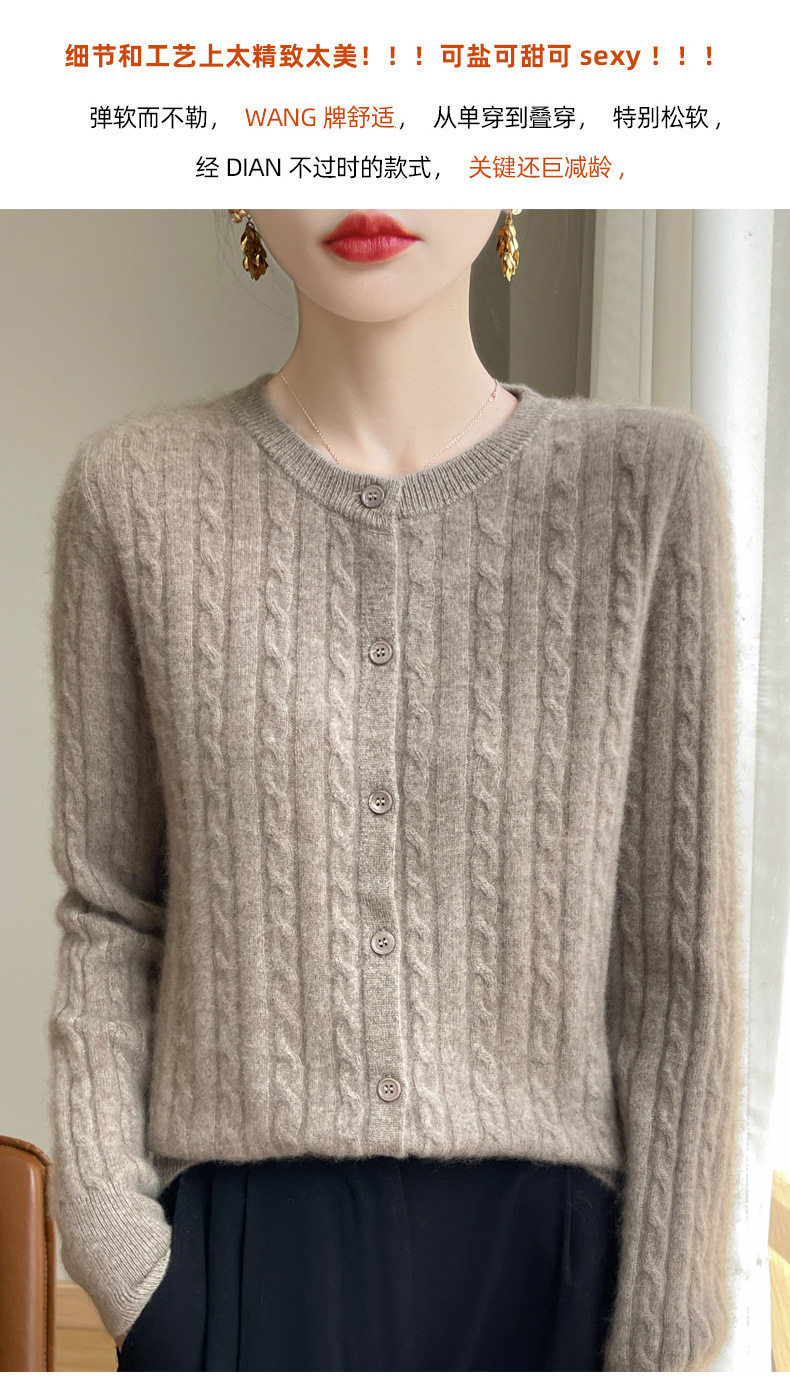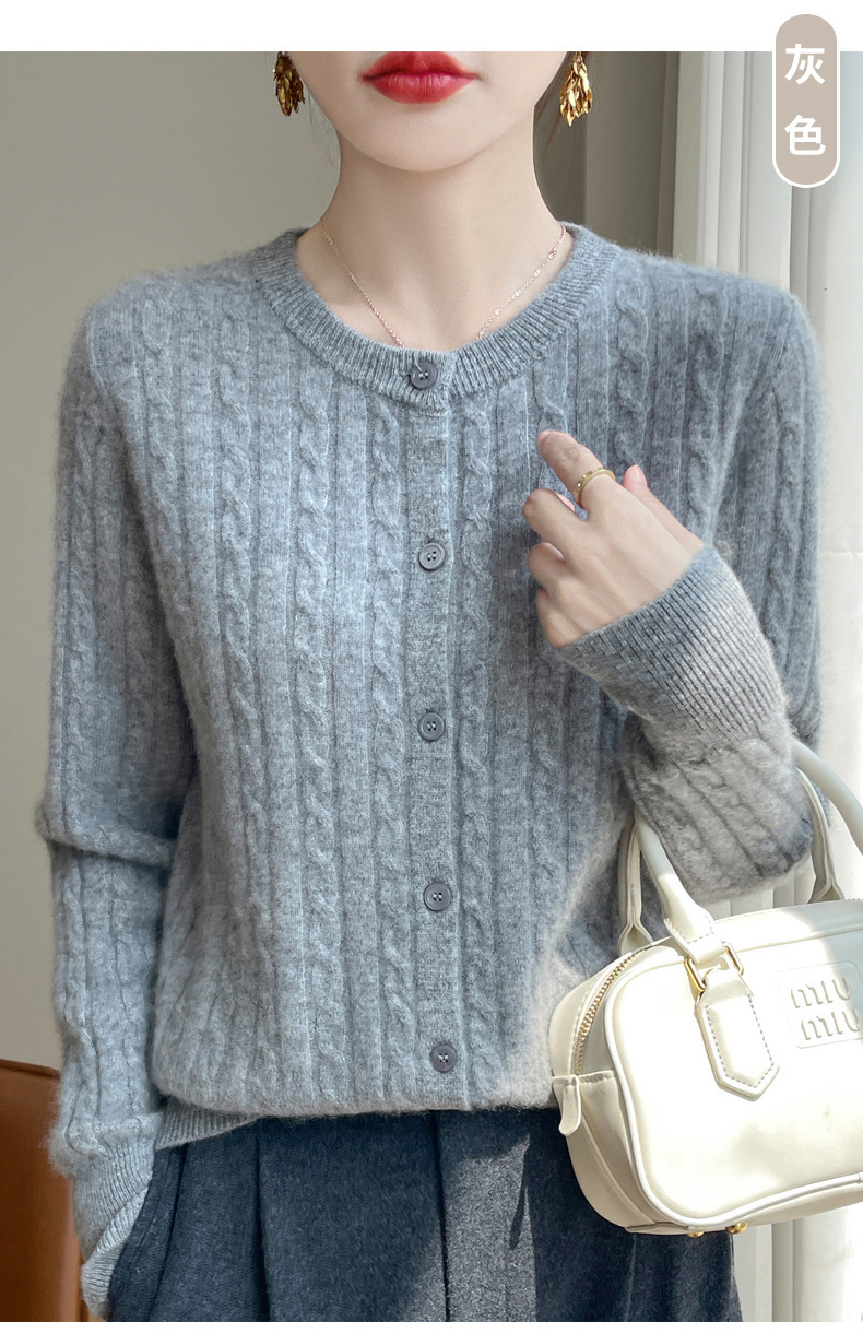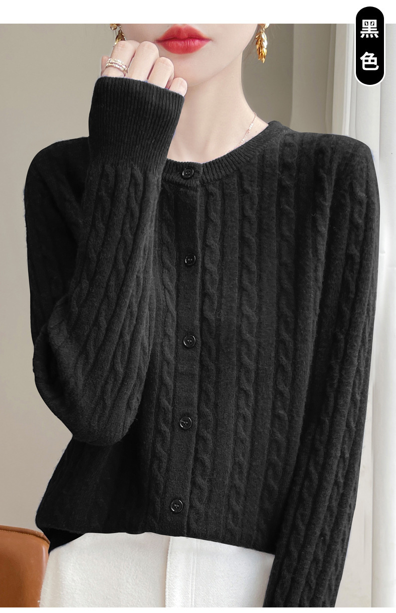 丁摩 春秋圆领针织衫女新款单排扣外套纯色麻花开衫洋气毛衣外搭5ZF-1267
