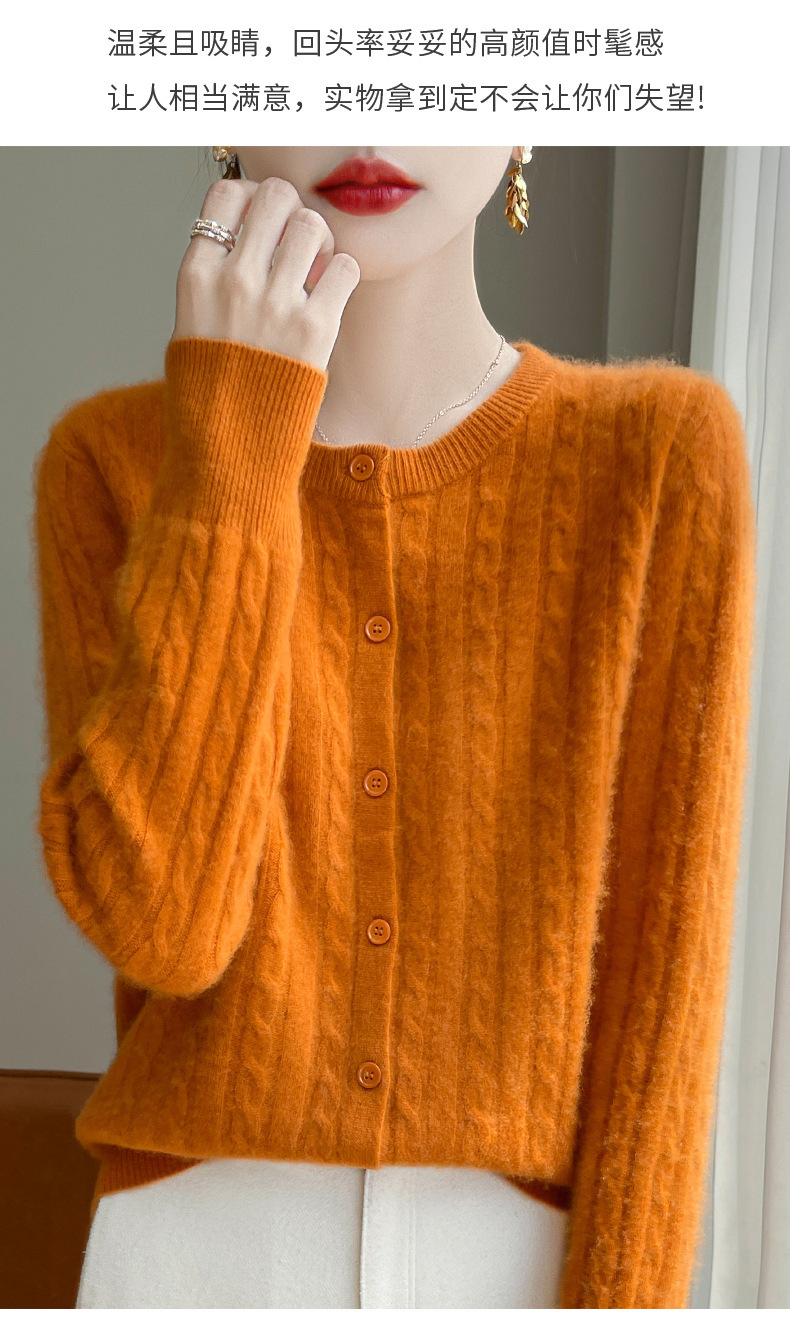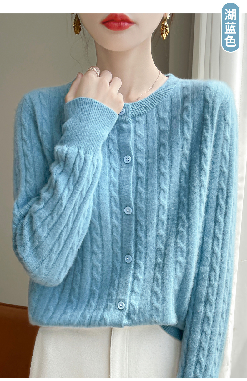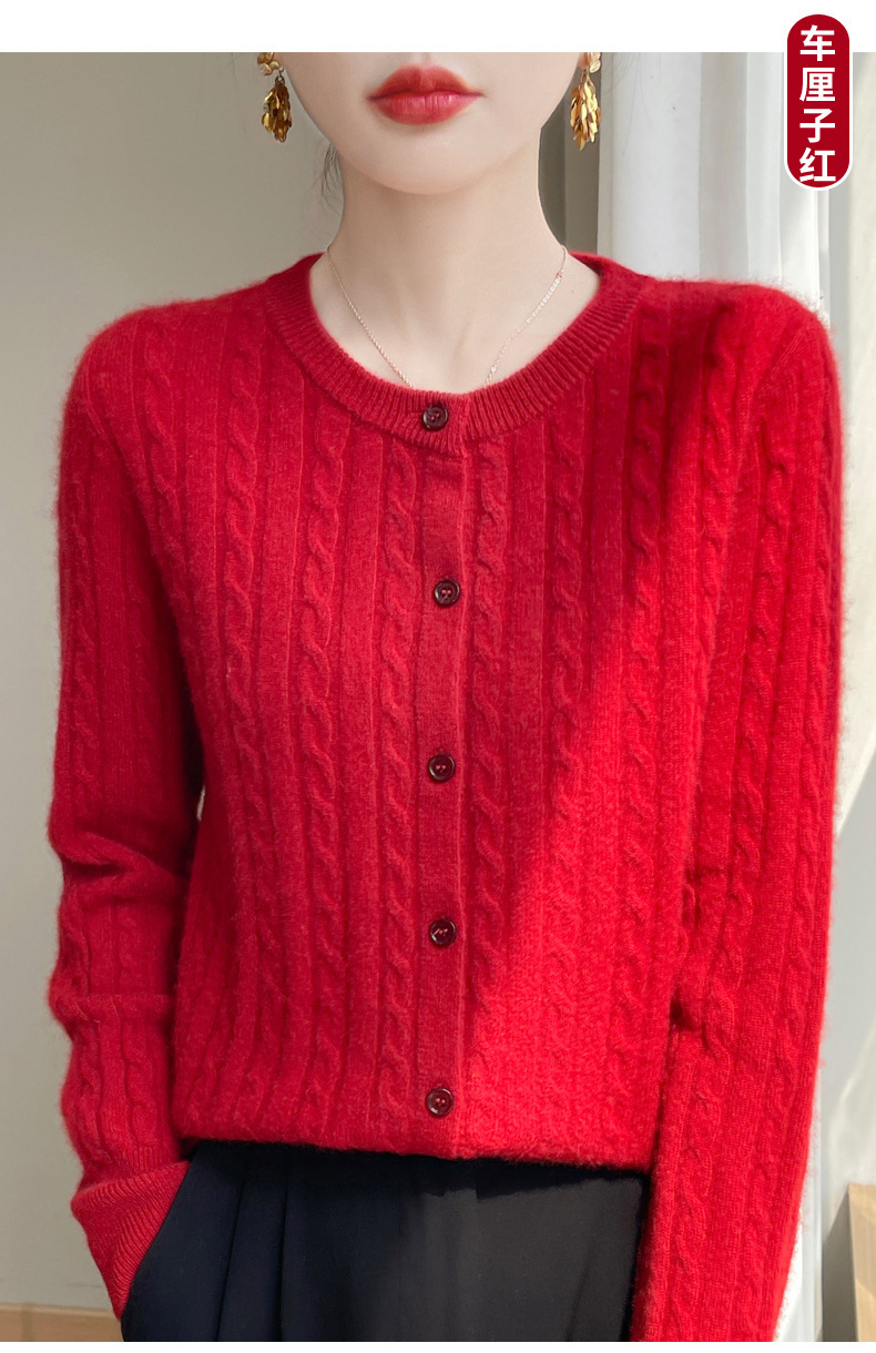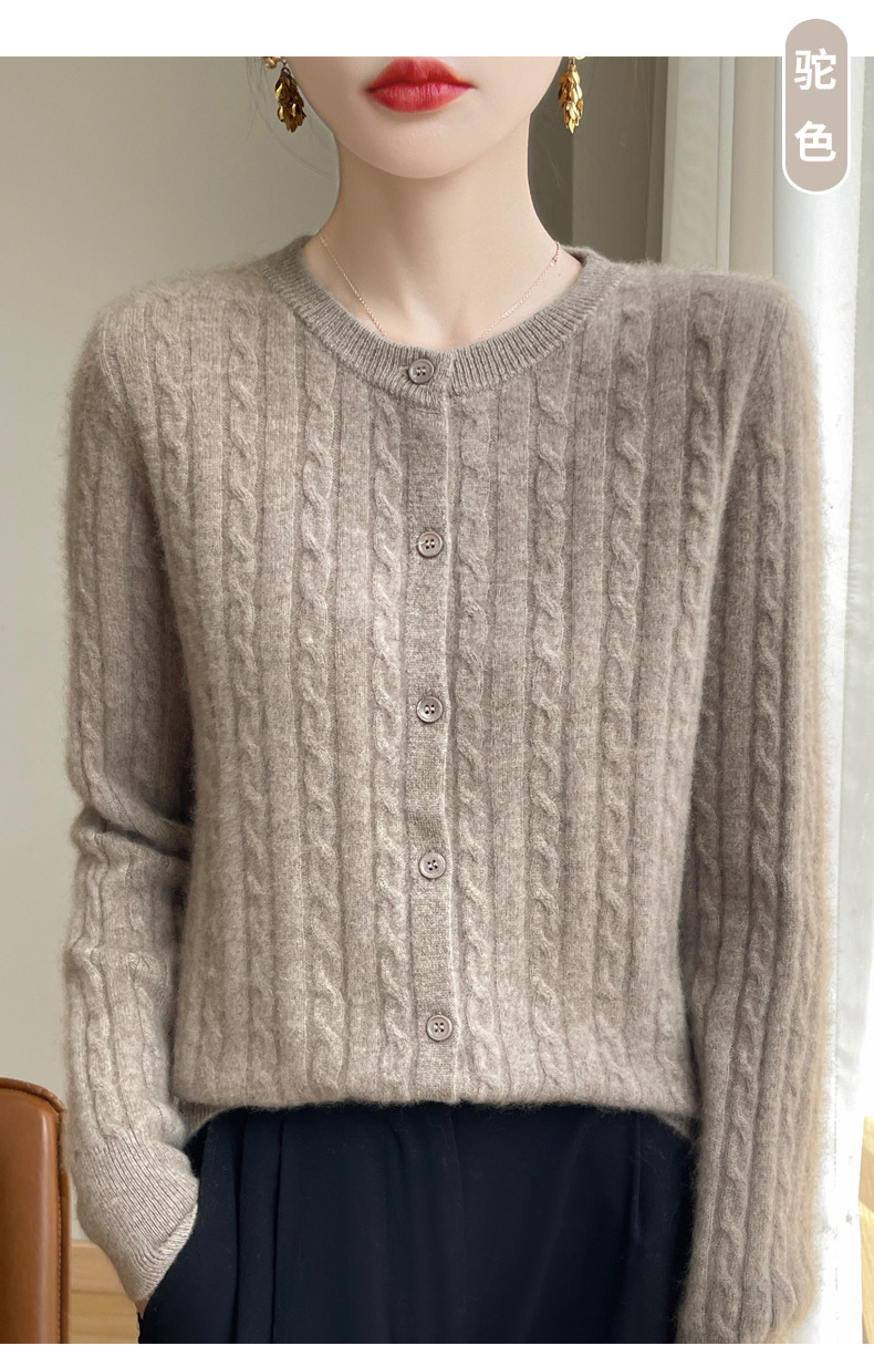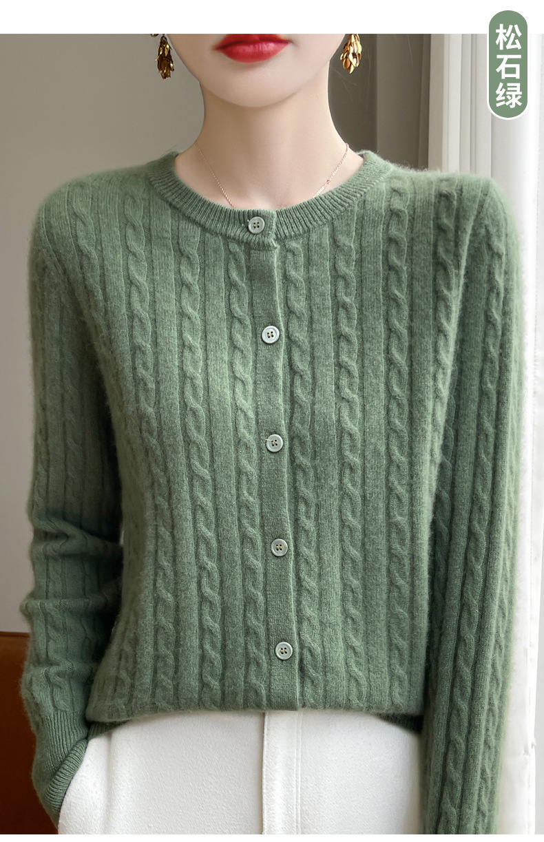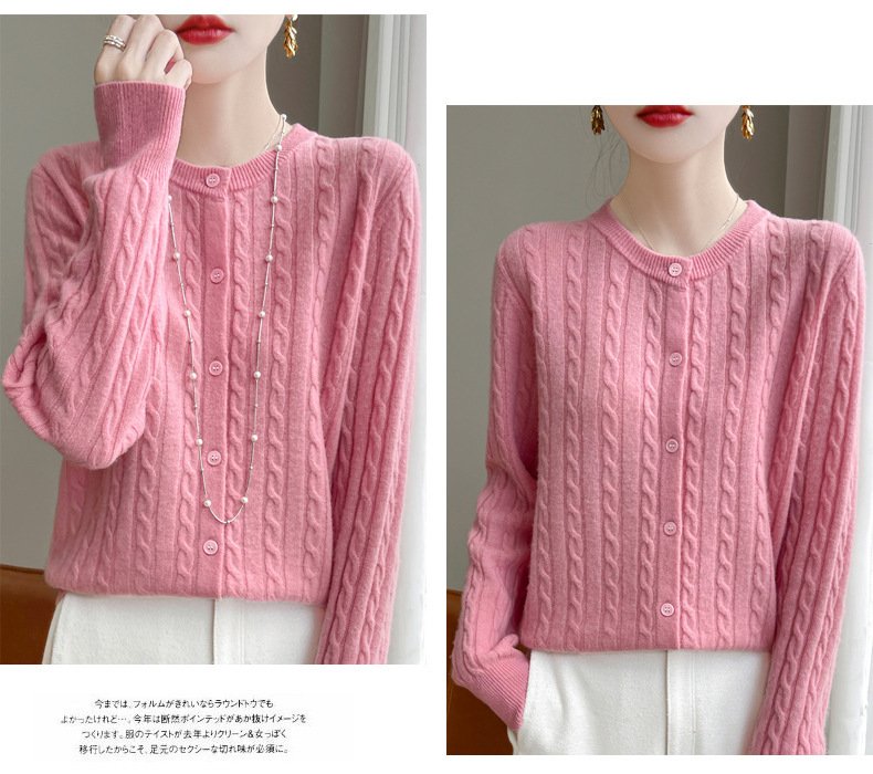 丁摩 春秋圆领针织衫女新款单排扣外套纯色麻花开衫洋气毛衣外搭5ZF-1267