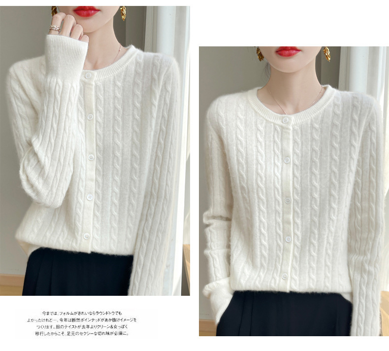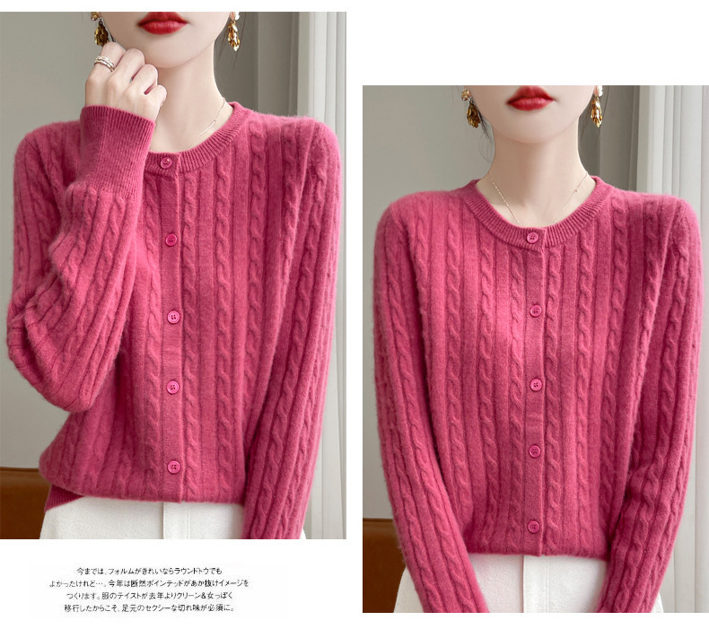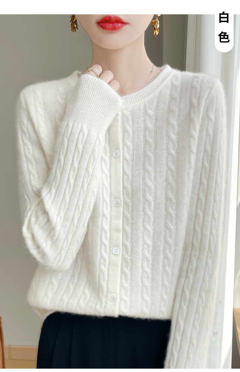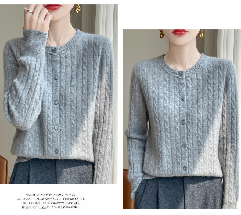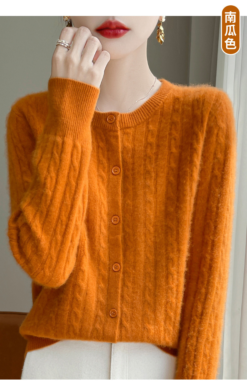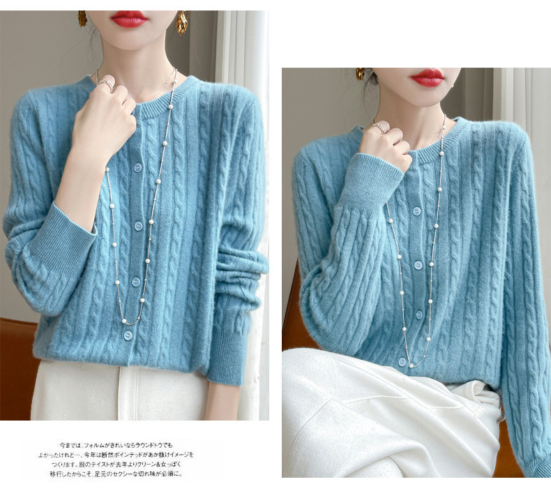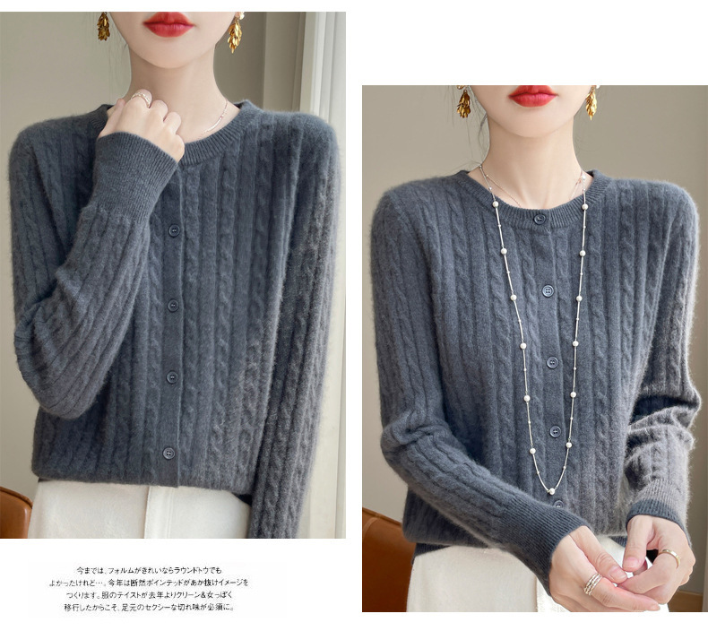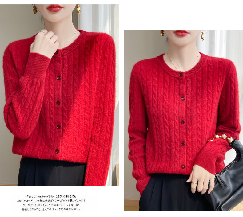 丁摩 春秋圆领针织衫女新款单排扣外套纯色麻花开衫洋气毛衣外搭5ZF-1267