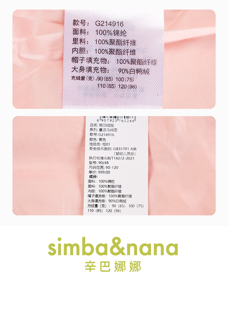 【辛巴娜娜】simbanana女宝宝羽绒服女童白鸭绒保暖蓬松外套