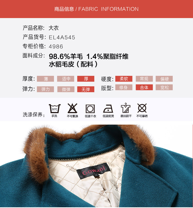 乔万尼修身保暖大码羊毛呢外套EL4A545