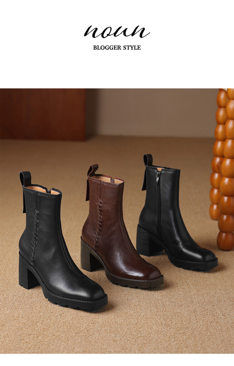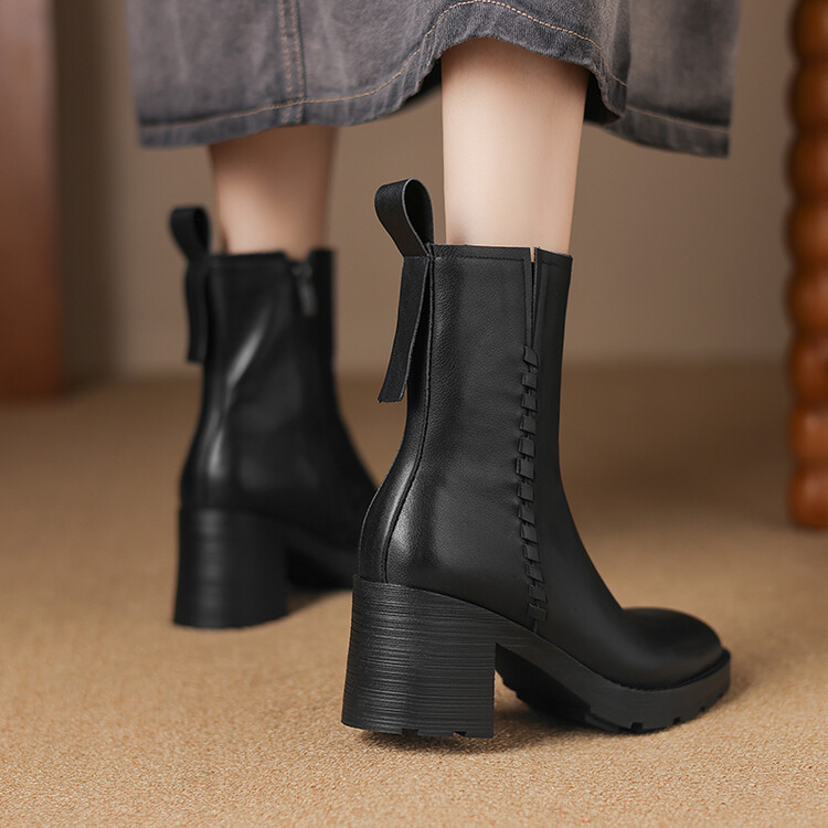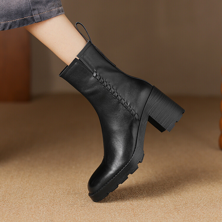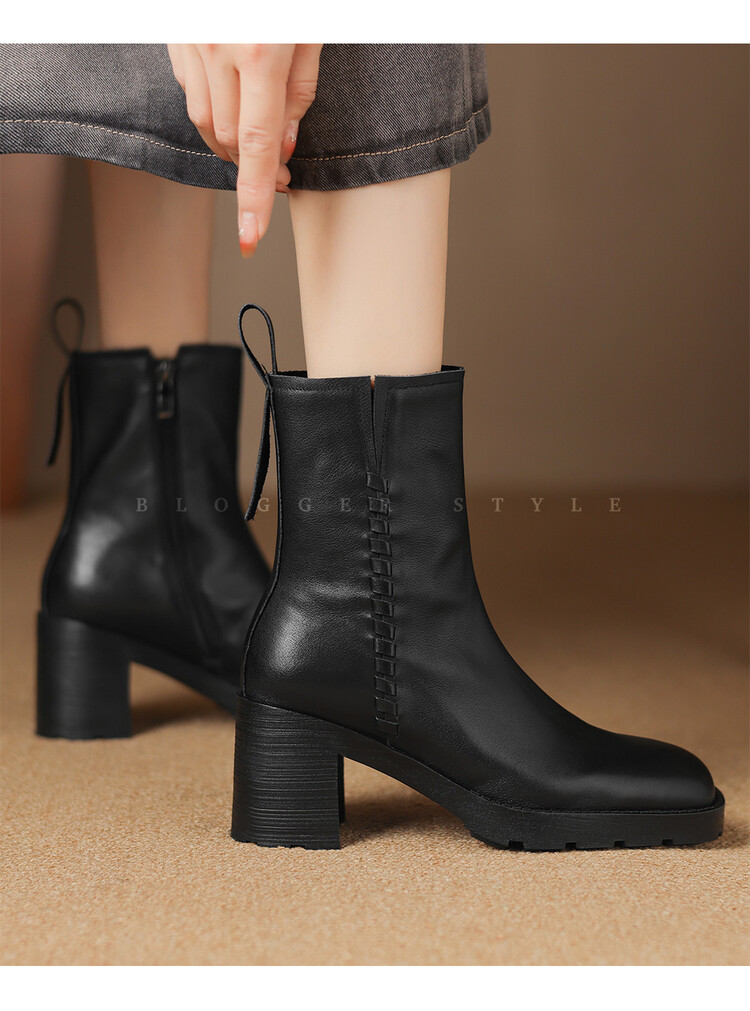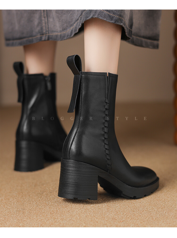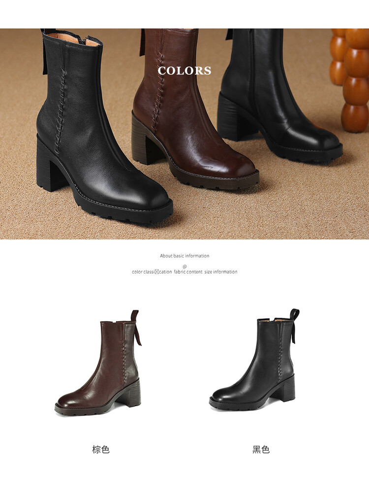 【预售5天】小个子厚底马丁靴女真皮粗跟瘦瘦靴秋冬新款防水台高跟时装靴GP&2976
