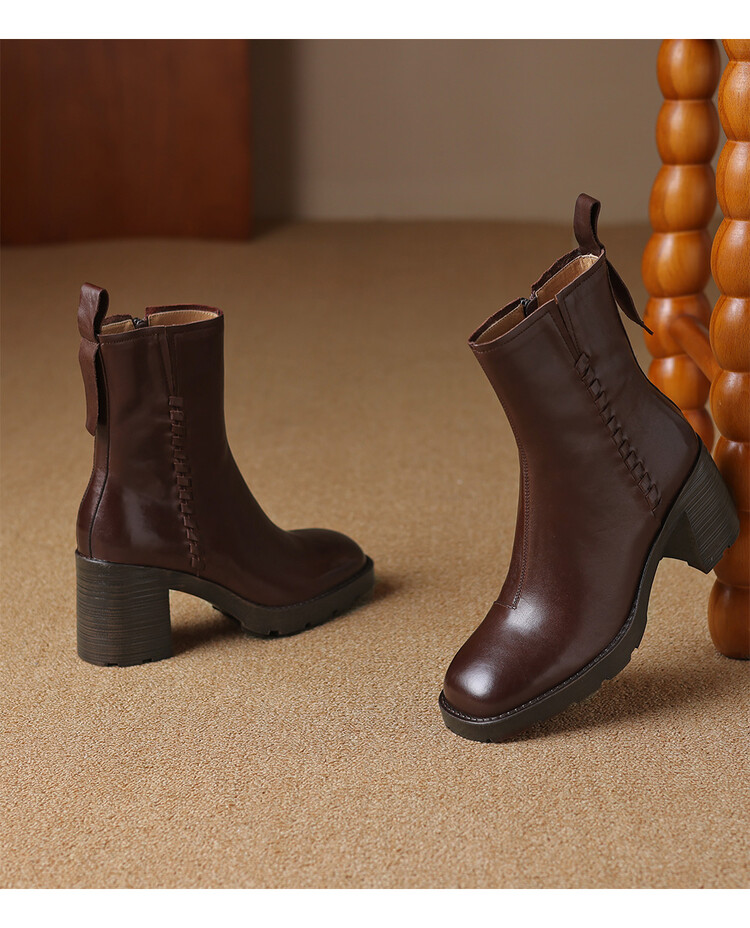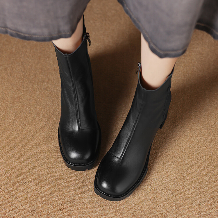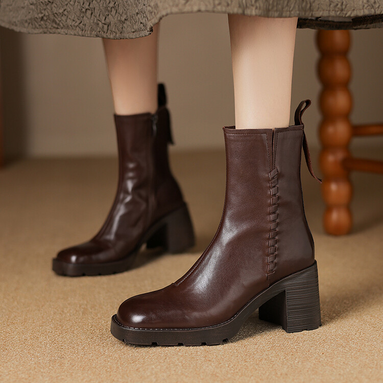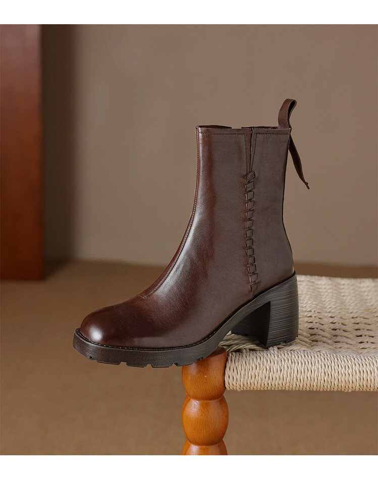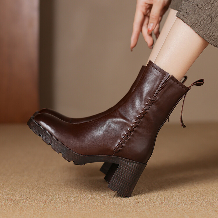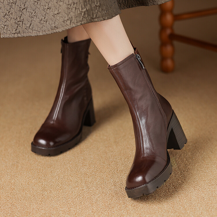 【预售5天】小个子厚底马丁靴女真皮粗跟瘦瘦靴秋冬新款防水台高跟时装靴GP&2976