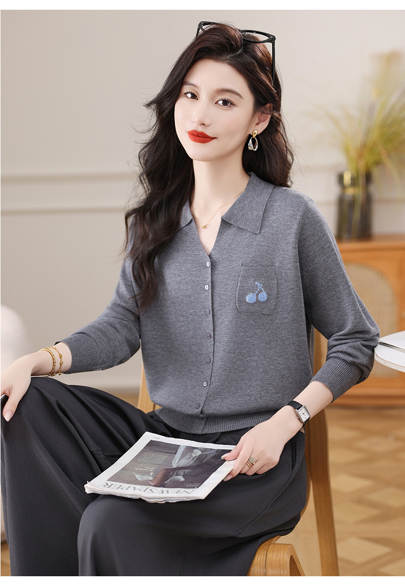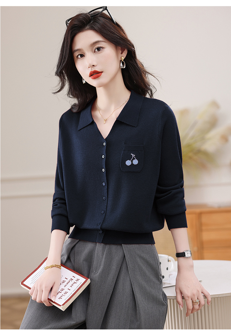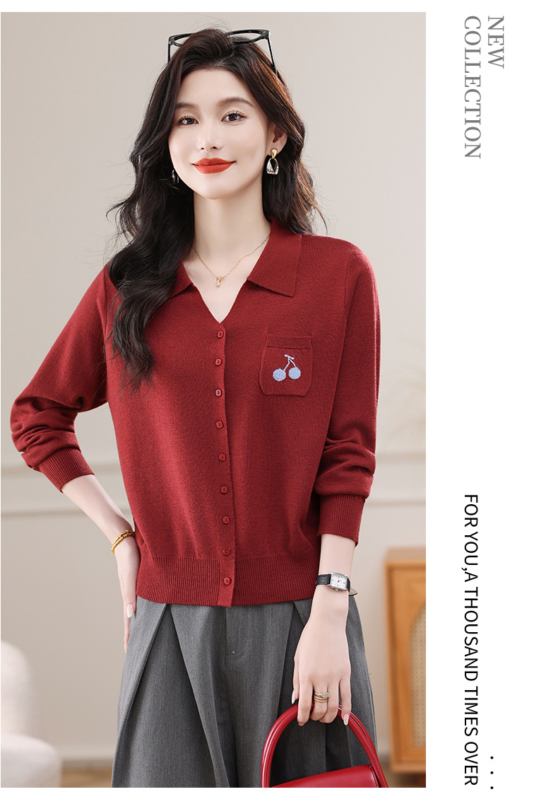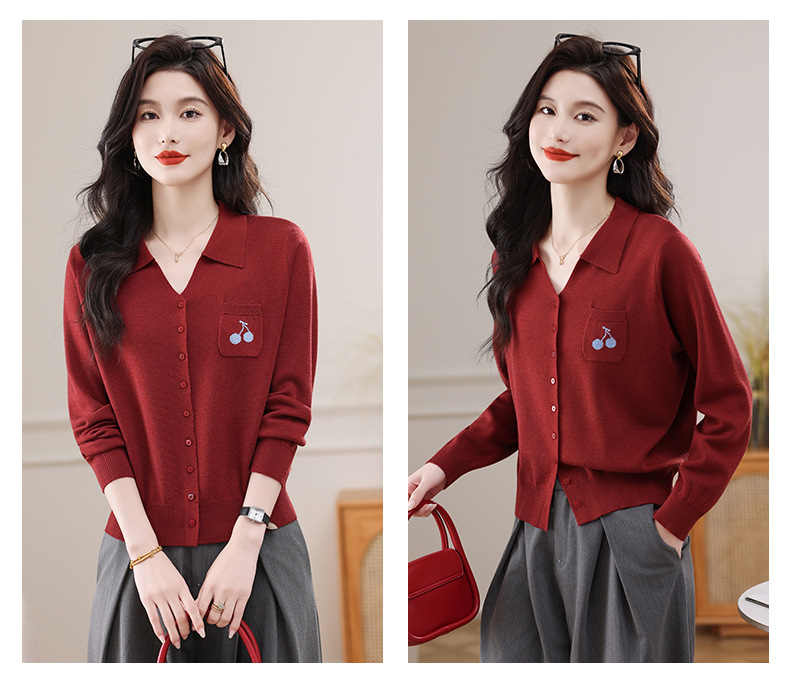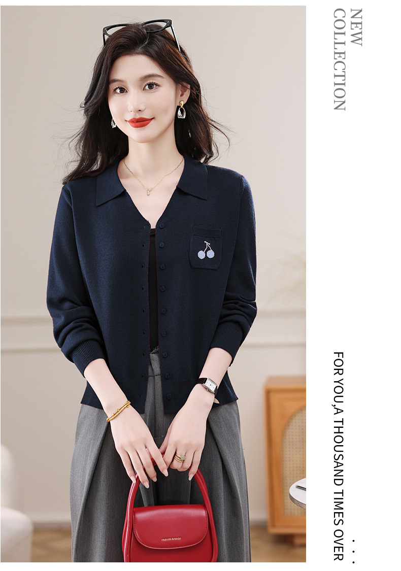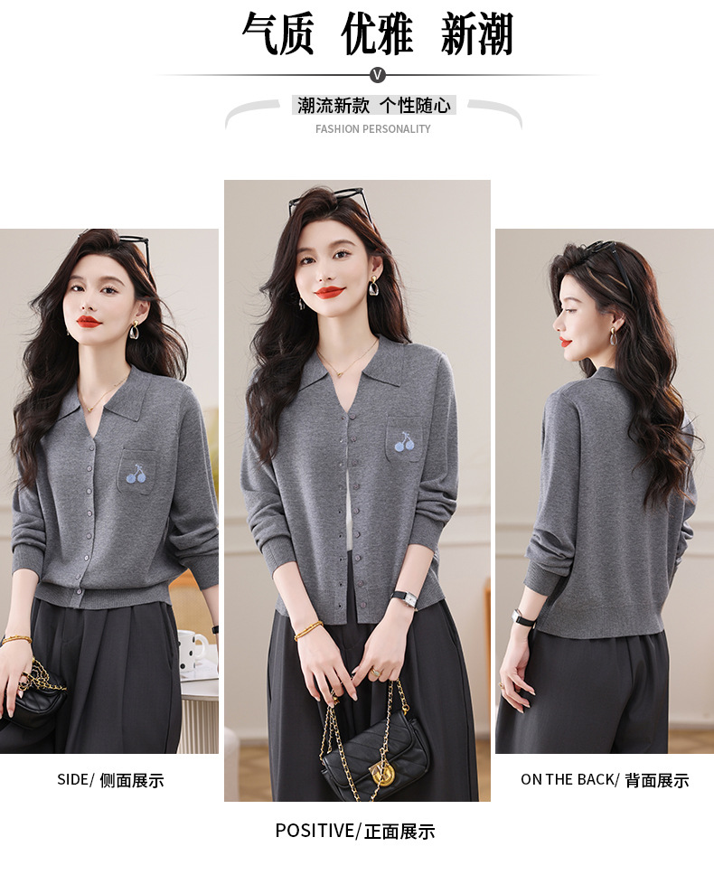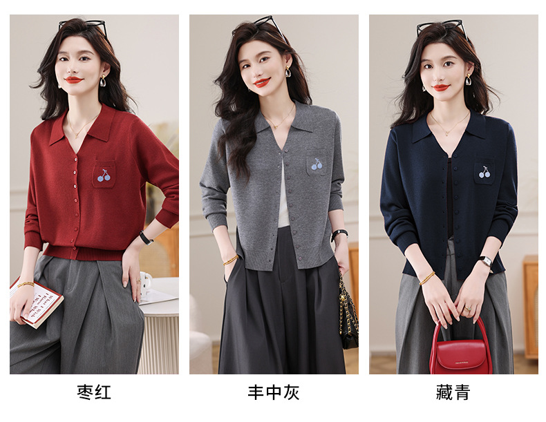 雀说气质外套短款洋气毛衣新款翻领针织上衣外搭洋气AL3009