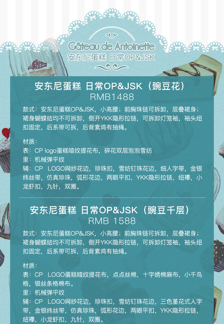 【再贩,全款预售】安东尼蛋糕日常OP 豌豆花 / 豌豆千层 古典玩偶 Lolita【2024年7月31日起发货】