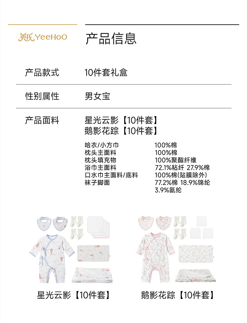英氏婴儿礼盒新生儿见面礼出生套装送礼10件装宝宝满月礼物四季款