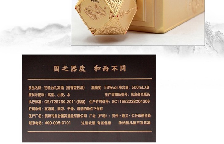【推荐】53°钓鱼台礼宾酒(京)酱香型礼盒组合装500ml*8瓶