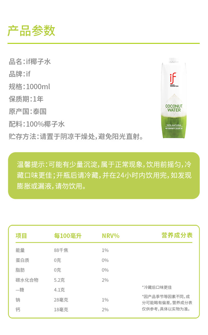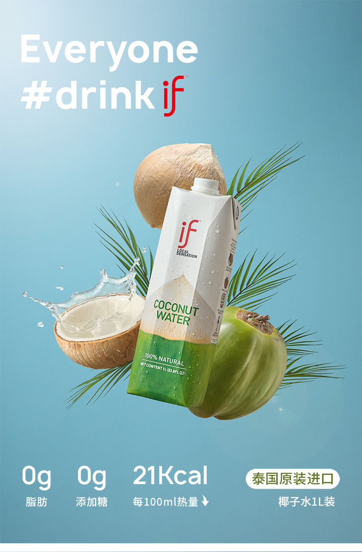 1Lif椰子水1L 1L大瓶家庭装 100%椰子水 补充电解质