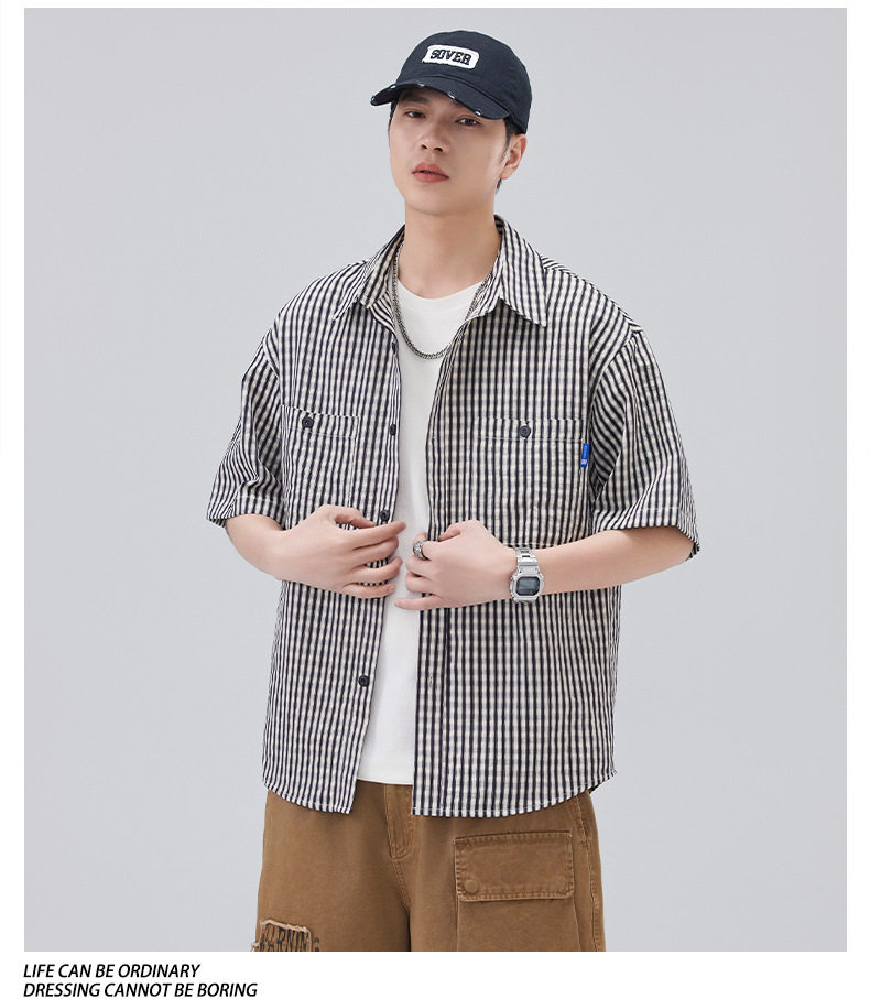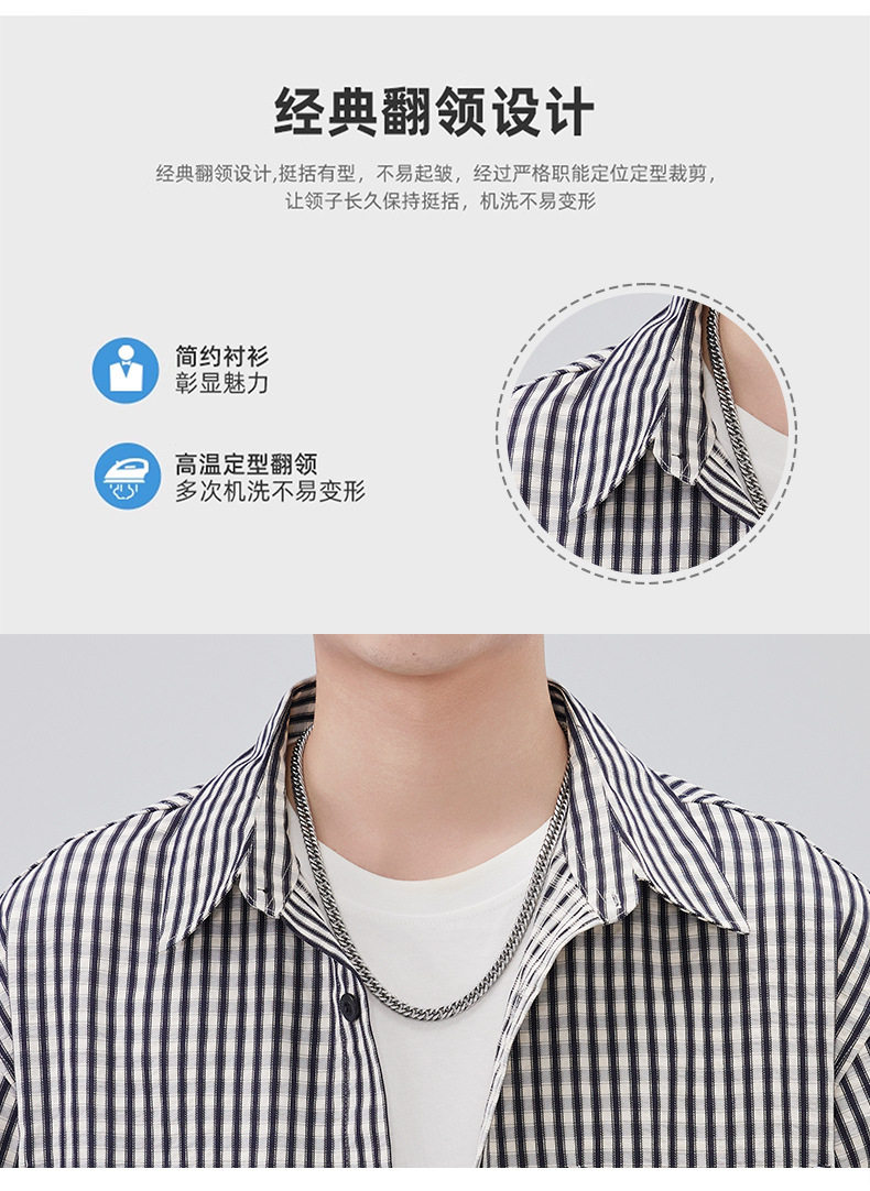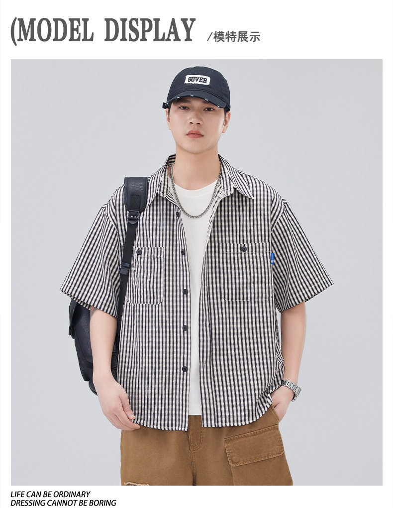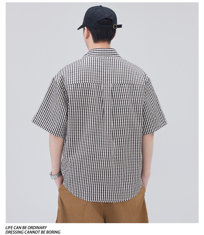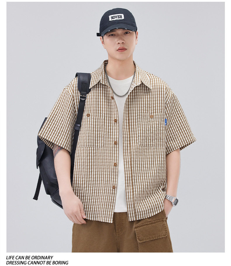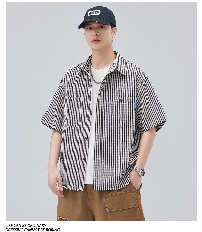 新品港风复古条纹衬衫夏季男款潮牌短袖衬衣宽松休闲上衣 AY-D1318【AY-1318】
