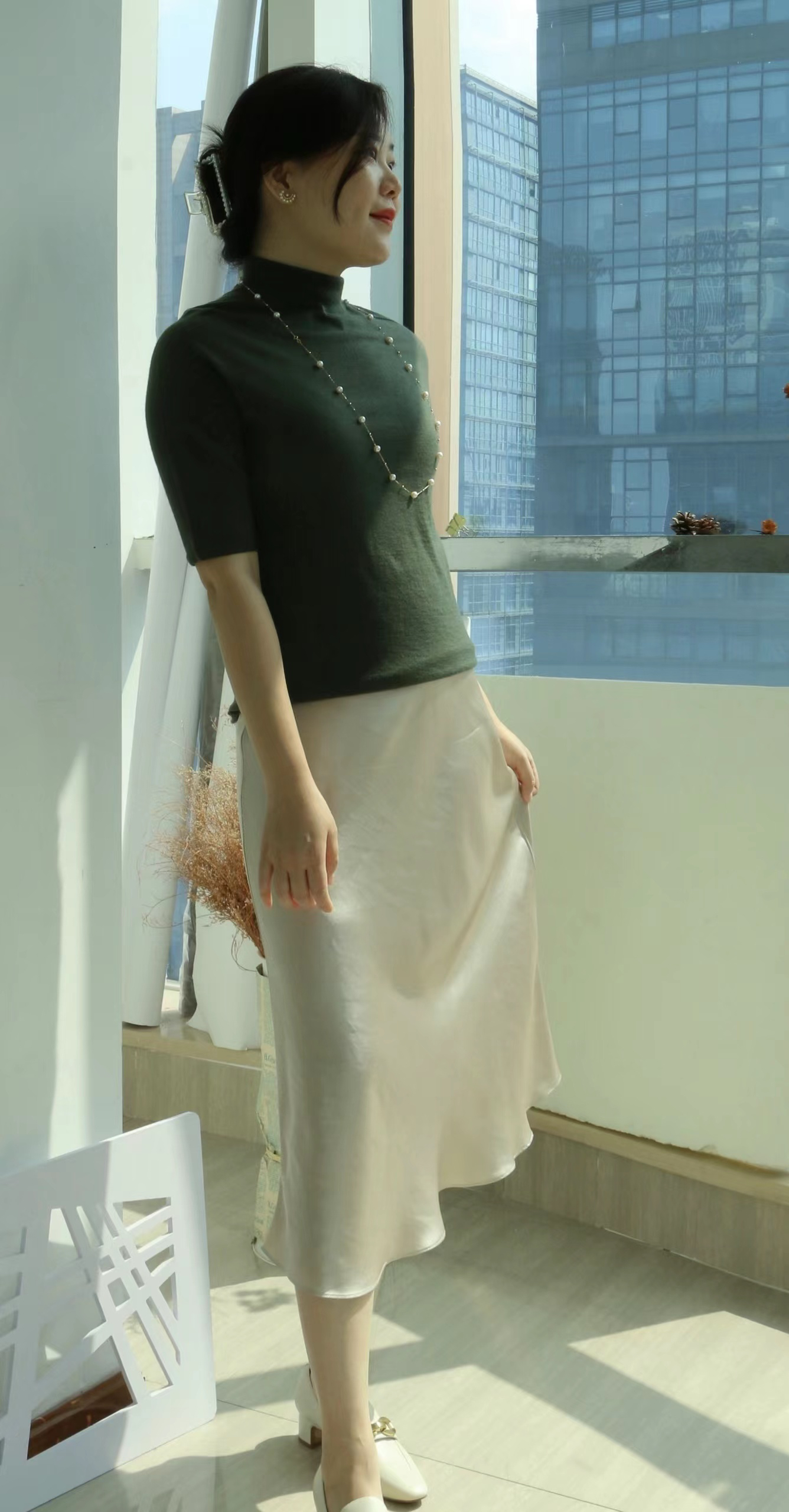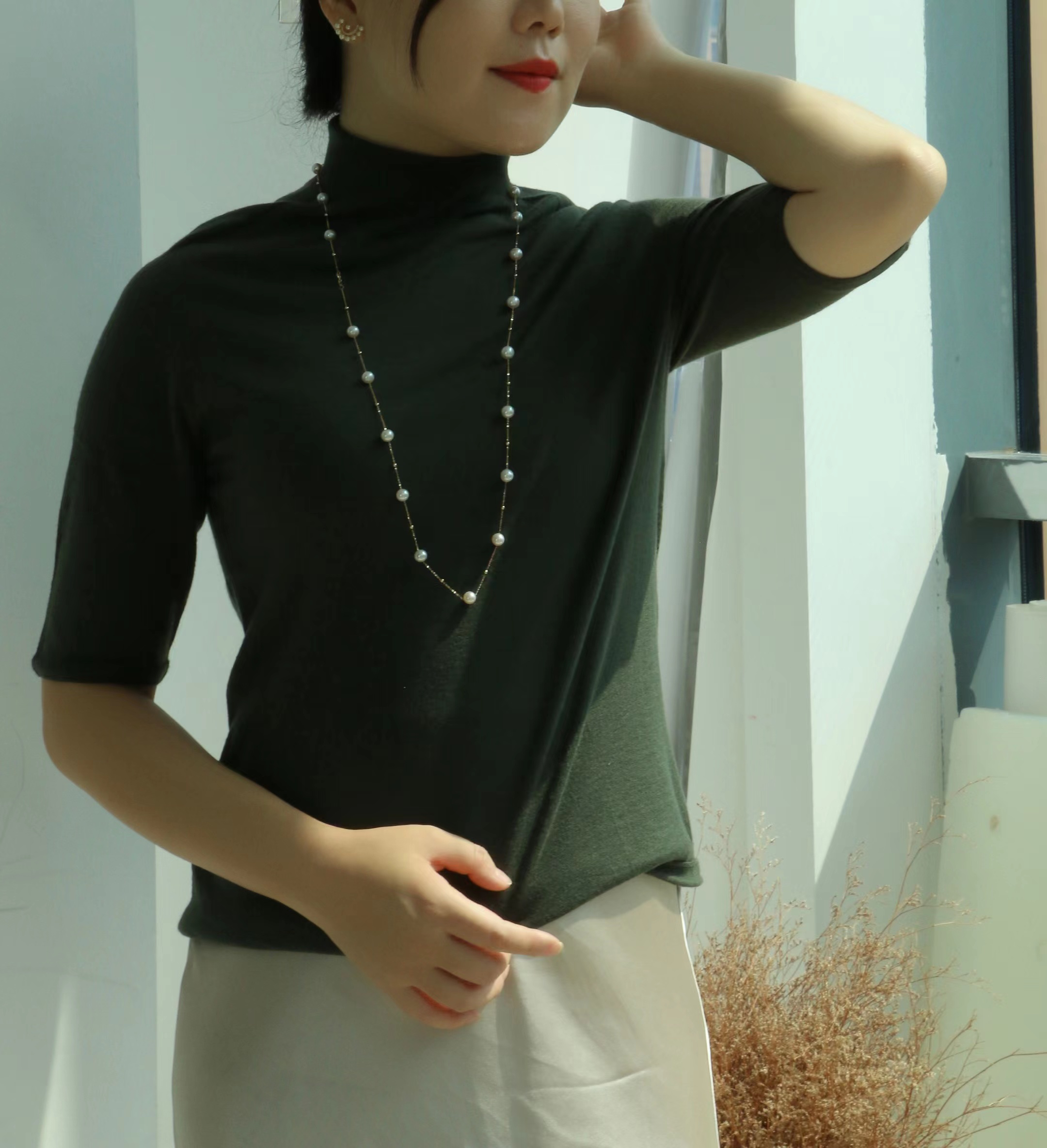 【à perles】四色半高领羊绒桑蚕丝混纺中袖打底衫【3-5个工作日】