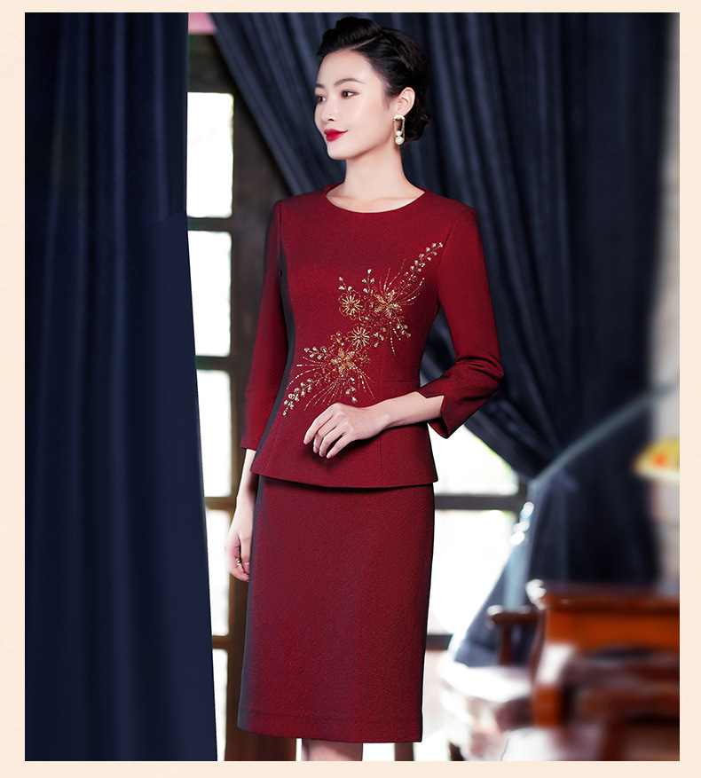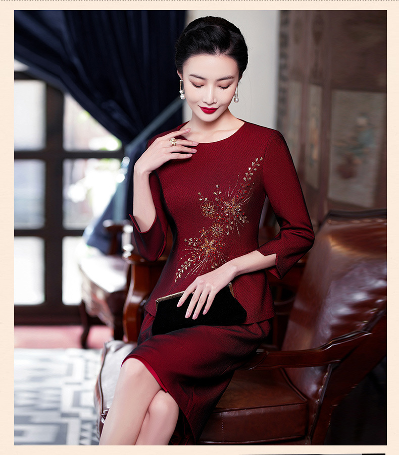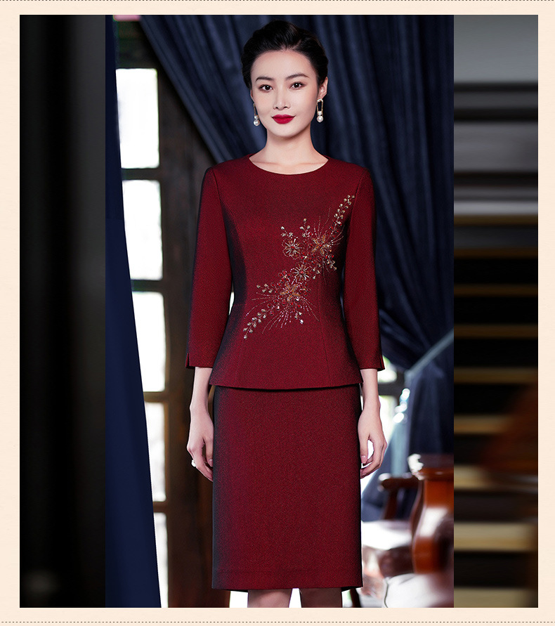 MLY-60889秋季新款年轻款喜婆婆婚宴装结婚礼服红色套装