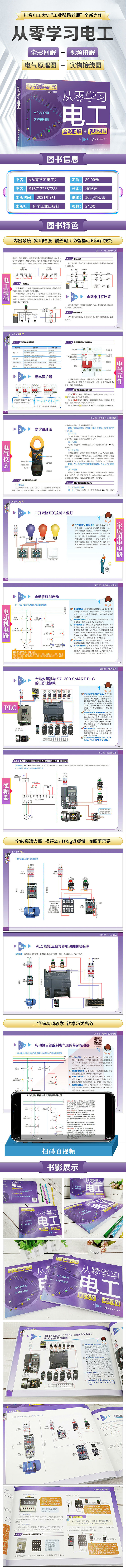 《从零学习电工》是笔者在总结电工现场操作经验和教学实践的基础上编写而成的。本书选取了大量电工电路示例进行重点介绍,这些电工电路有的是生活中经常使用的,有的是近年来出现的新型控制电路。每个示例都有其自身的特点,各个示例之间又互为补充。读者既可以单独选读,也可以由前至后、由浅入深地进行系统学习。如果你是初学者,建议通读全书,同时配合书中提供的视频课程来学习。