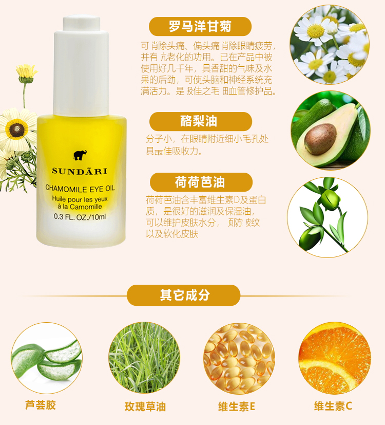 专柜318 和干纹say goodbye Sundari洋甘菊眼油眼部精华油淡化细纹10ml