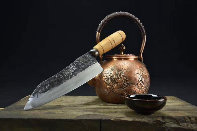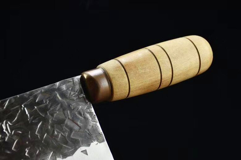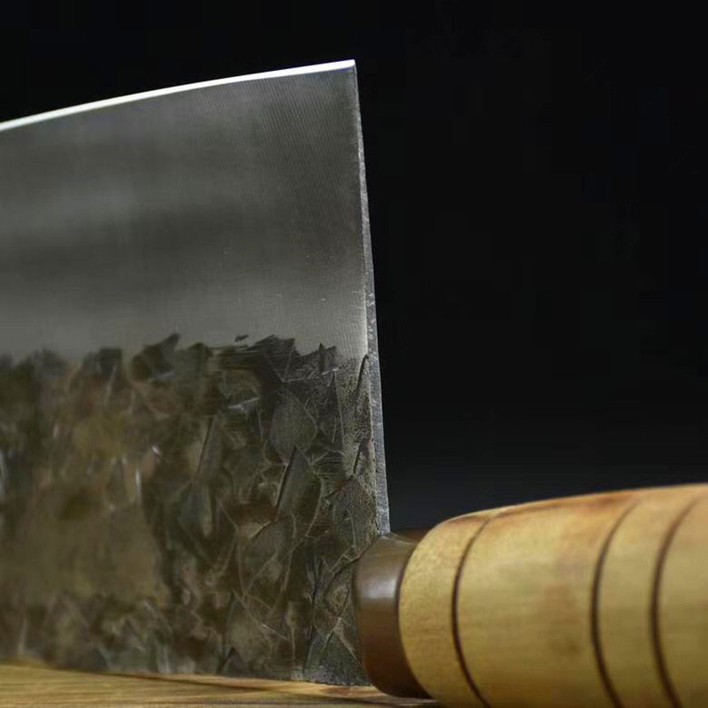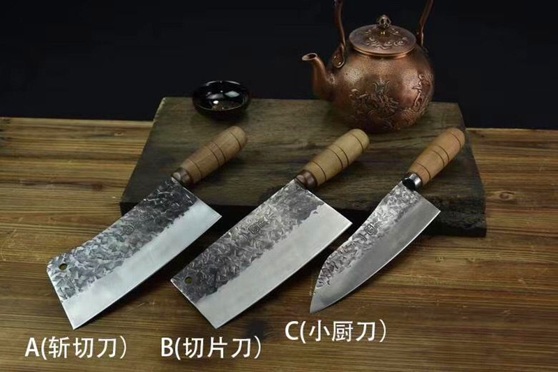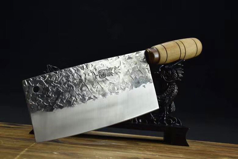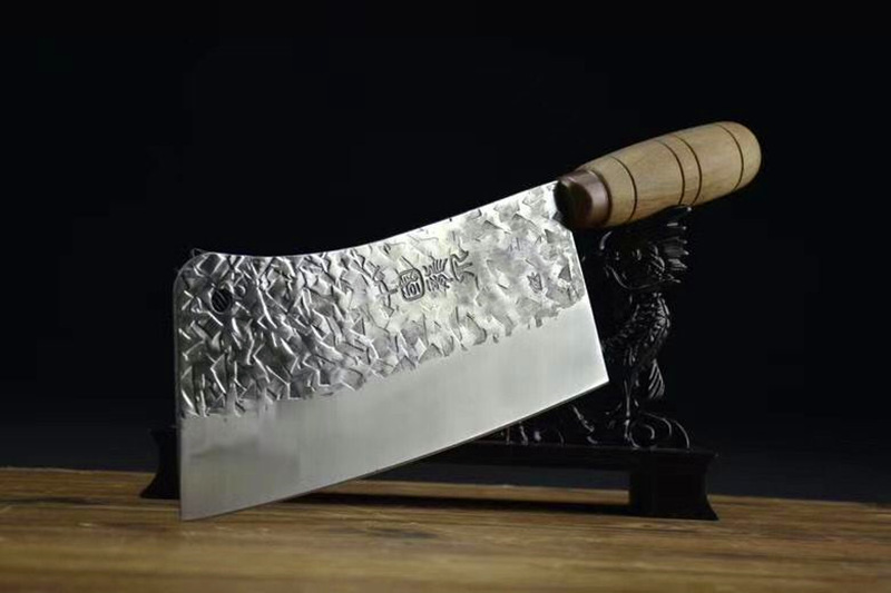 刃口锋利易打磨,刀片不易生锈,锻打面使切菜不粘刀 ,手柄采用人体手工学设计,酸枝木手柄,握感舒适牢固,防滑,切菜斩肉更轻松
