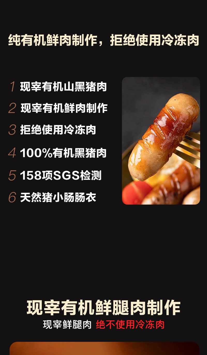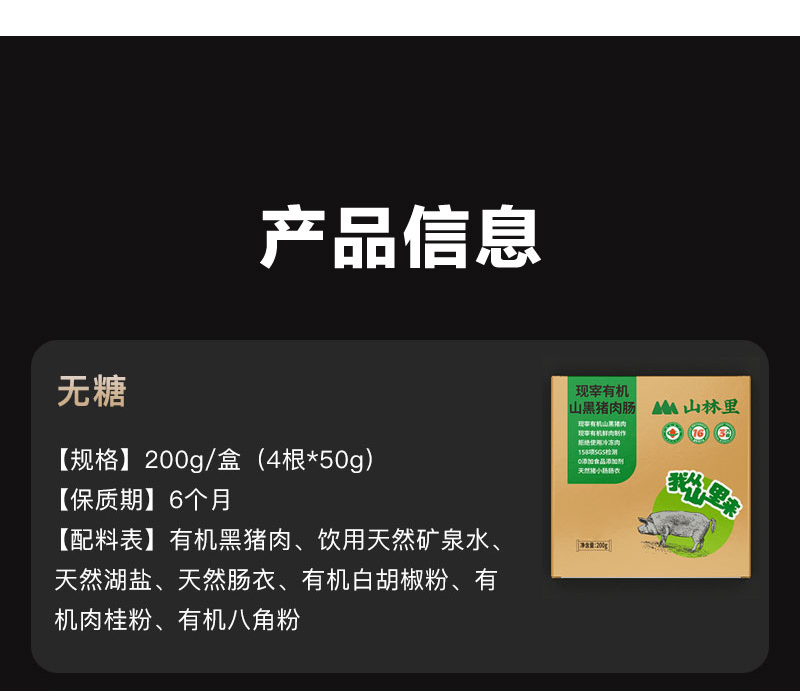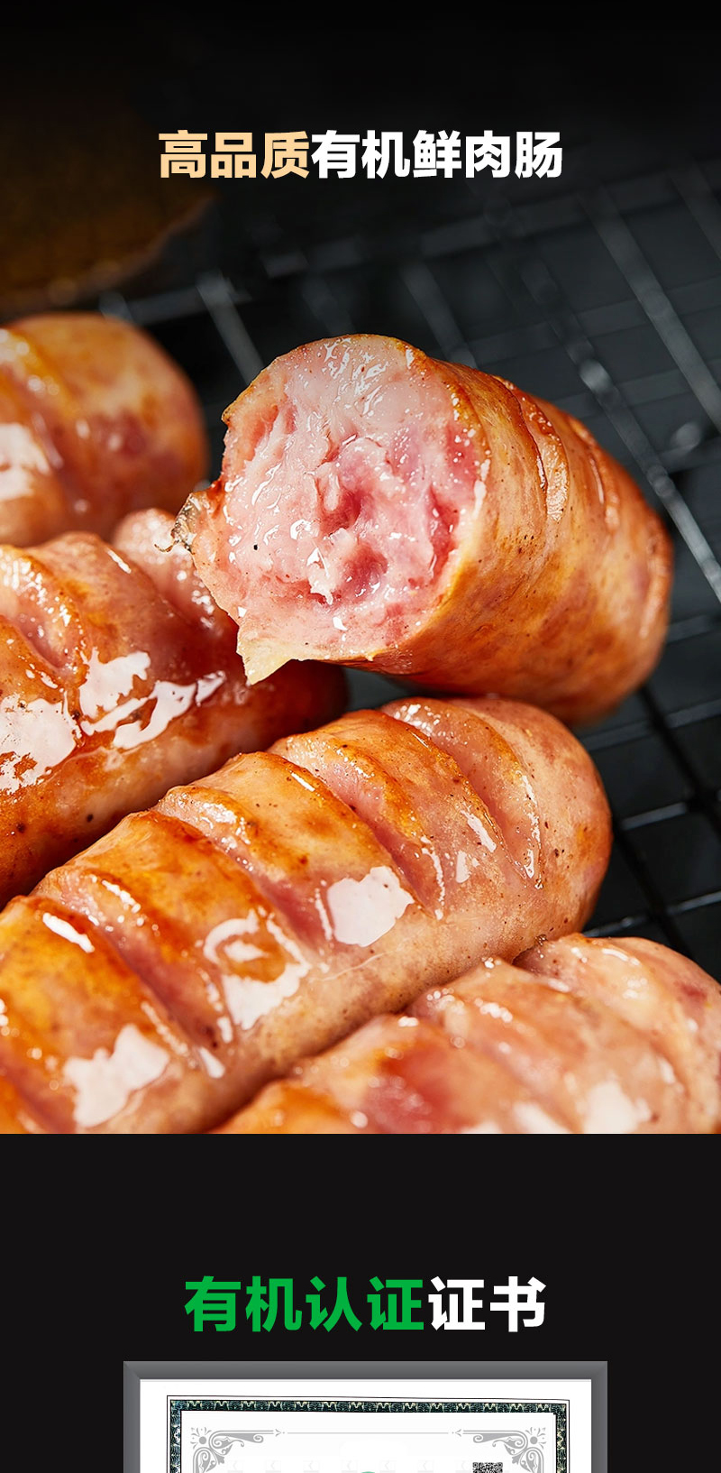 【山林里】有机鲜肉肠(无糖),158项SGS检测,二肥八瘦,有机认证香肠猪肉肠