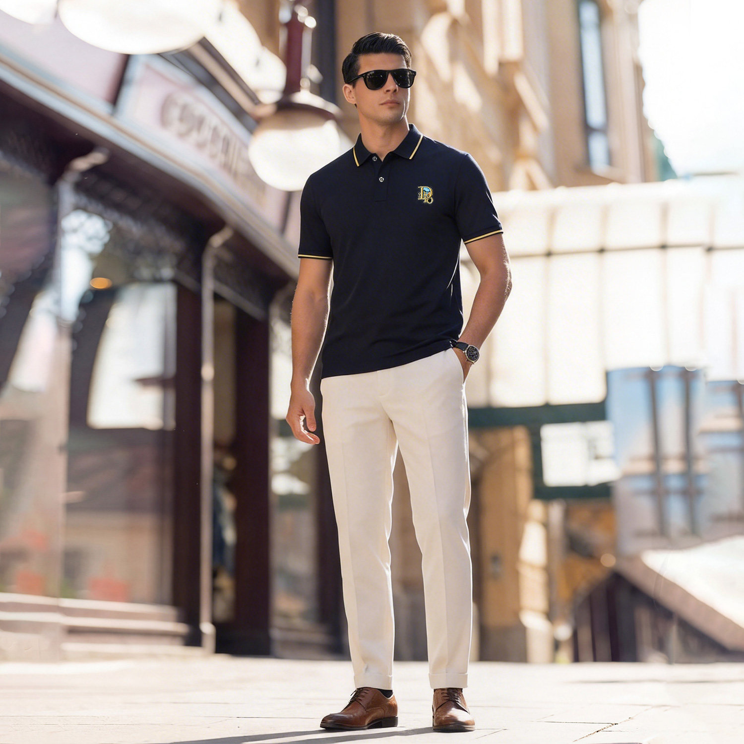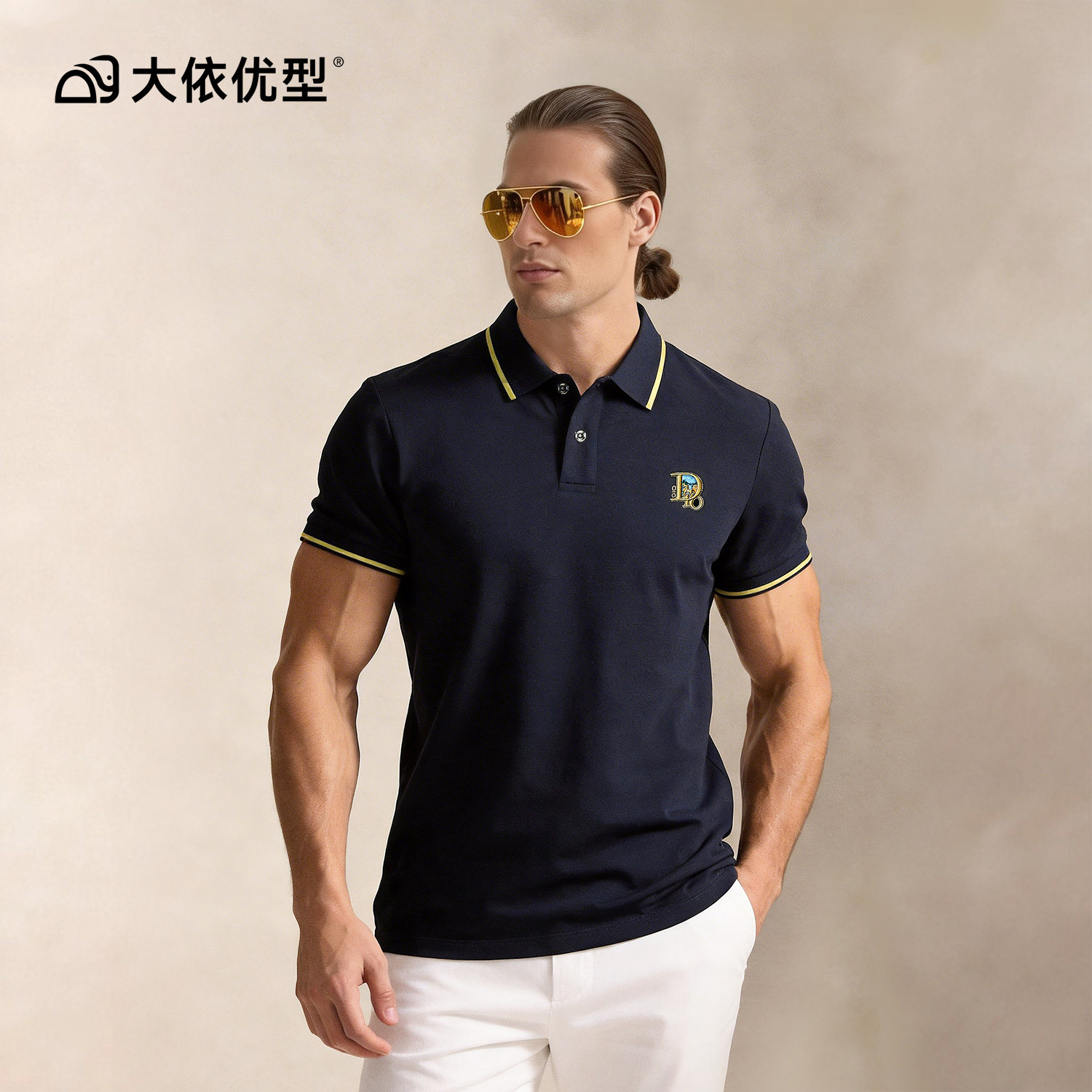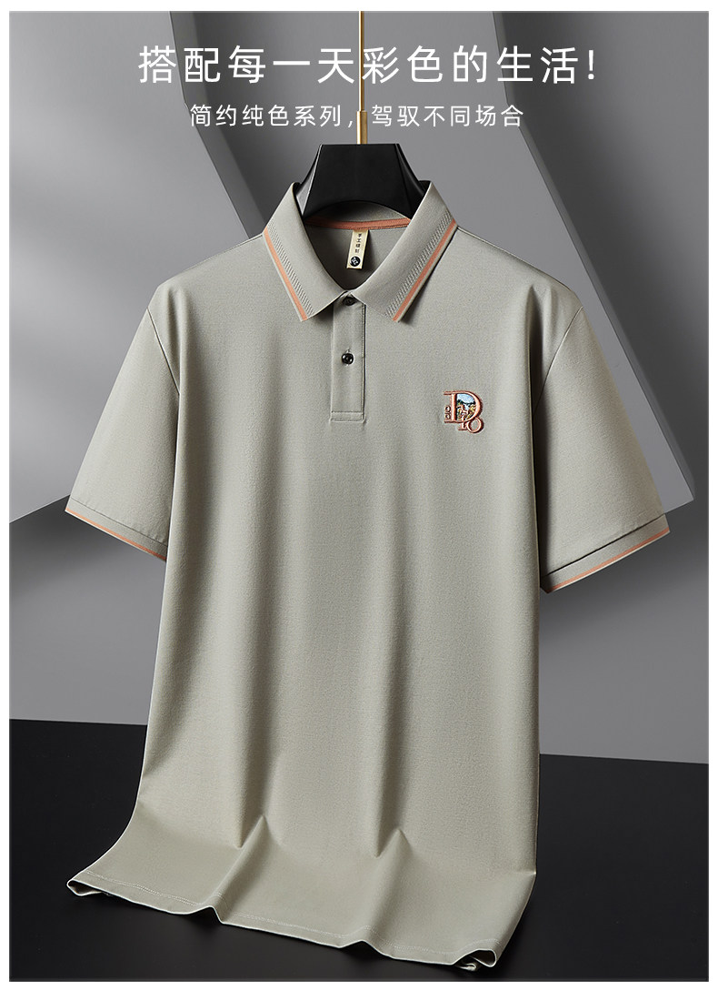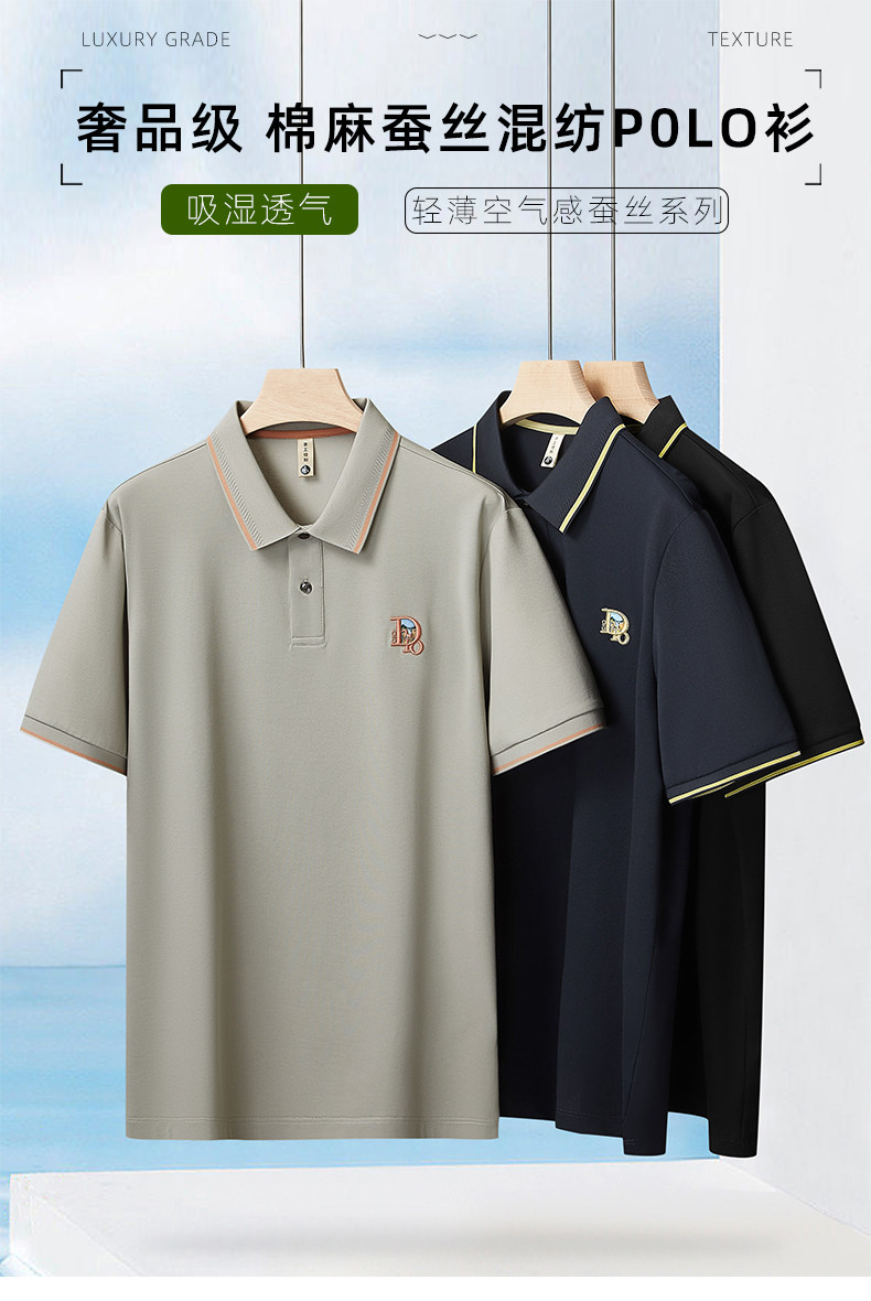 【DG】【桑蚕丝+亚麻】大依优型大码男装夏季亚麻棉POLO衫短袖商务休闲上衣