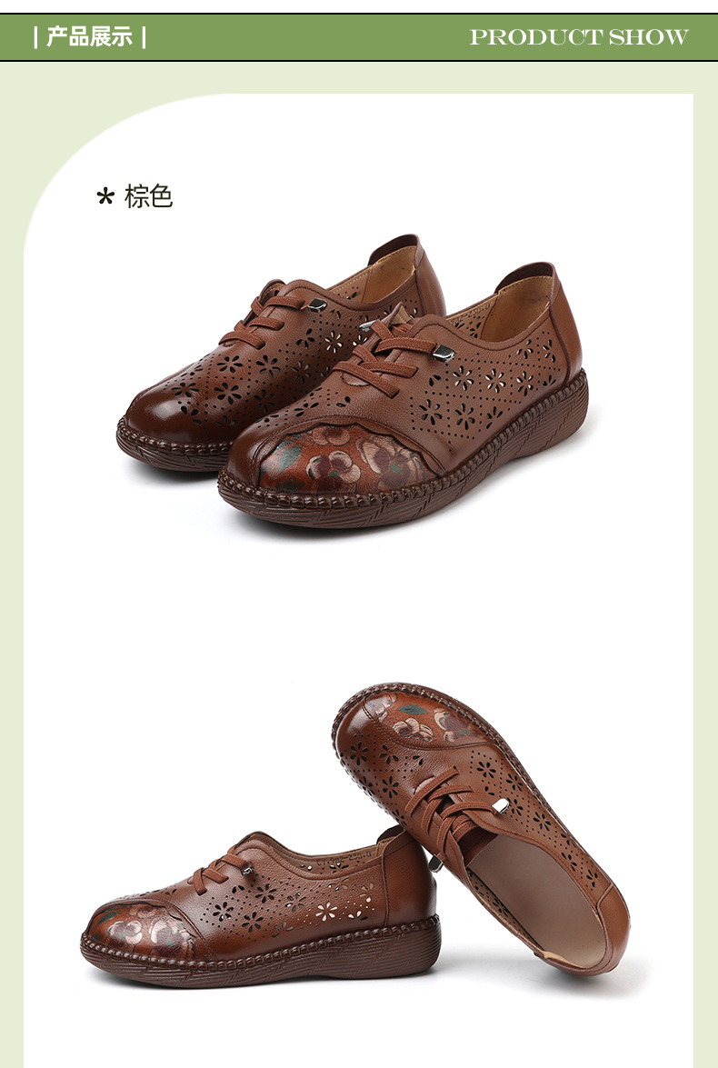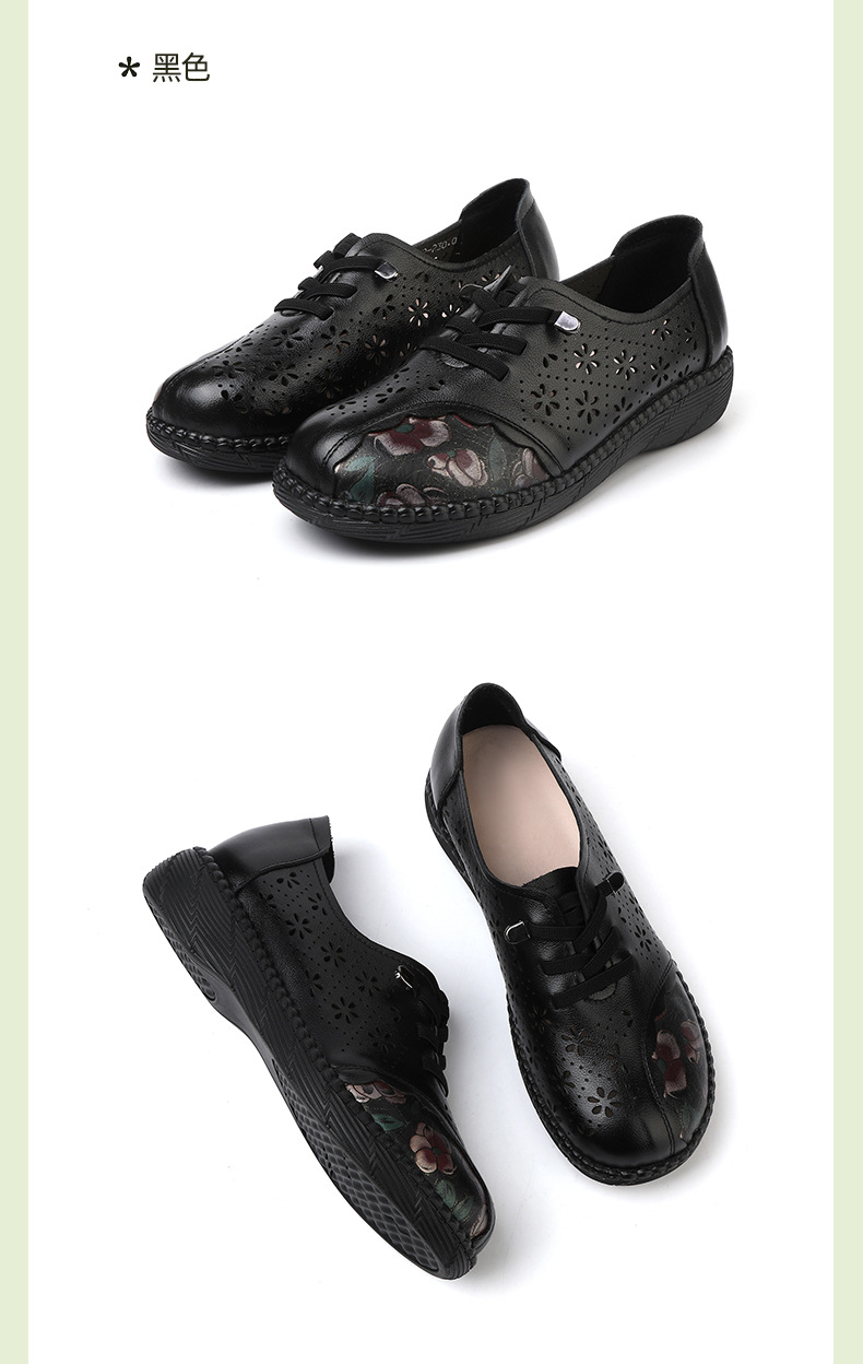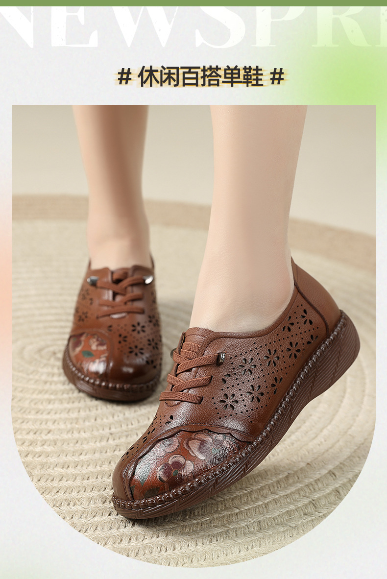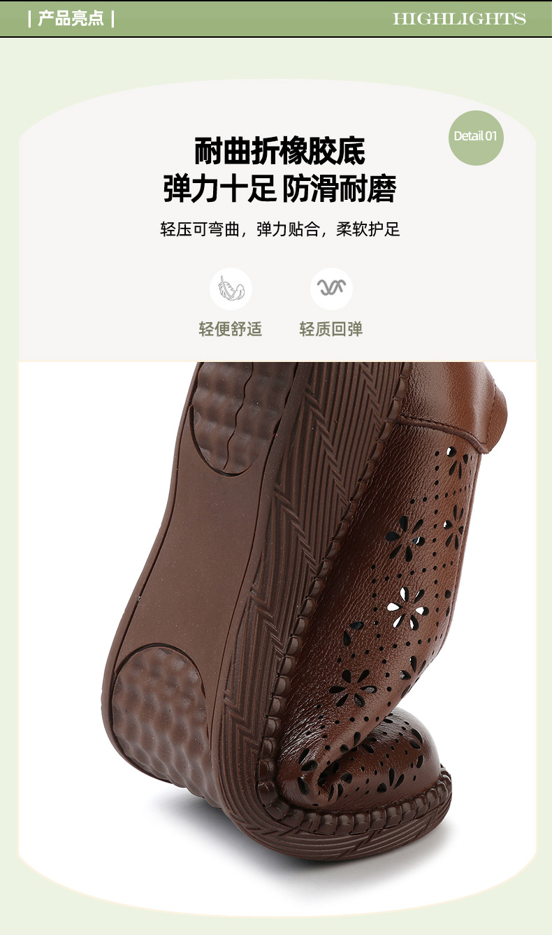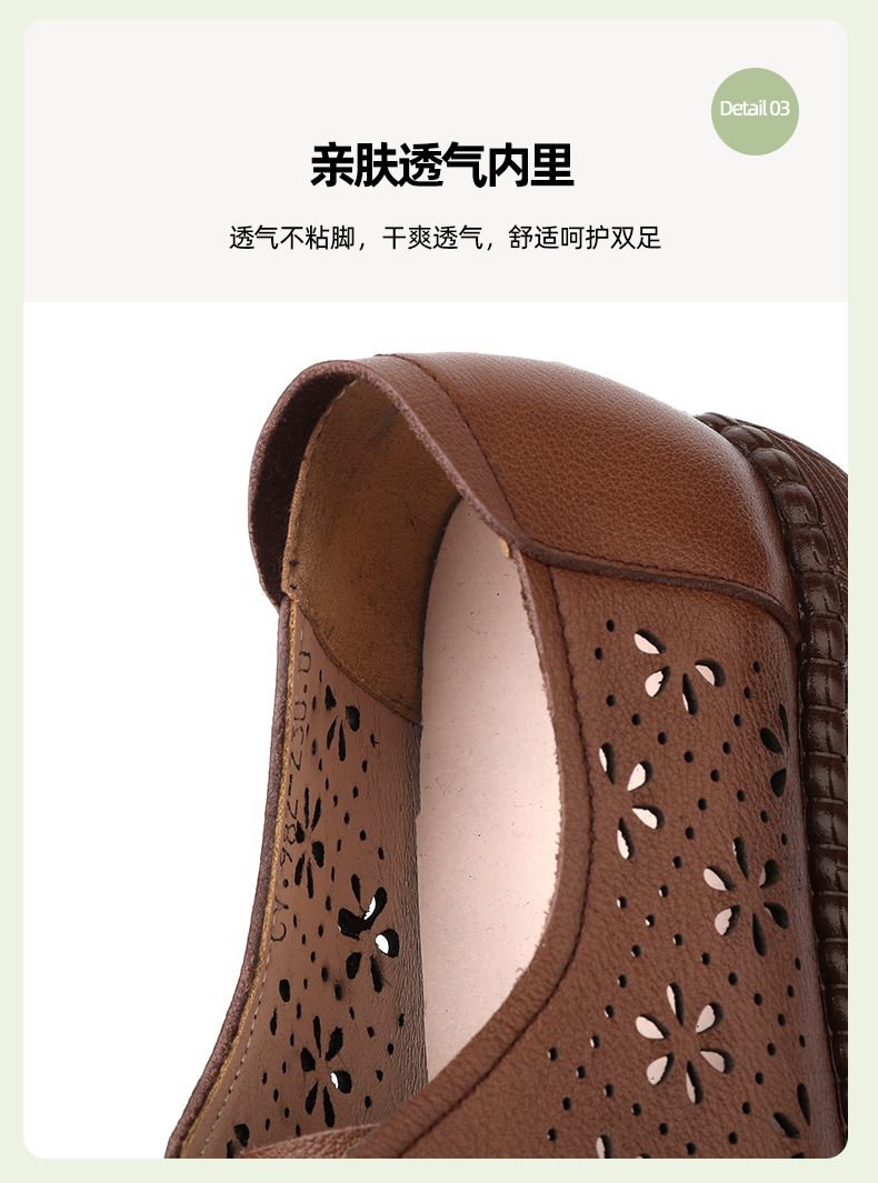 雀说新款女鞋软底不累脚头层牛皮平底百搭镂空厚底洞洞凉鞋AL982