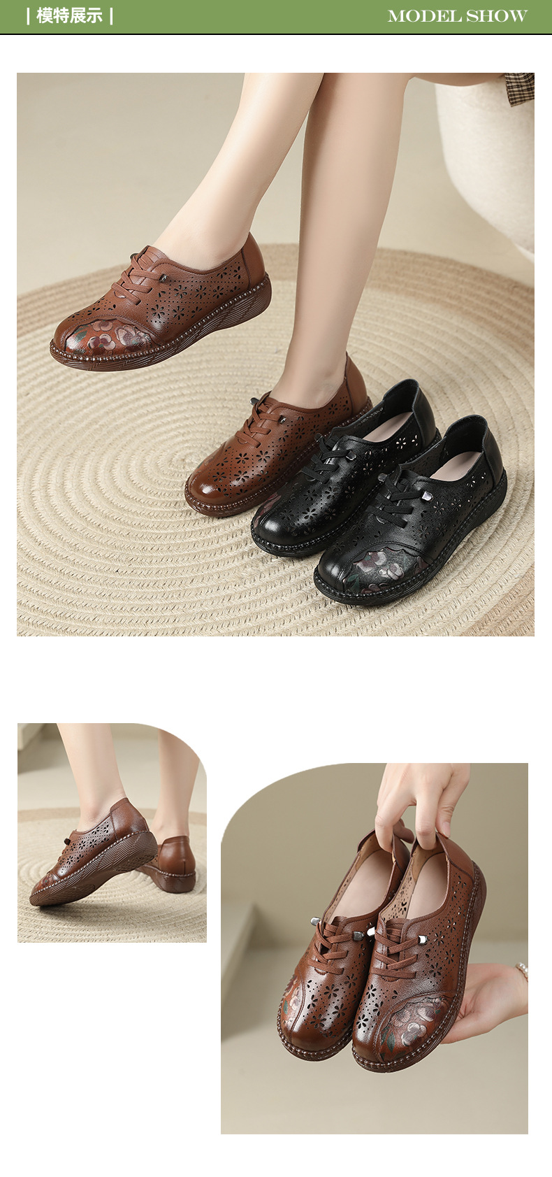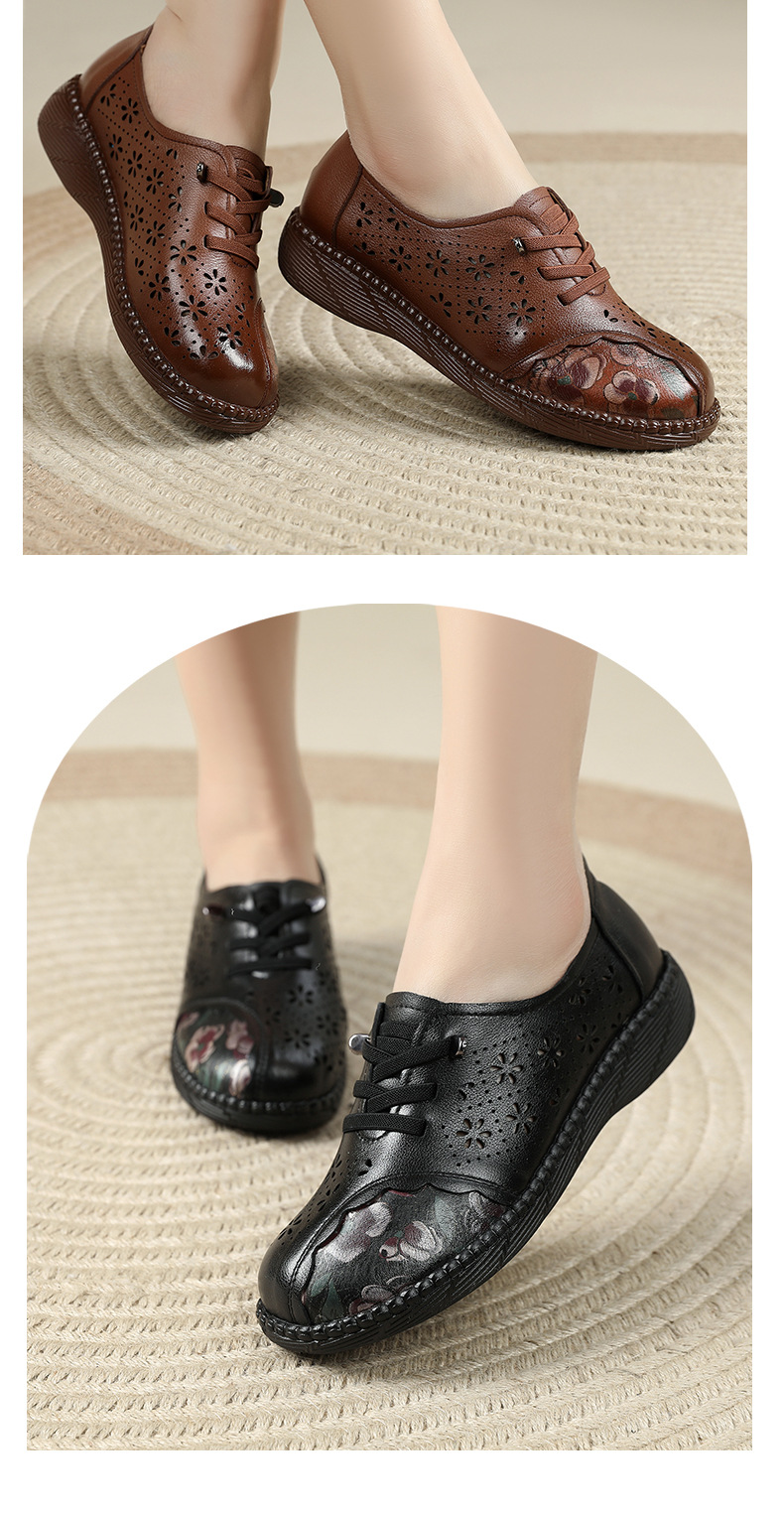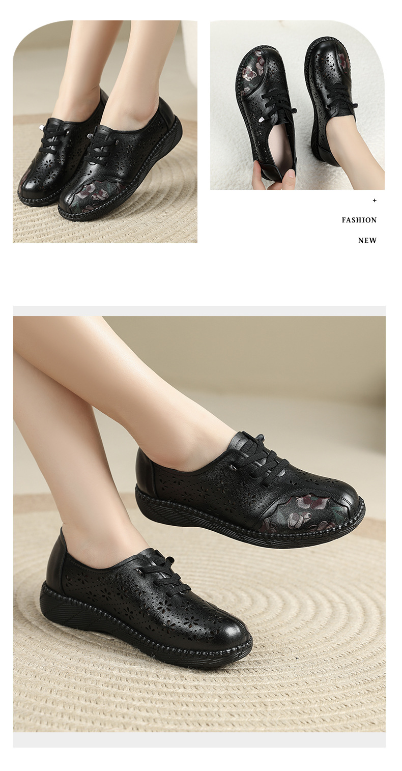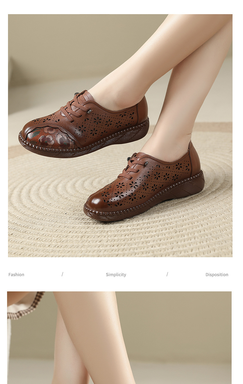 雀说新款女鞋软底不累脚头层牛皮平底百搭镂空厚底洞洞凉鞋AL982