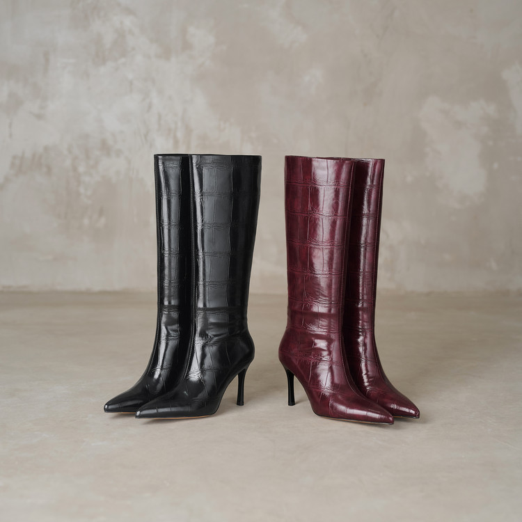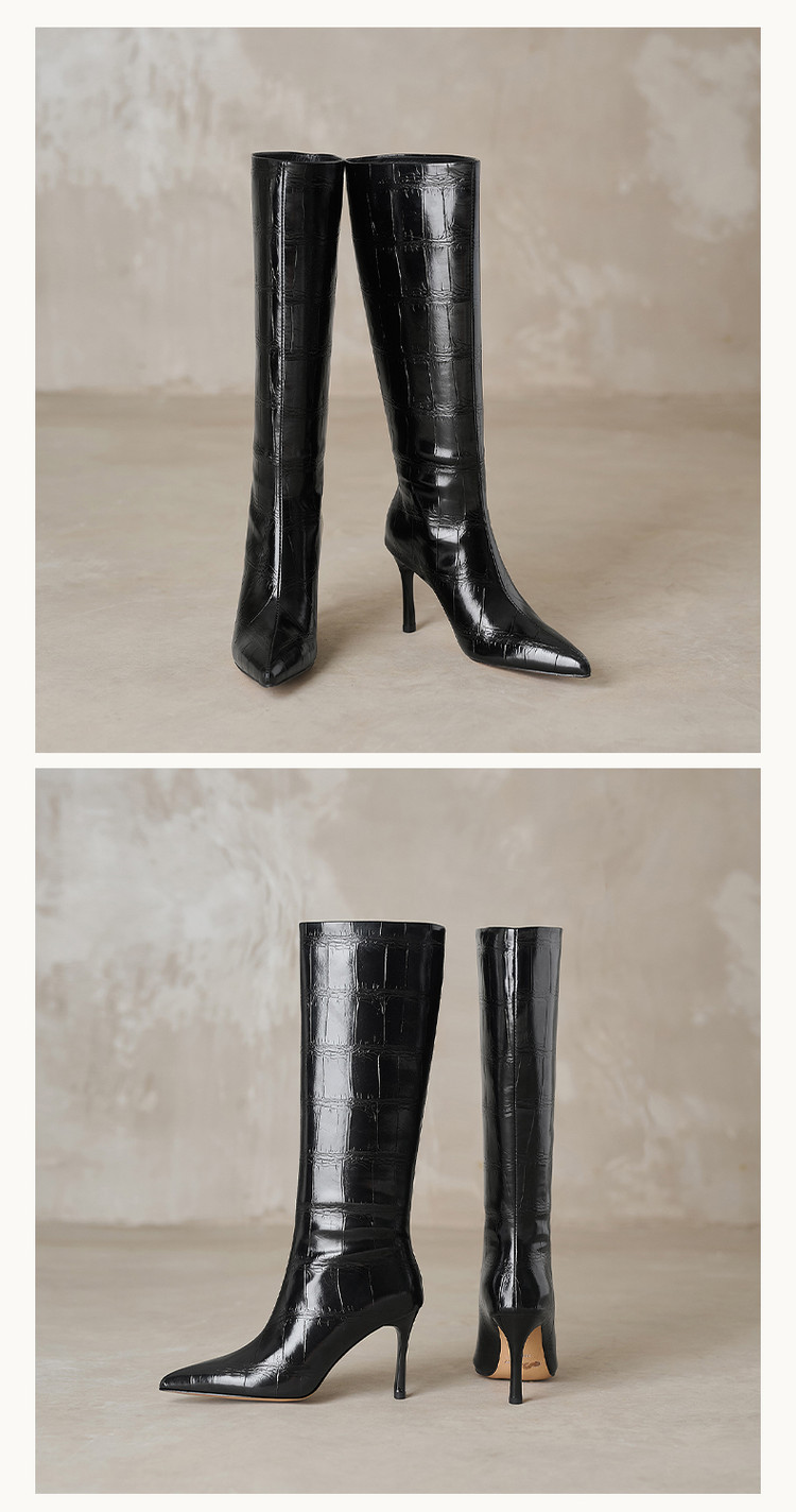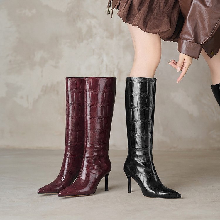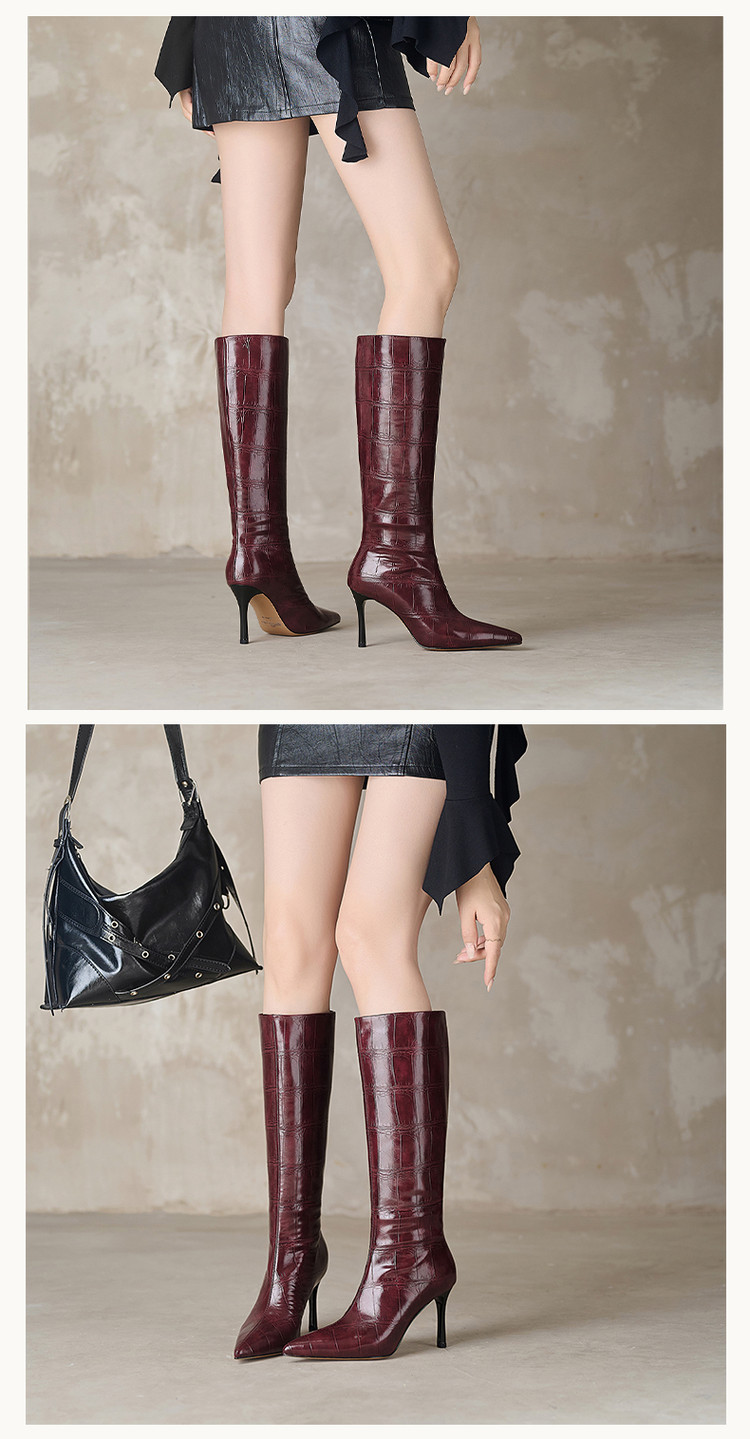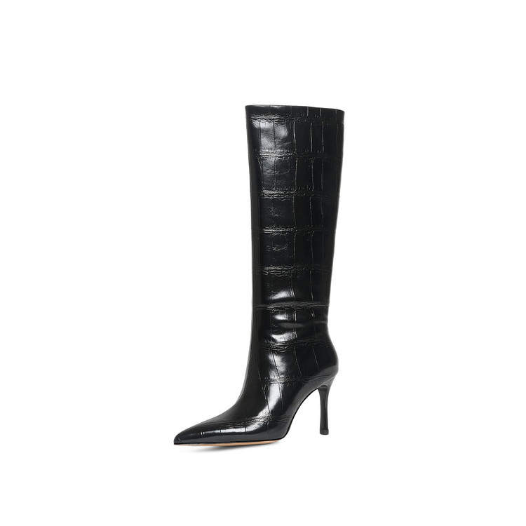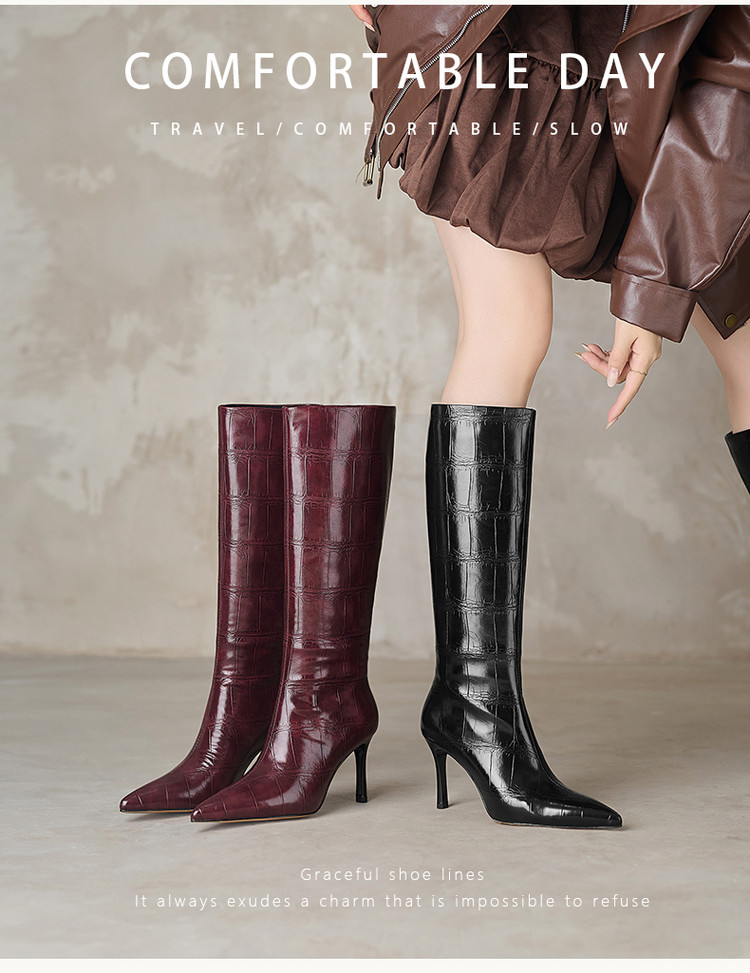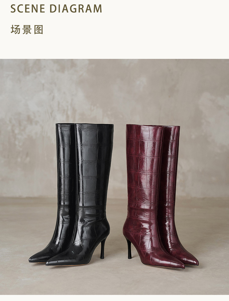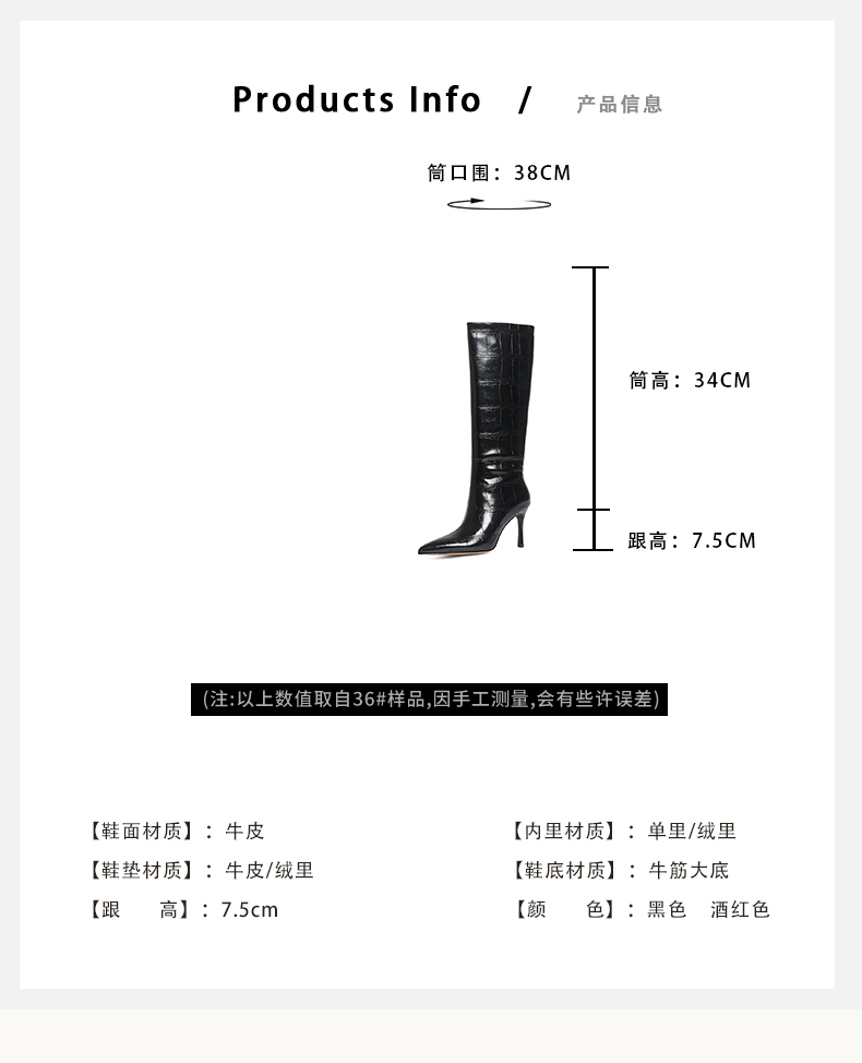 【预售7天】秋冬新款性感真皮尖头细跟长靴女时尚百搭气质时装靴骑士靴FDJ&YC-595
