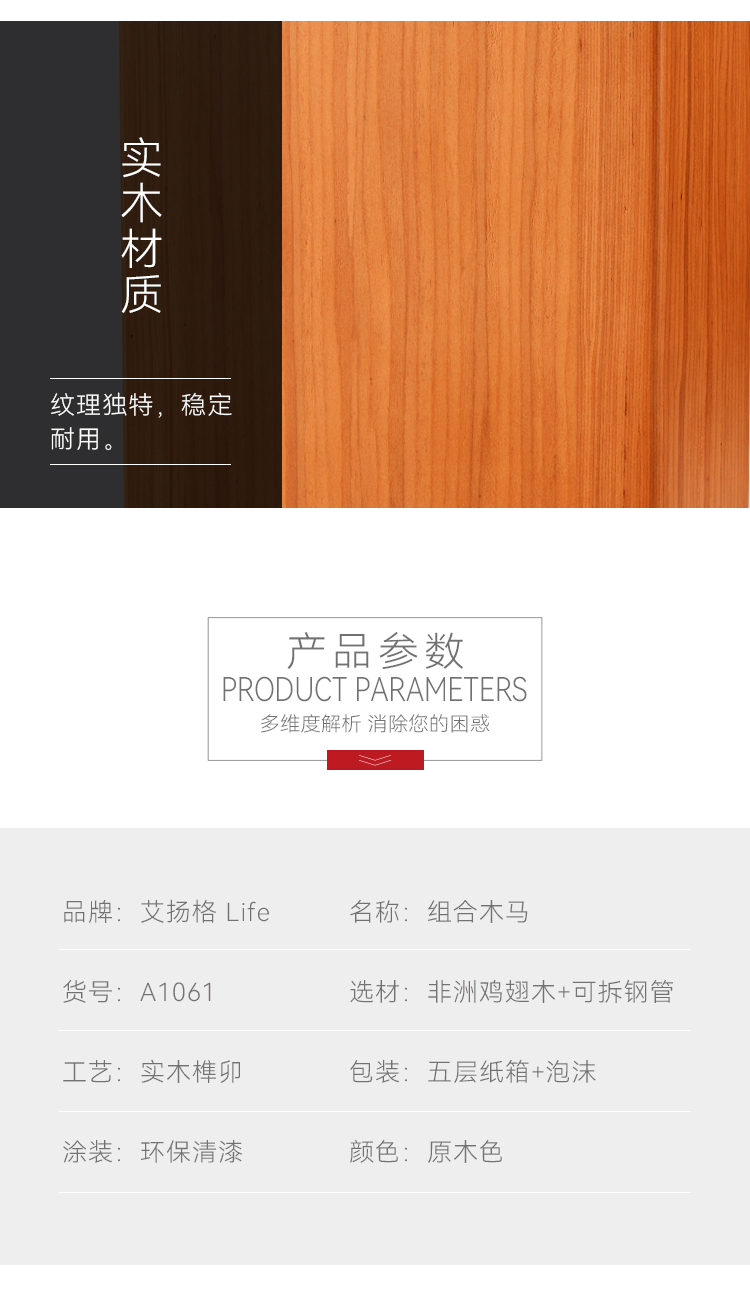 艾扬格 Life A1061瑜伽平衡木马(鸡翅木) 组合木马 可拆卸(物流运费请咨询客服)