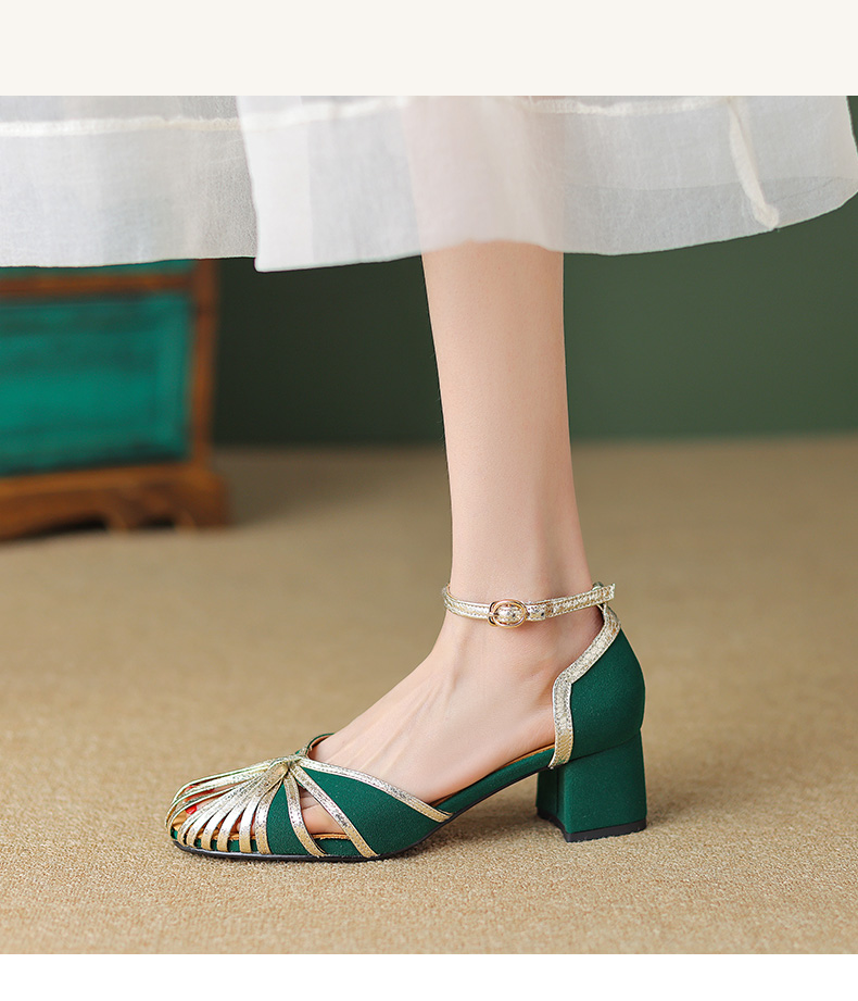 包头时尚复古,高跟罗马鞋猪笼鞋镂空鞋HBP-3531A