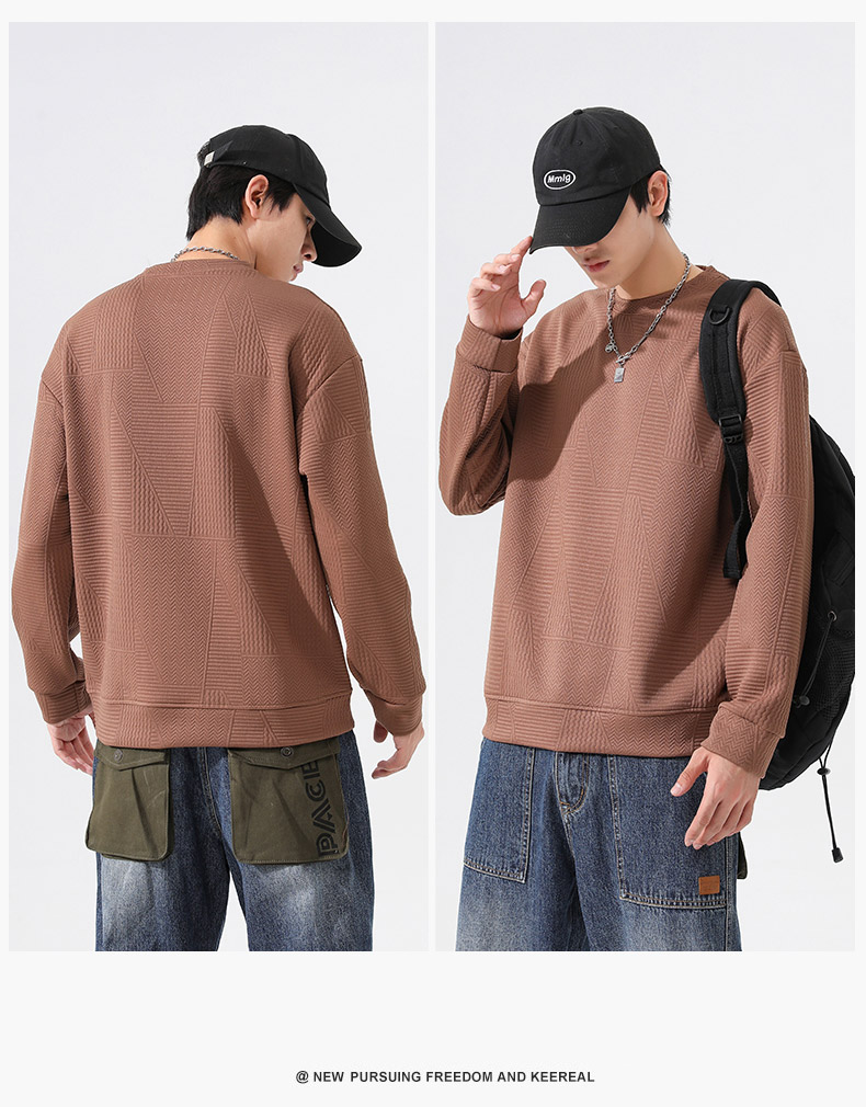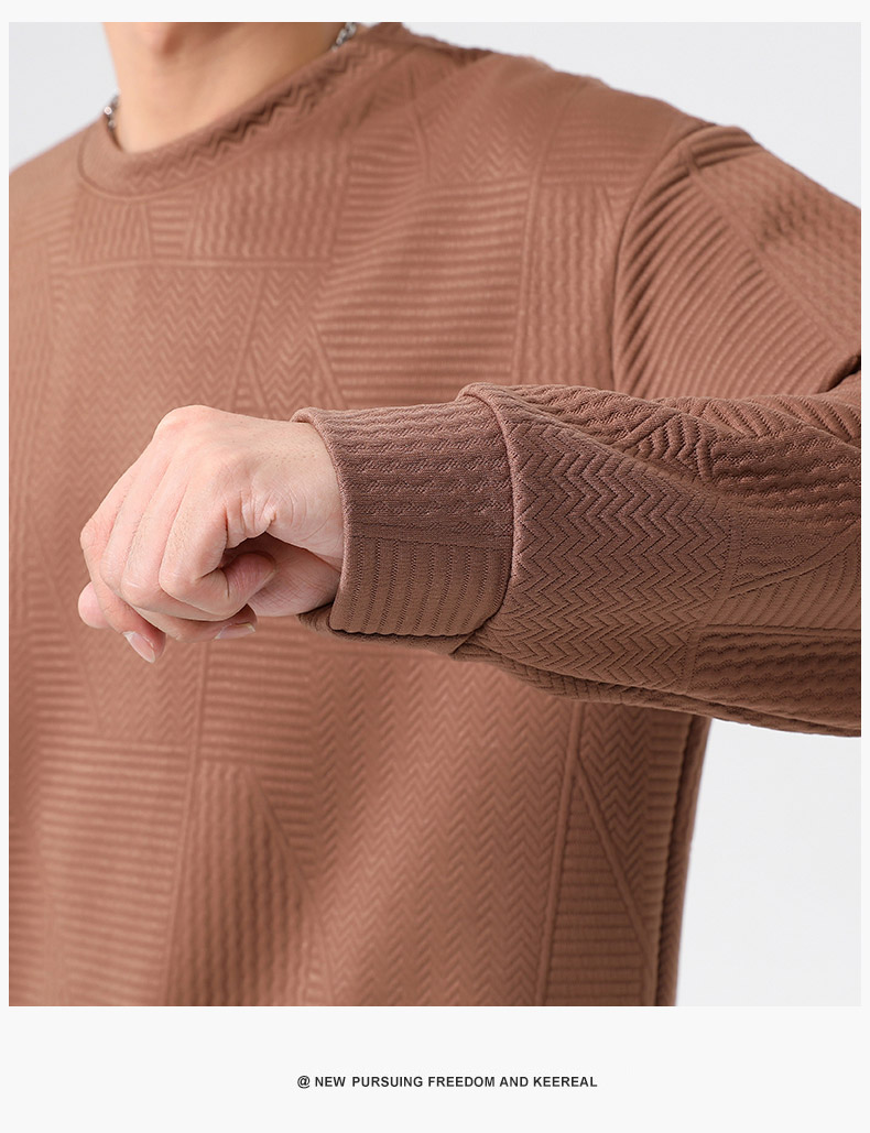 【新款DSL】大依优型大码圆领卫衣肌理感长袖加肥加大胖子上衣男士T恤肥佬打底男装