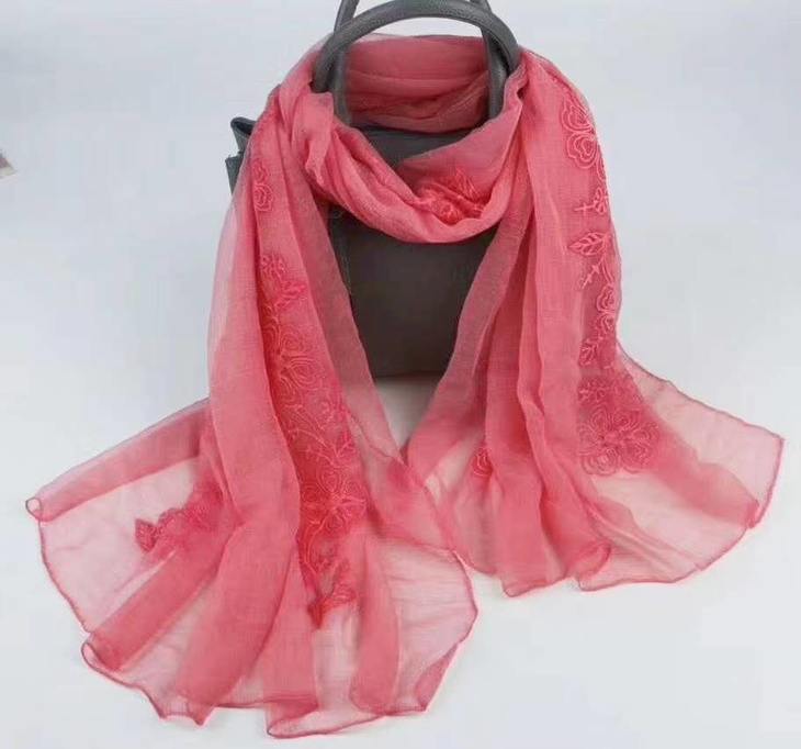 新款鳄鱼皱绣花脏染丝巾 100*200cm 11色可选 商品图1