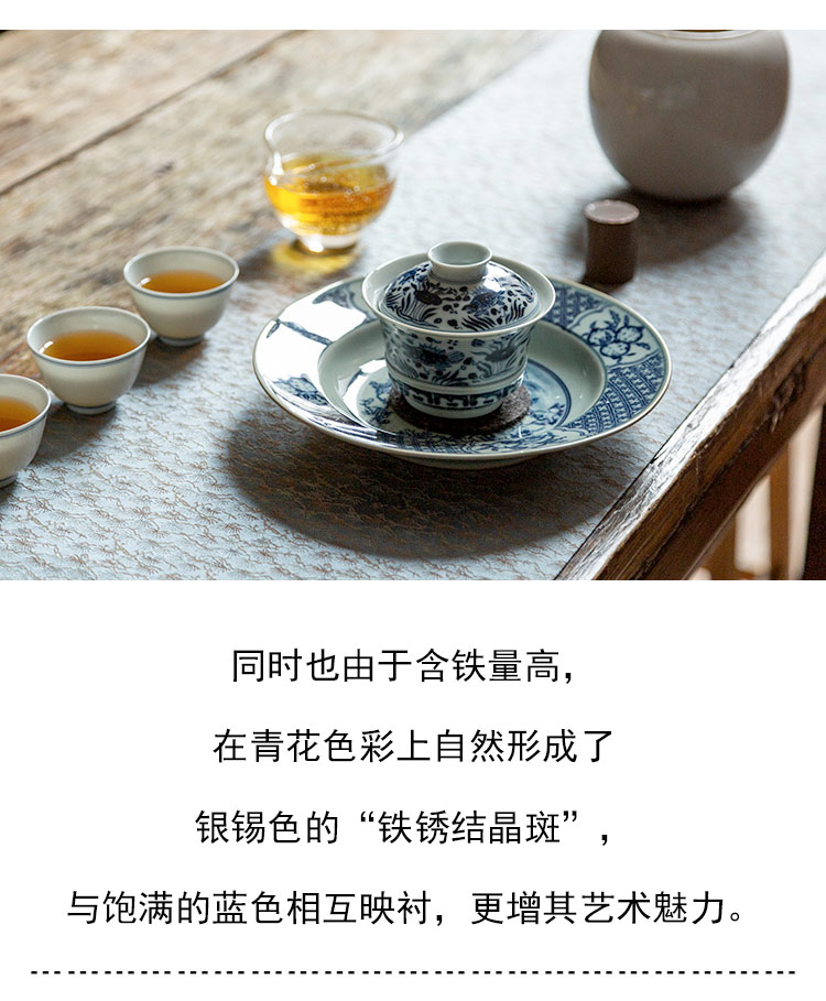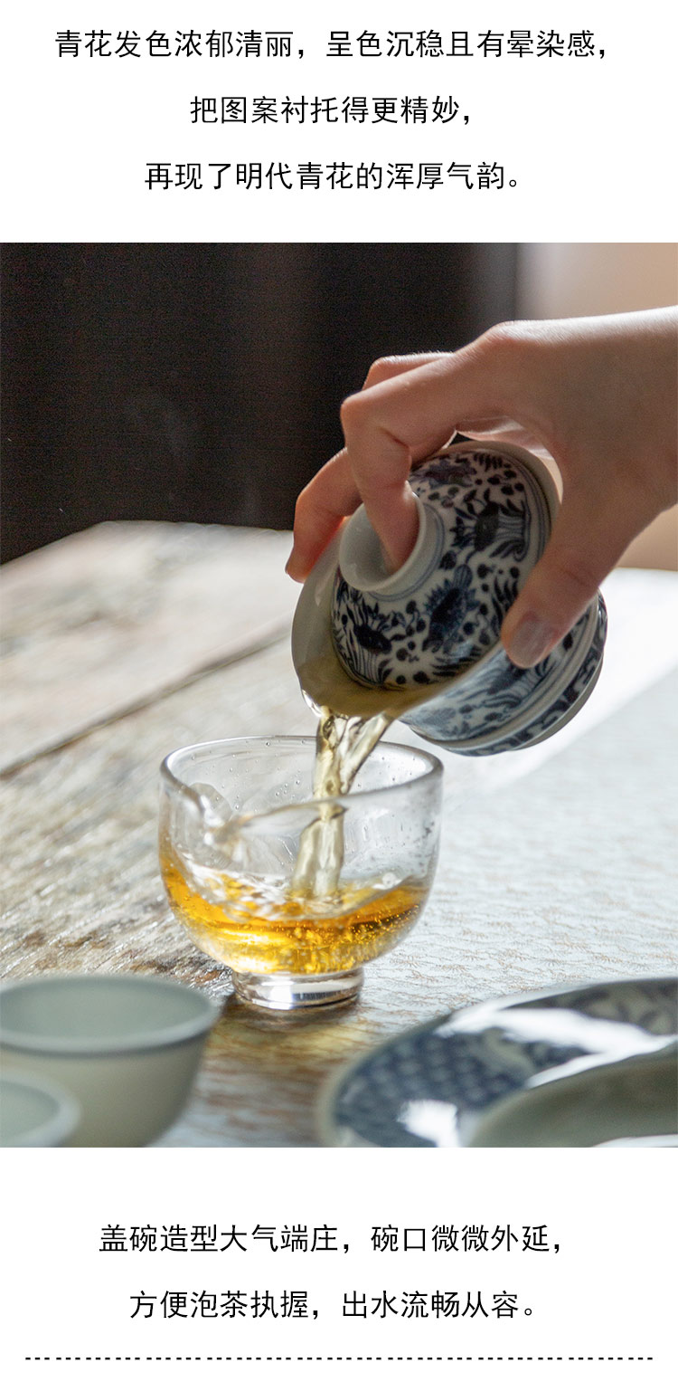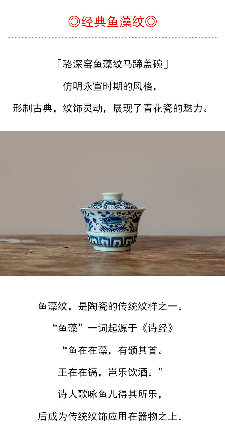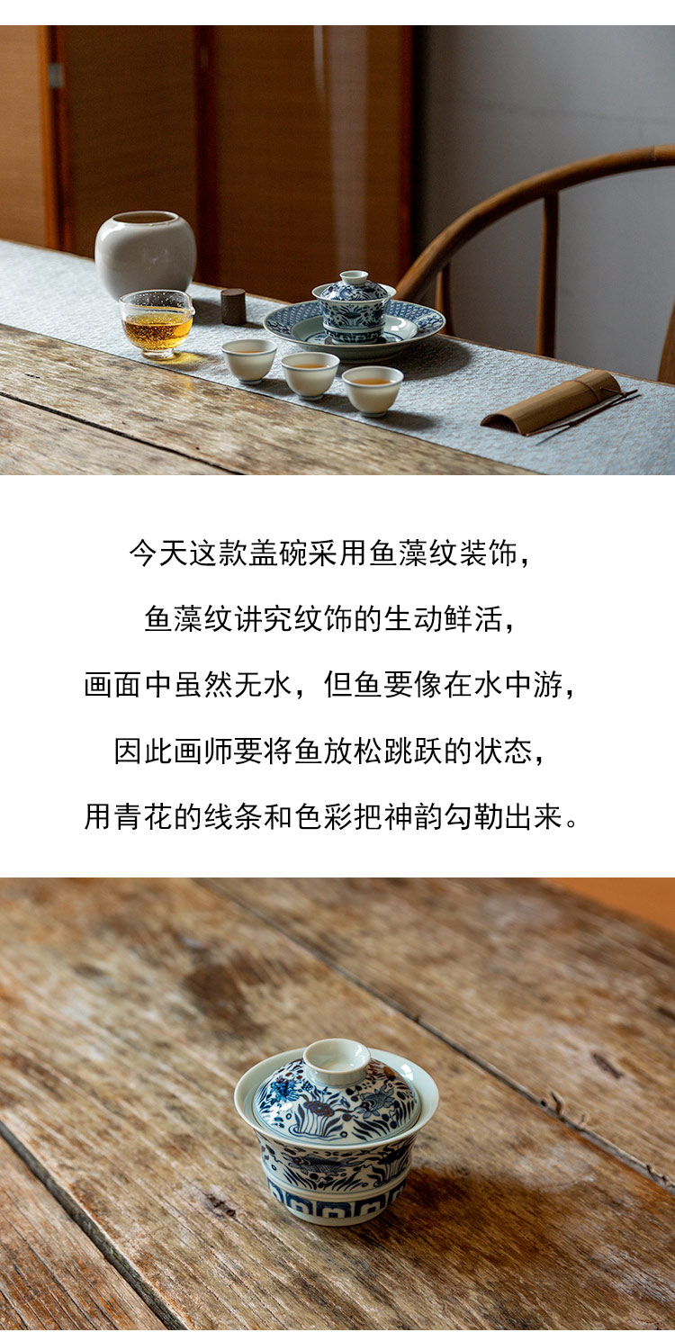 茶香记 仿明青花 鱼藻纹马蹄盖碗 经典鱼藻纹 大气端庄 好用