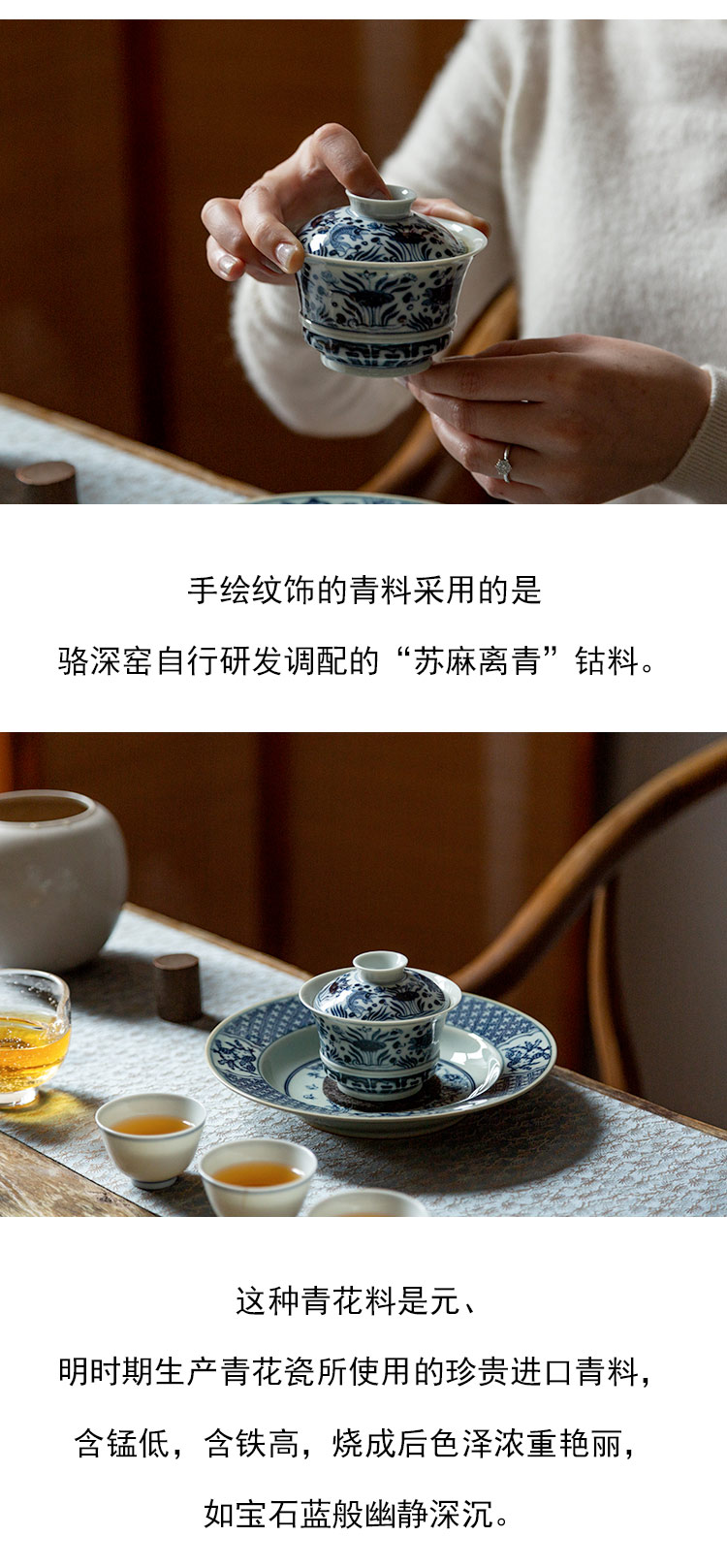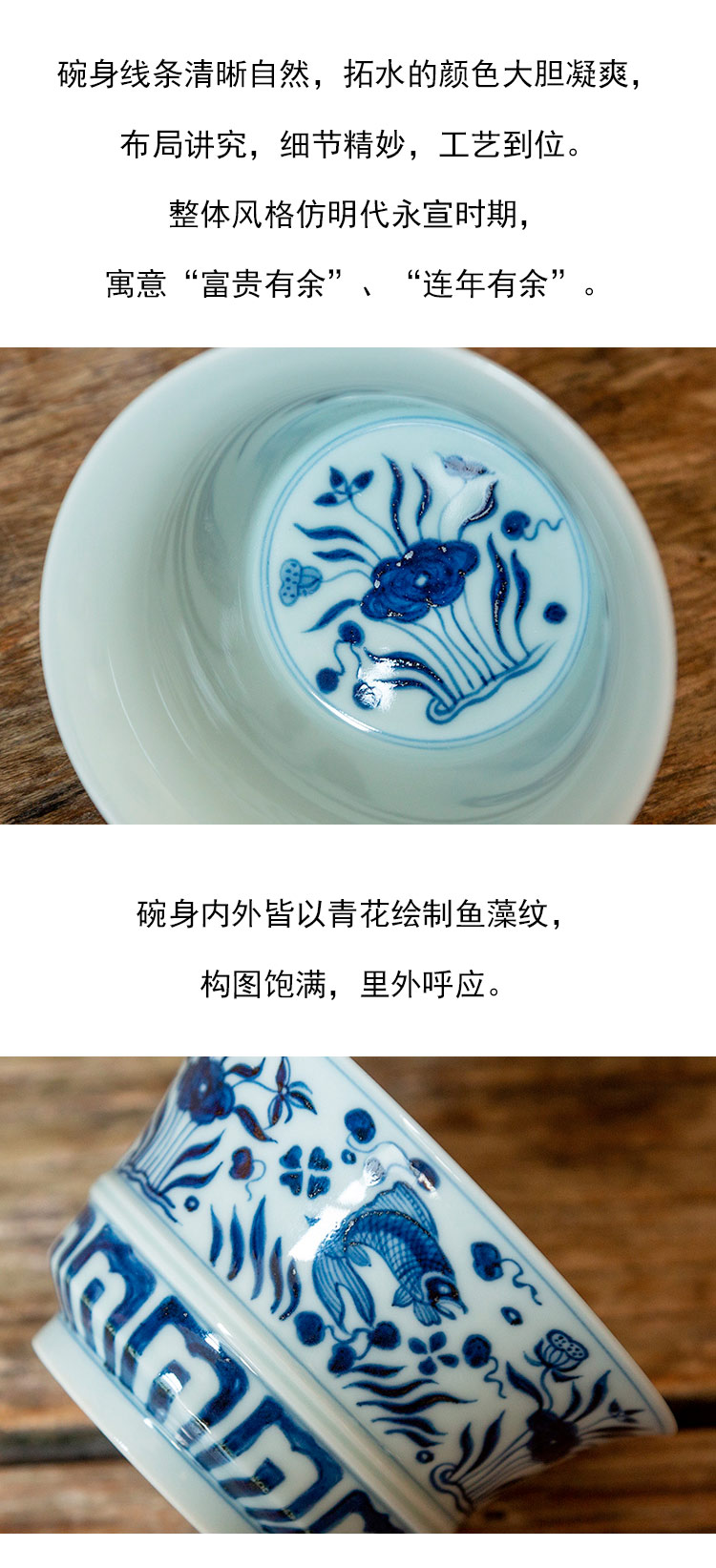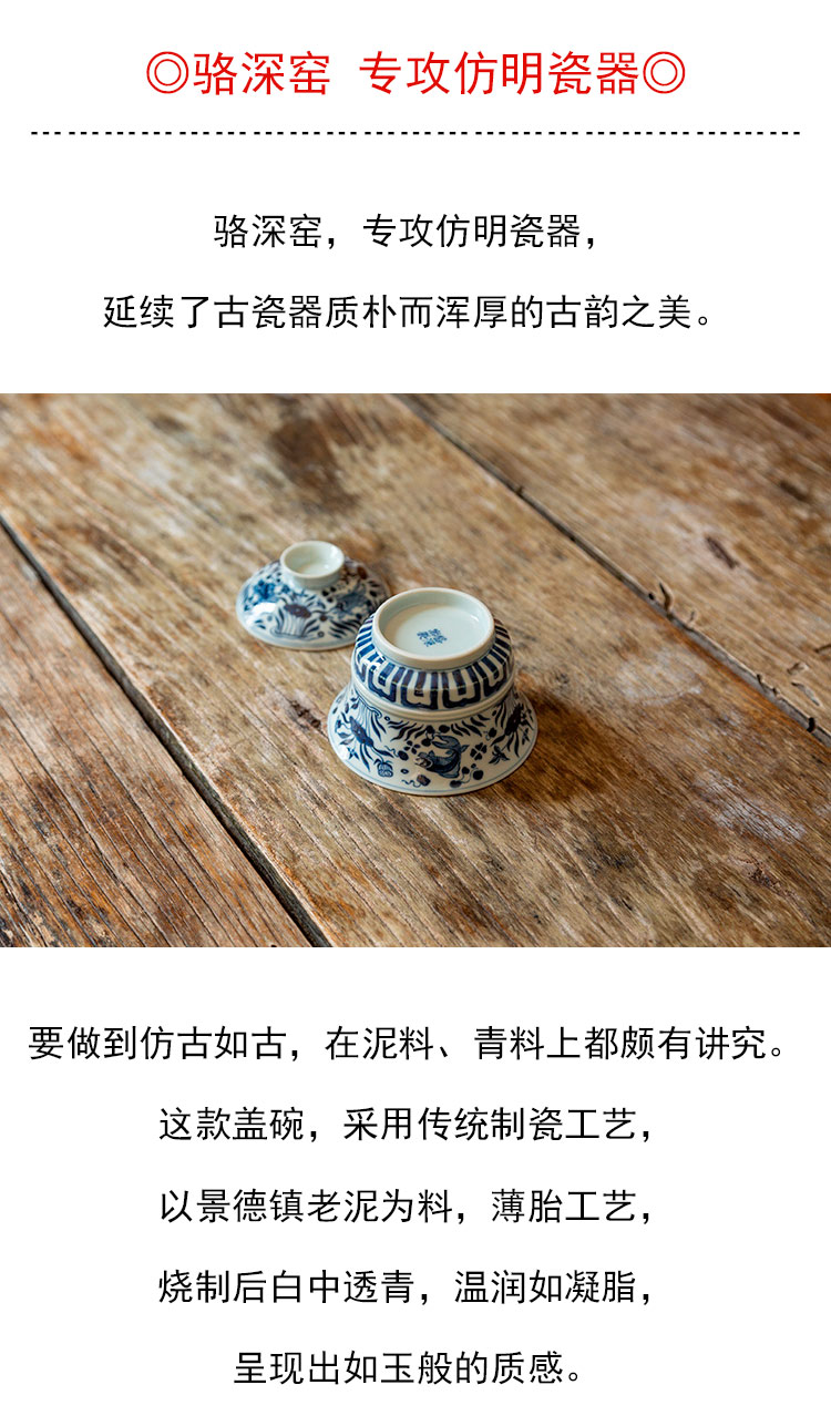 茶香记 仿明青花 鱼藻纹马蹄盖碗 经典鱼藻纹 大气端庄 好用